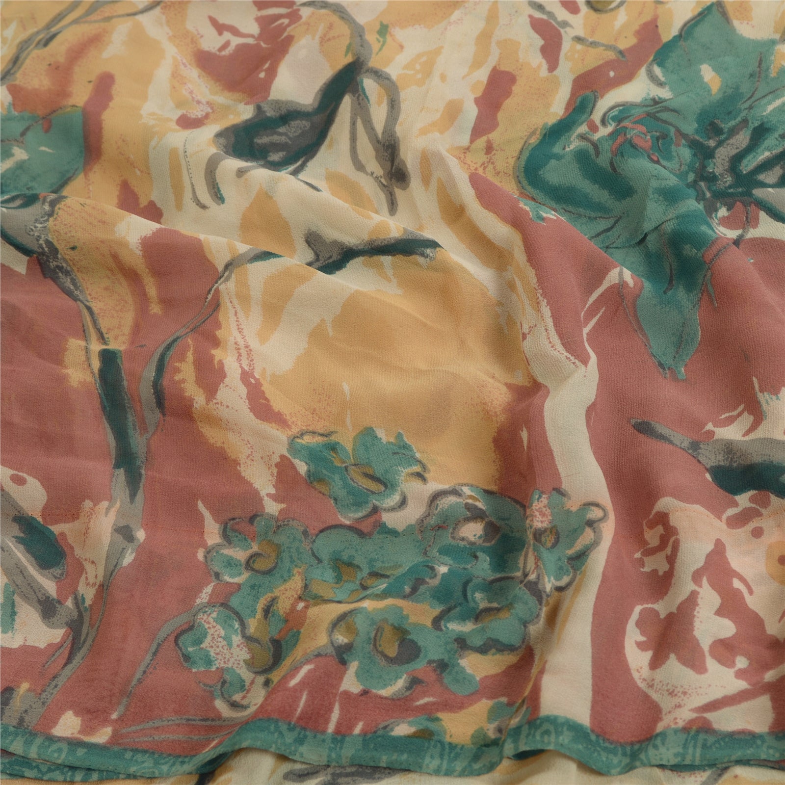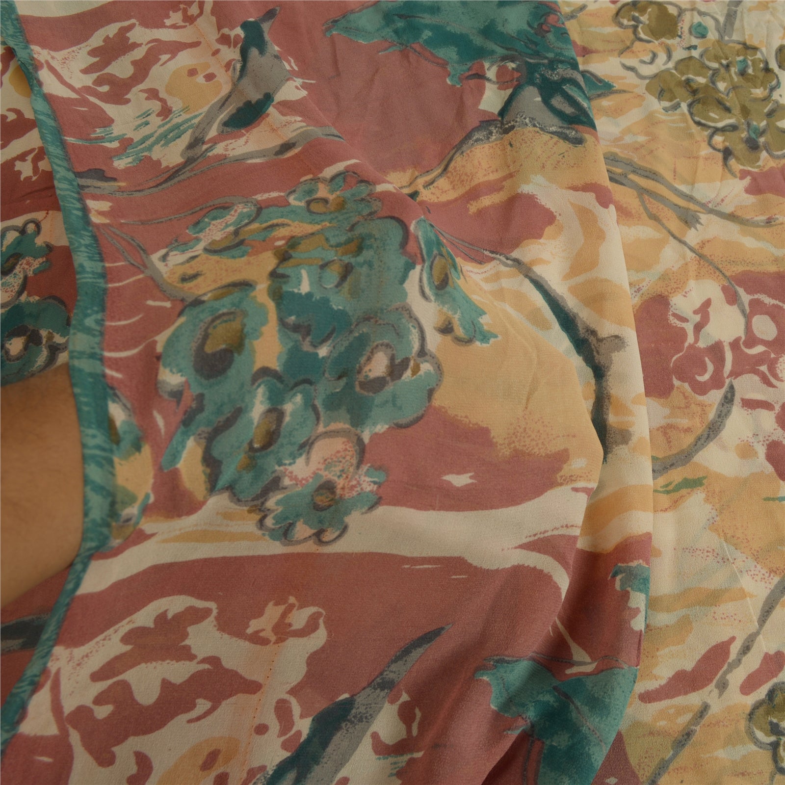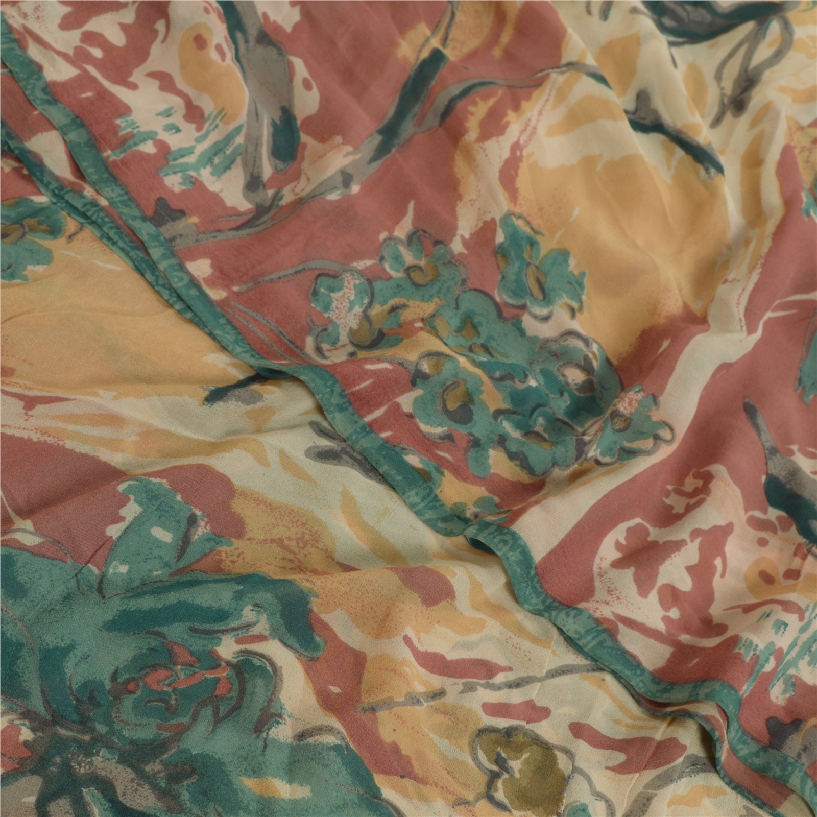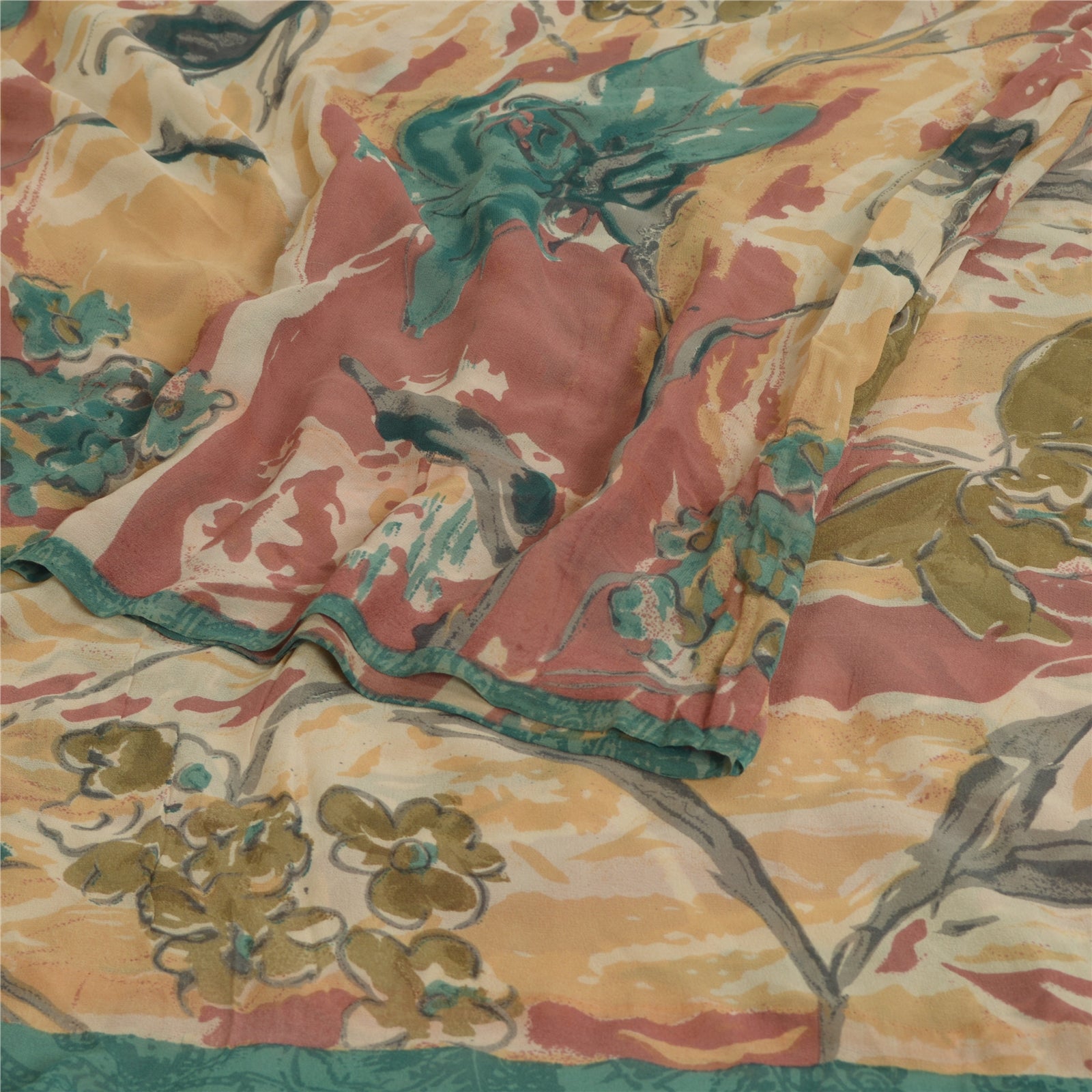 Sanskriti Vintage Sarees Multi Pure Georgette Silk Printed Sari Craft Sustainable Fabric