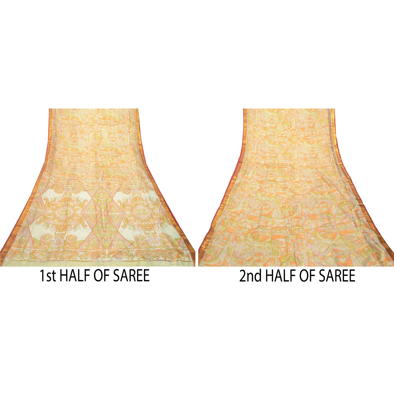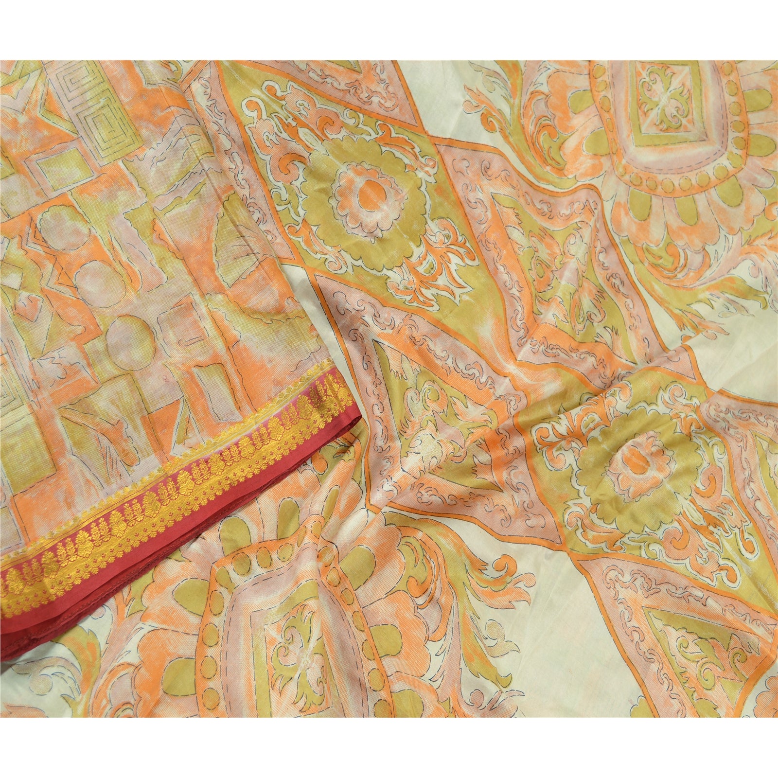 Sanskriti Vintage Sarees Multi Pure Silk Printed Zari Border Sari Craft Sustainable Fabric