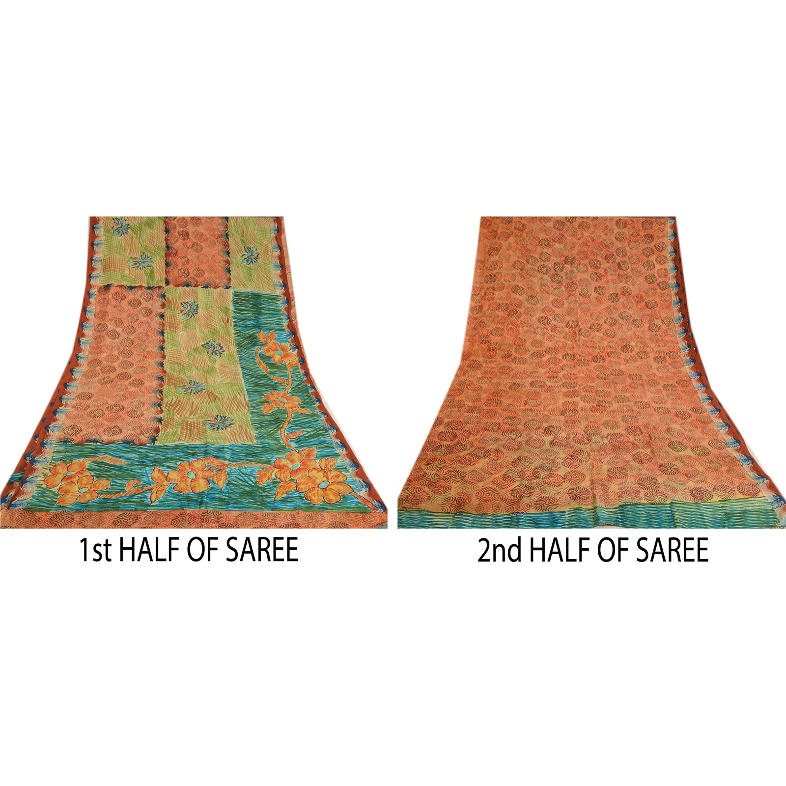 THE ITEM COLOR OR SHADE MAY BE DARKER OR LIGHTER THAN THE PICTURE.' Beautiful orange colored pure crepe silk printed saree. Pallu & Border has printed floral design. Similar design in center part of saree. What is special about this saree? Fabulous design is really enhancing the beauty of the saree. This unique vintage saree can be used for various crafting ideas even if you don't want to use it as a sari. Design a dress, use it as window,dressing, upholstery, sarongs, throw, dress making and table linen much more. Let your creative juices flow and use this decorated Sustainable Fabric in multiple fashion. International buyers please note: Import duties, taxes, and charges are not included in the item price or postage cost. These charges are the buyer's responsibility. Please check with your country's customs office to determine what these additional costs will be prior to bidding or buying.Buyer will pay custom duty/tax. It is calculated and charged differently by every country. As a seller I do not have any control over it.VAT or sales tax is calculated by the platform at the time of checkout. Customs charge is payable at the time of delivery.