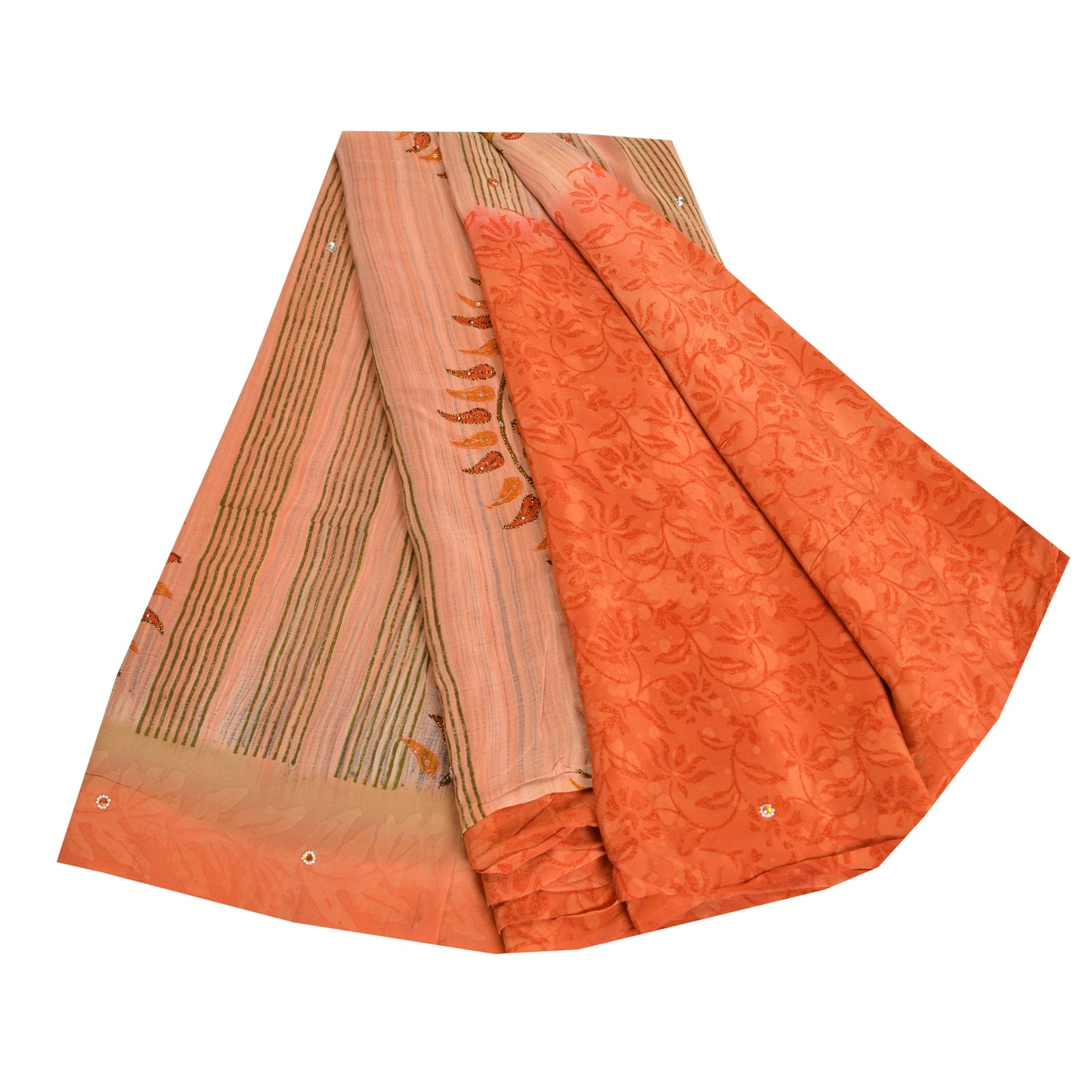 Sanskriti Vintage Sarees Peach Hand Beaded Pure Crepe Silk Printed Sari Sustainable Fabric