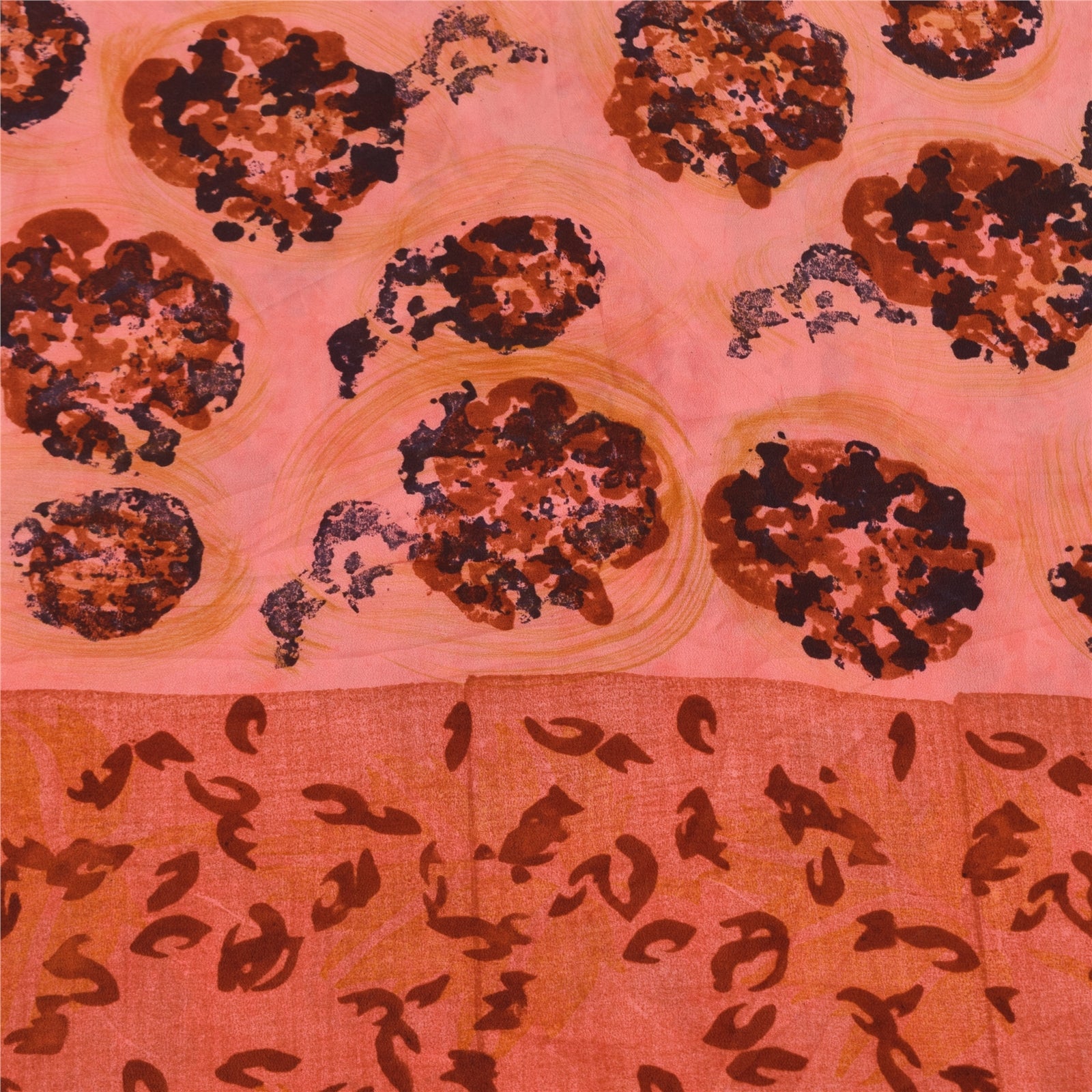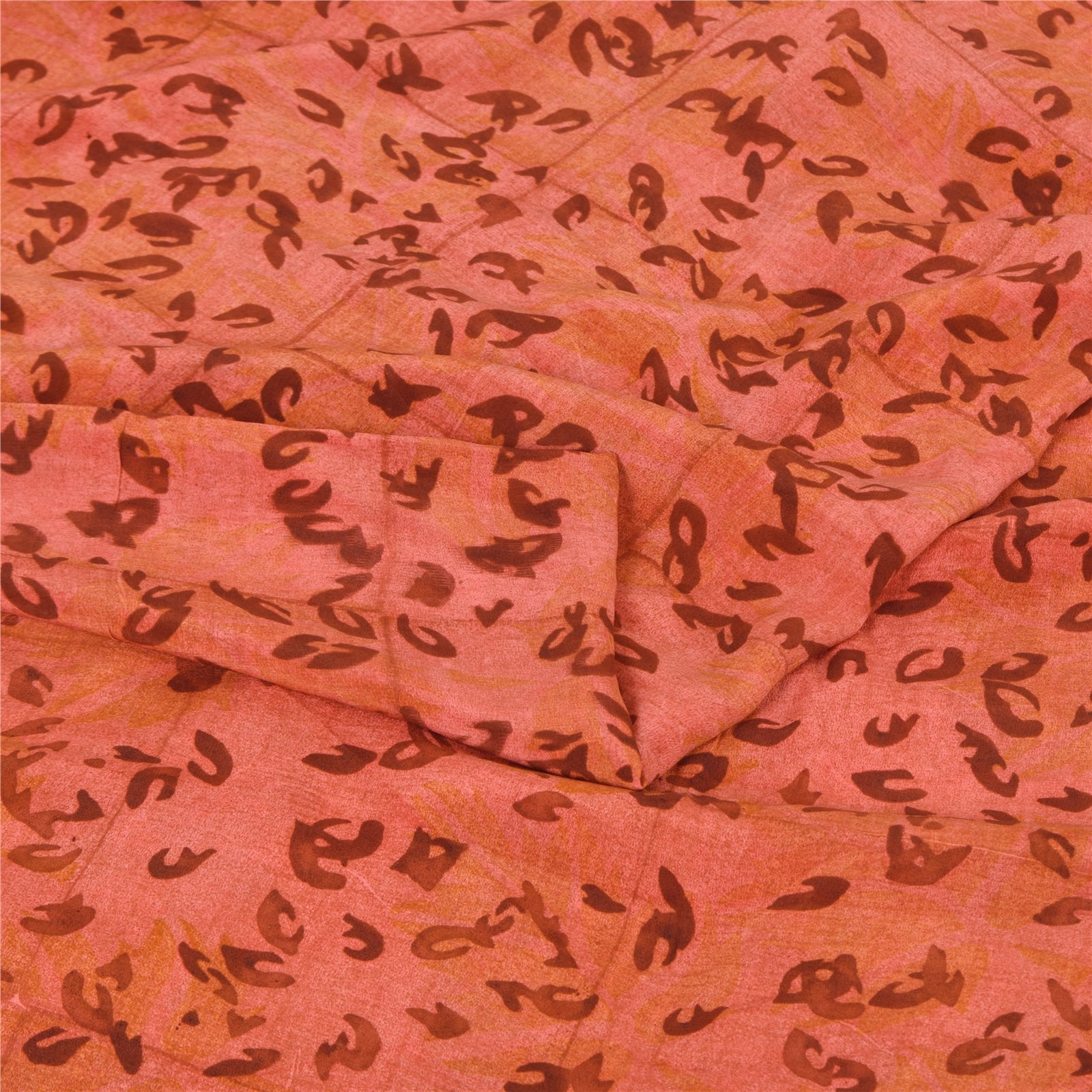 Sanskriti Vintage Sarees Peach Pure Crepe Silk Printed Sari 5+yd Craft Sustainable Fabric