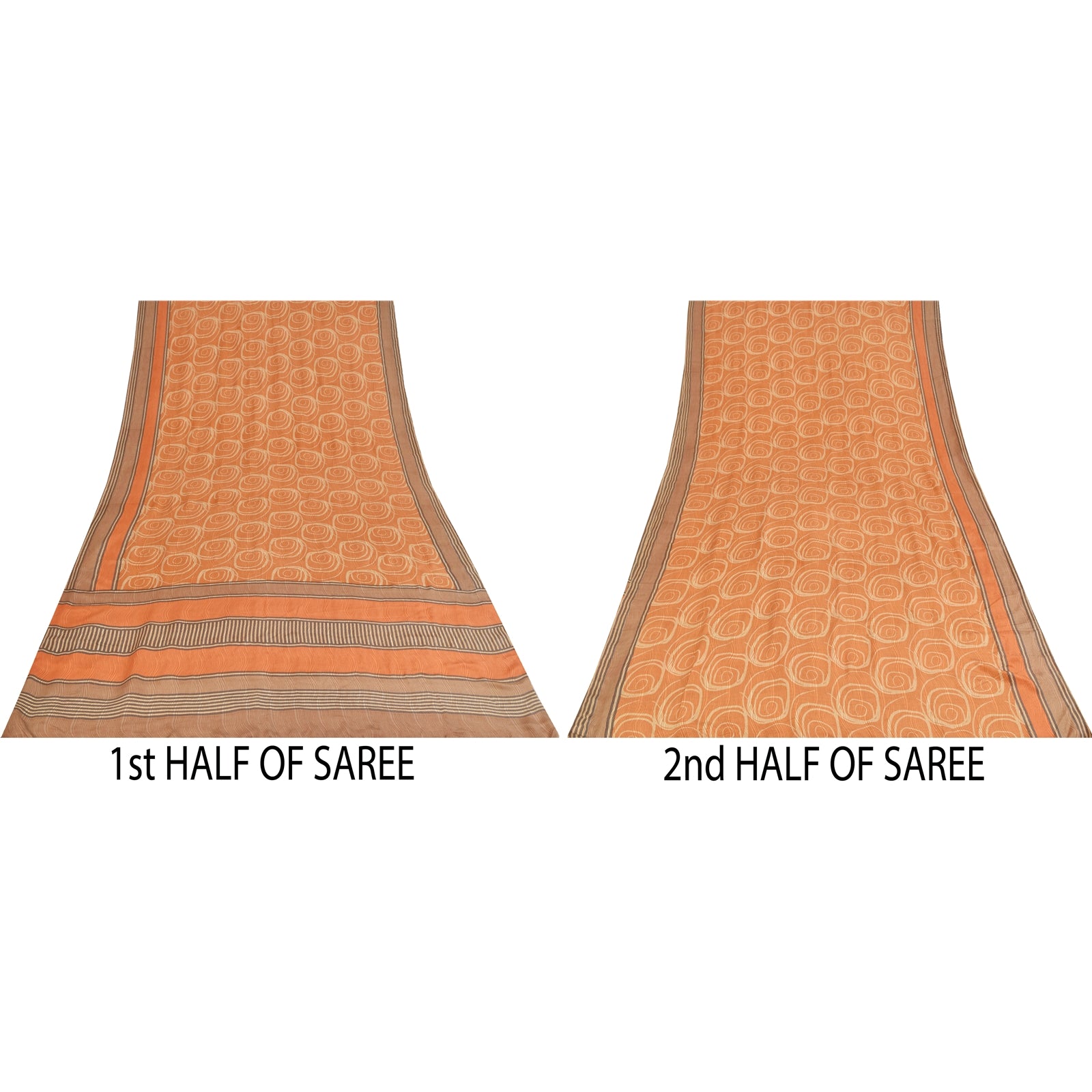 Sanskriti Vintage Sarees Peach Pure Crepe Silk Printed Sari 5+yd Craft Fabric