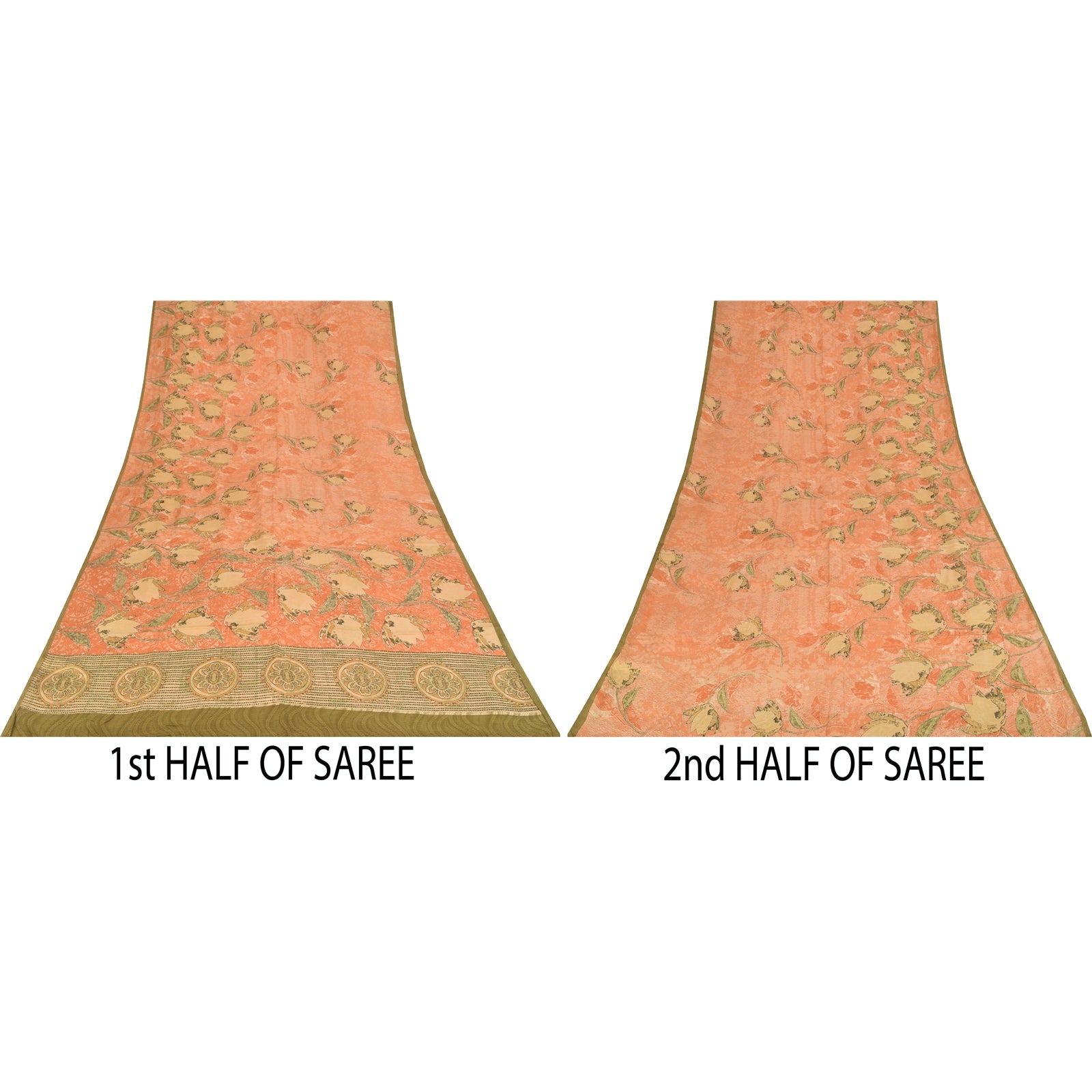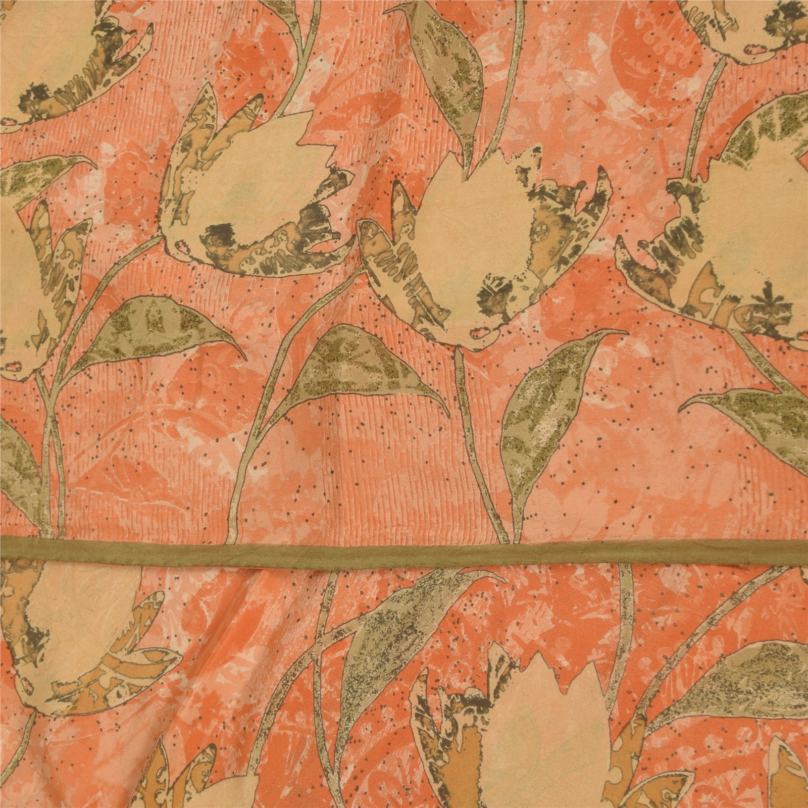 Sanskriti Vintage Sarees Peach Pure Crepe Silk Printed Sari 5+yd Craft Fabric