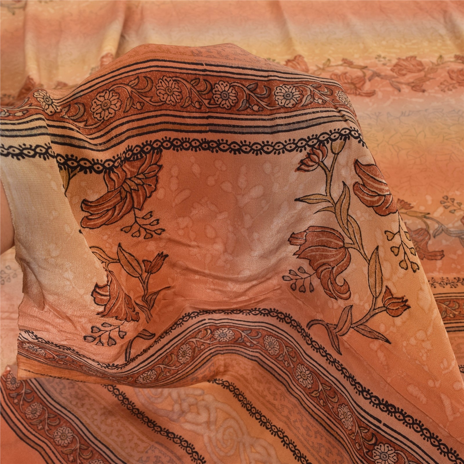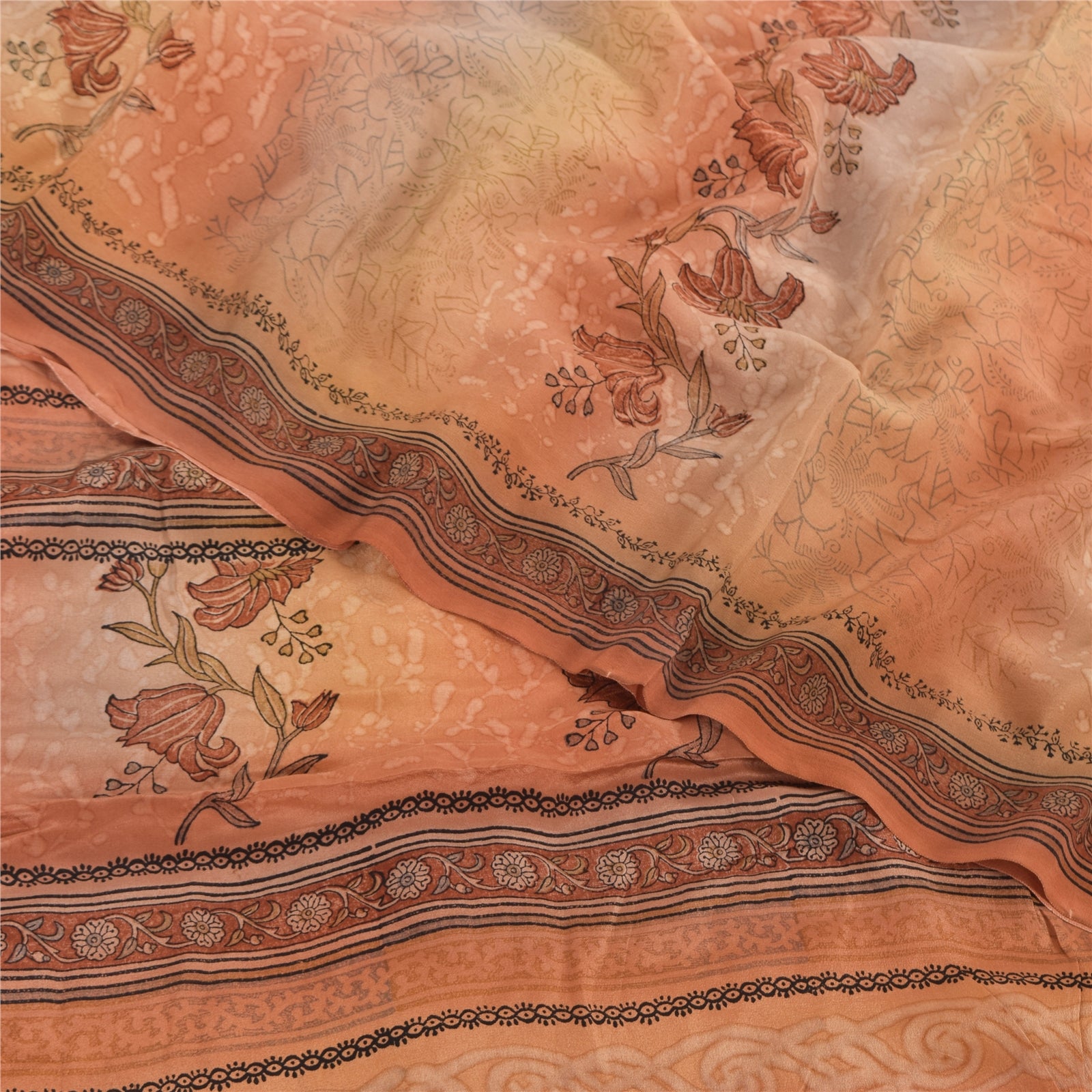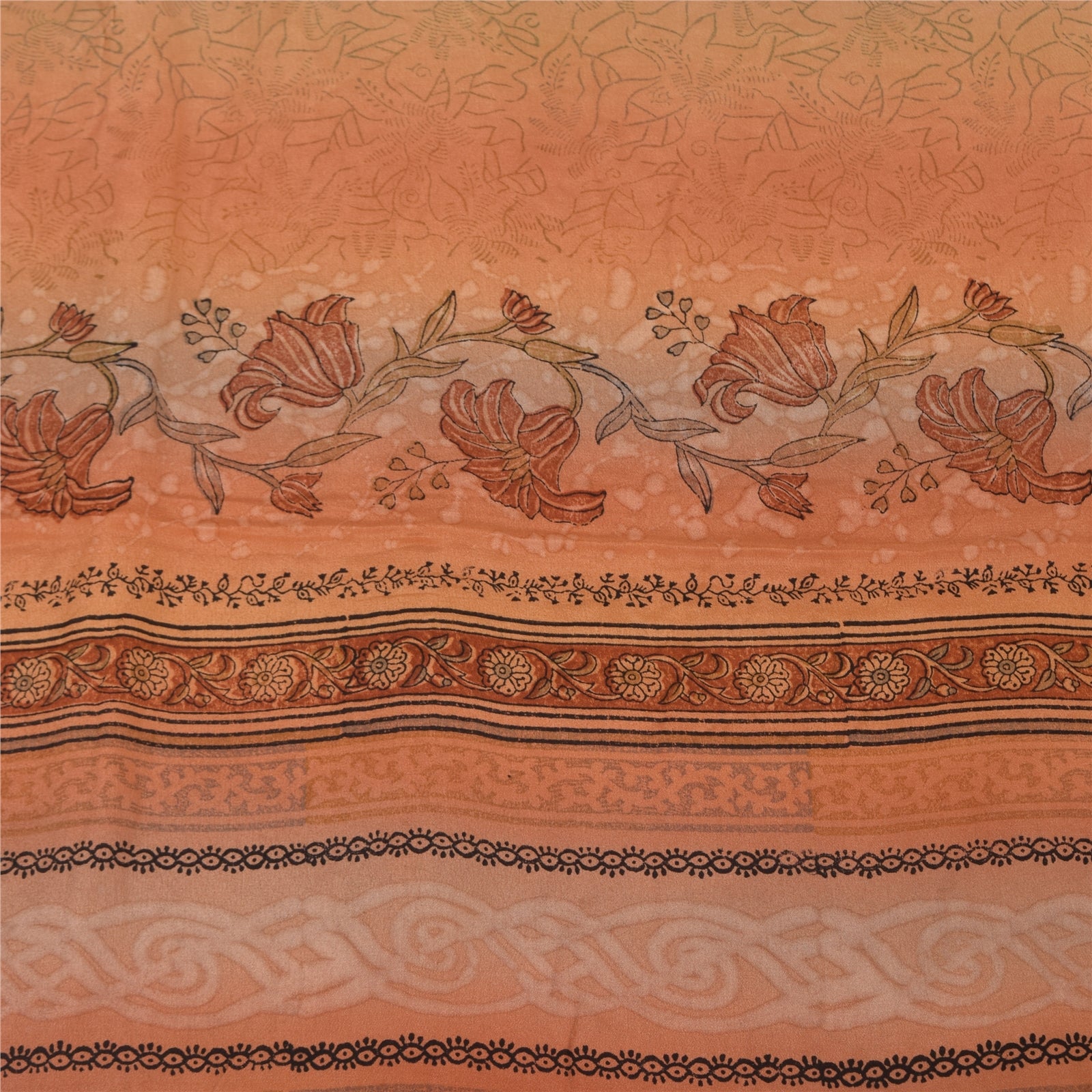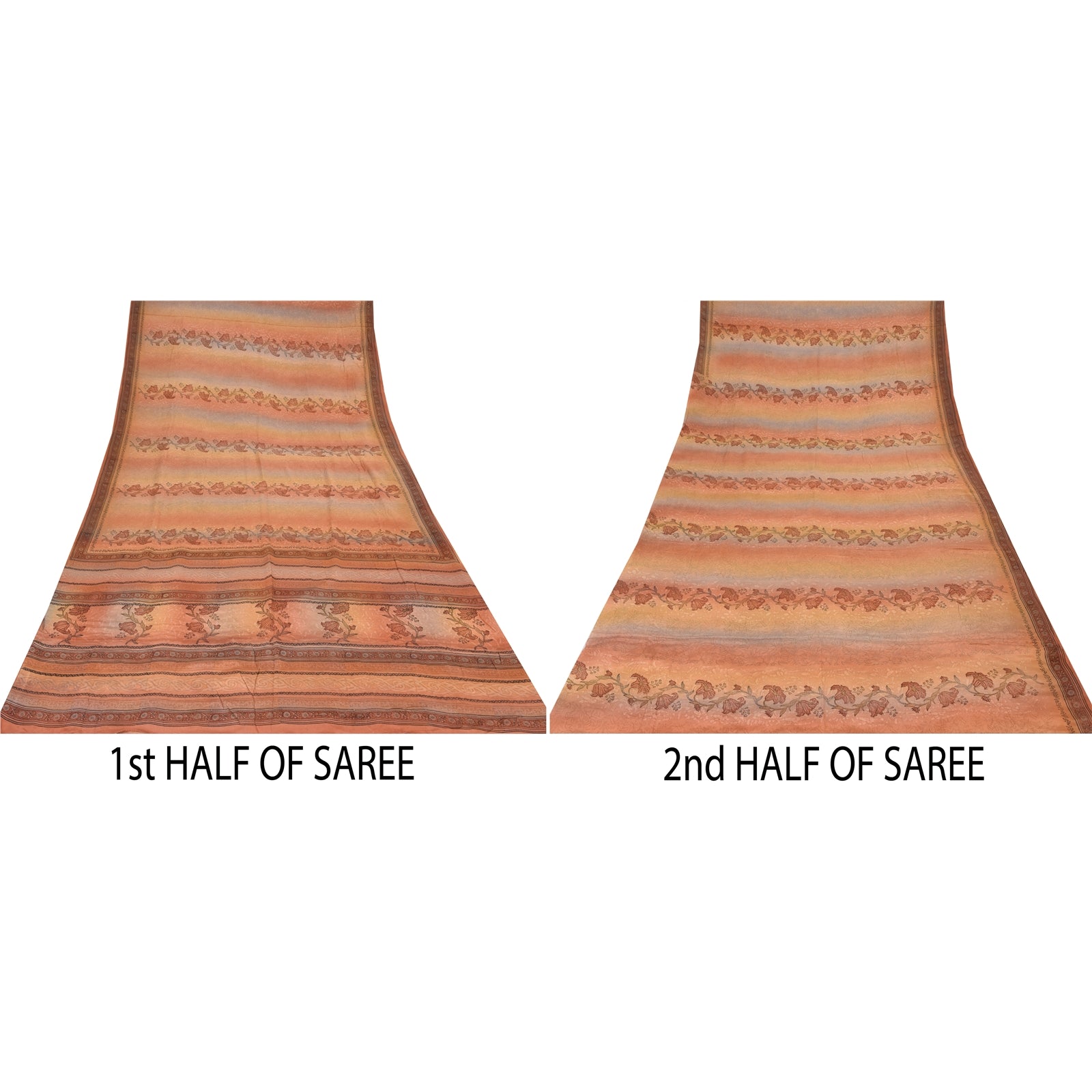 Sanskriti Vintage Sarees Peach Pure Crepe Silk Printed Sari Floral Craft Sustainable Fabric