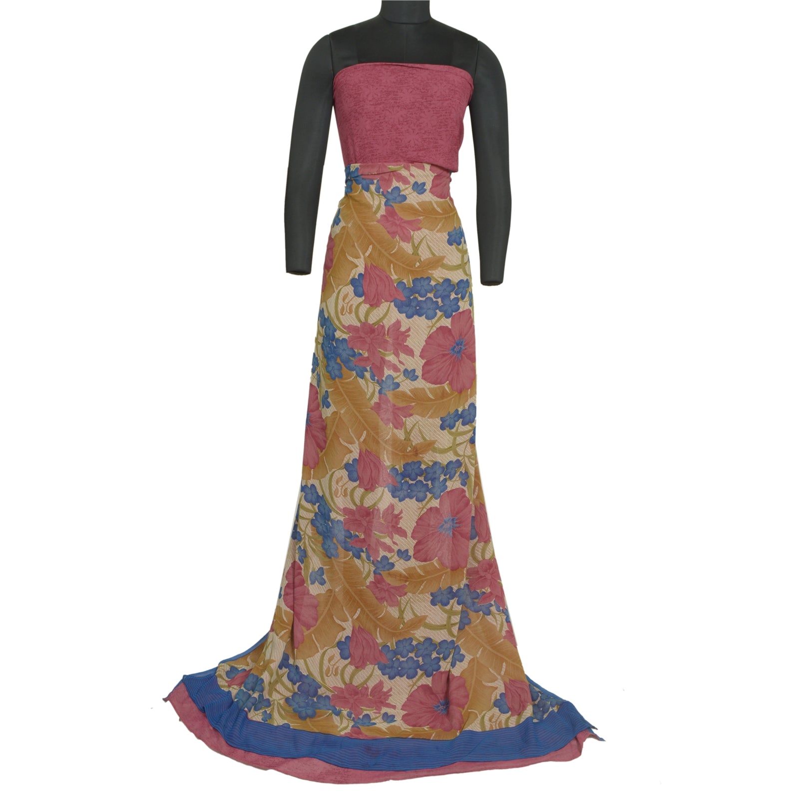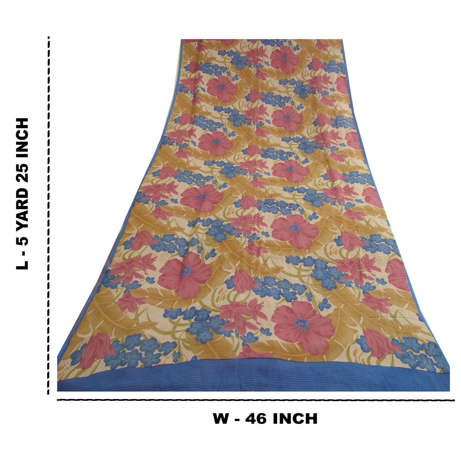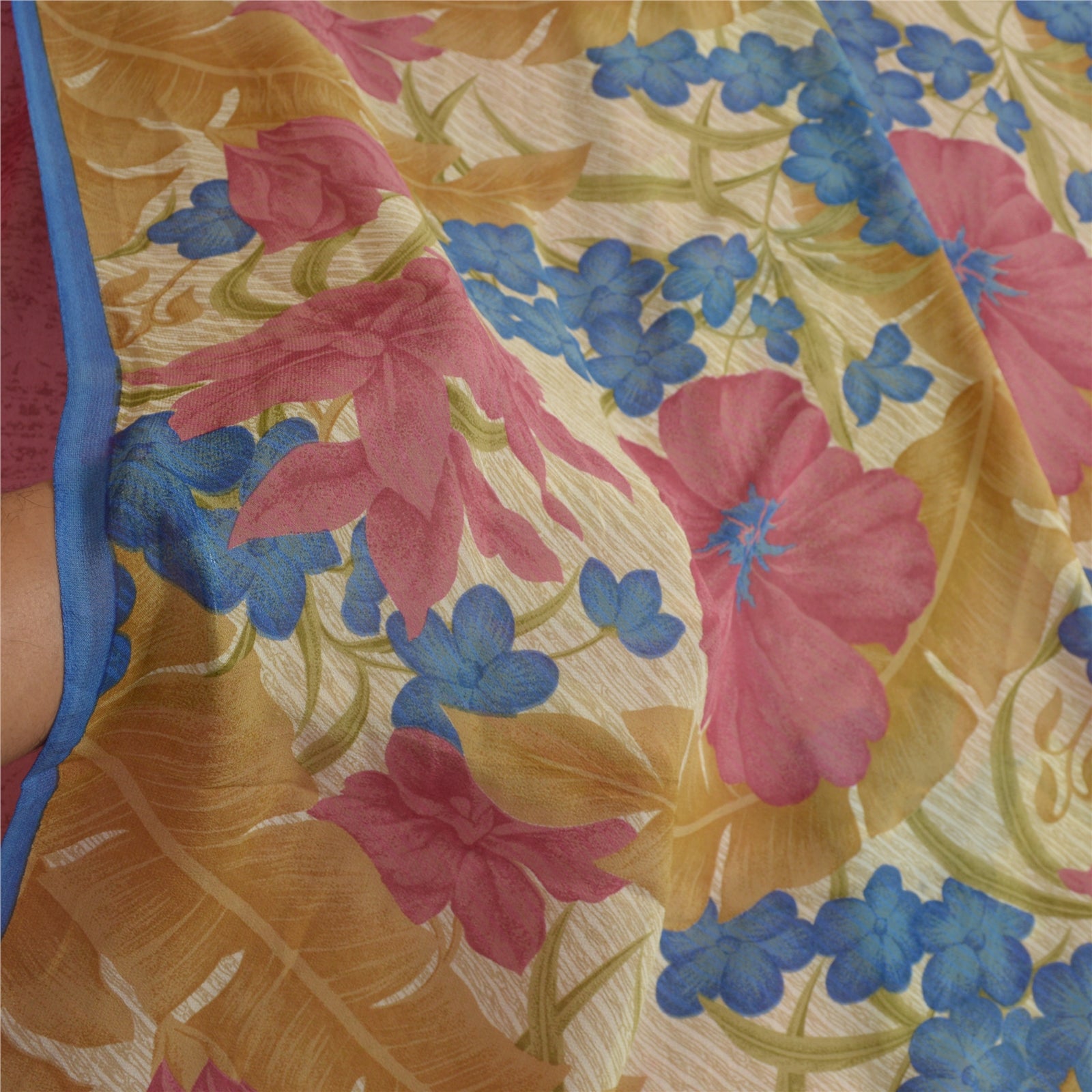 Sanskriti Vintage Sarees Pink/Cream Pure Georgette Silk Print Sari Craft Sustainable Fabric