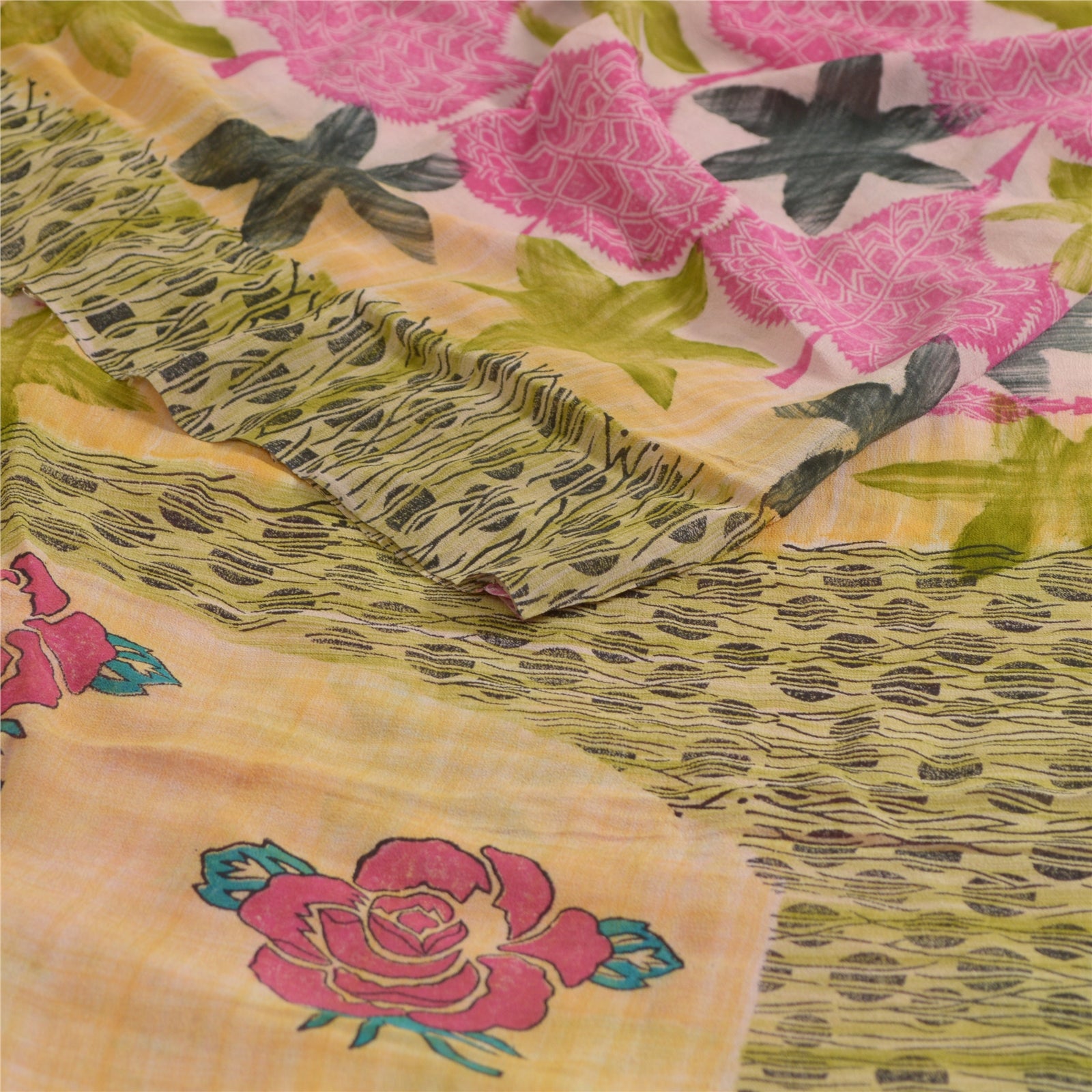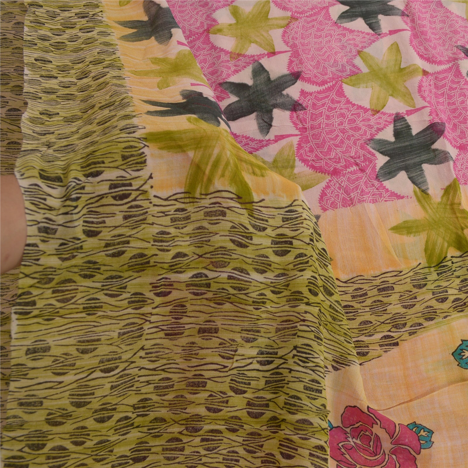 Sanskriti Vintage Sarees Pink/Green Printed Pure Georgette Silk Sari 5yd Sustainable Fabric