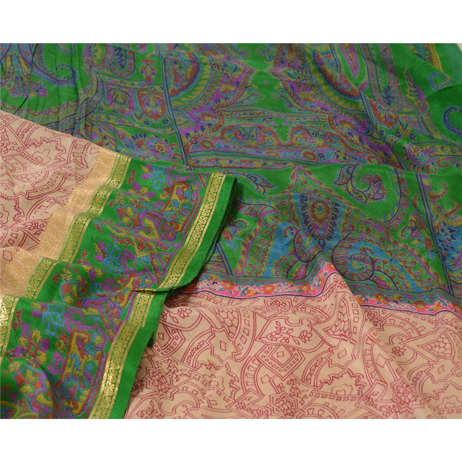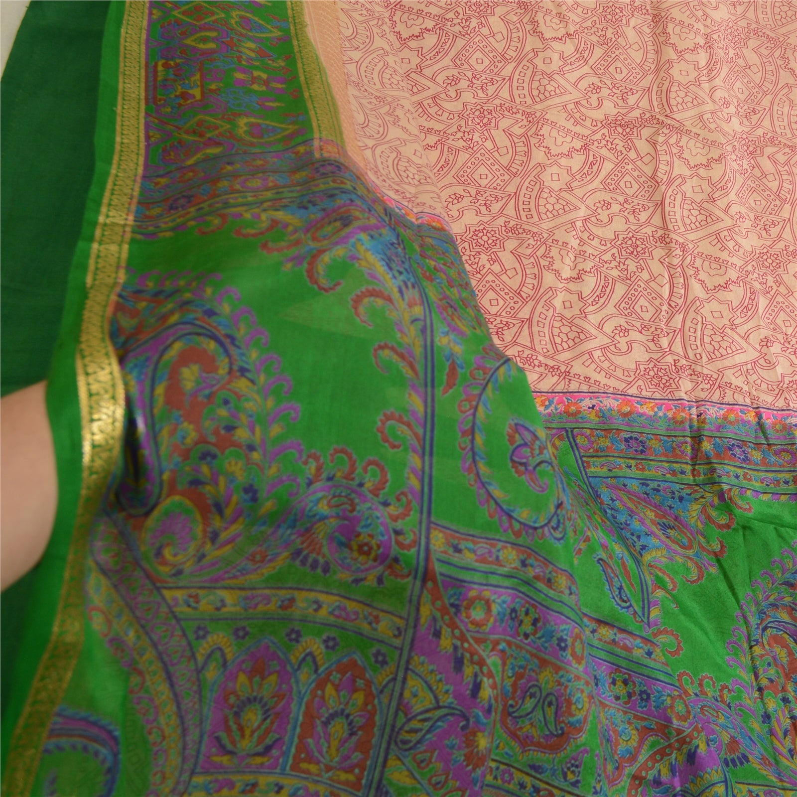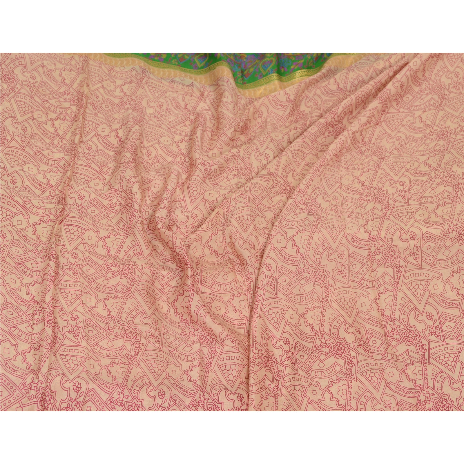 Sanskriti Vintage Sarees Pink & Green Pure Silk Printed Sari 5yd Craft Sustainable Fabric