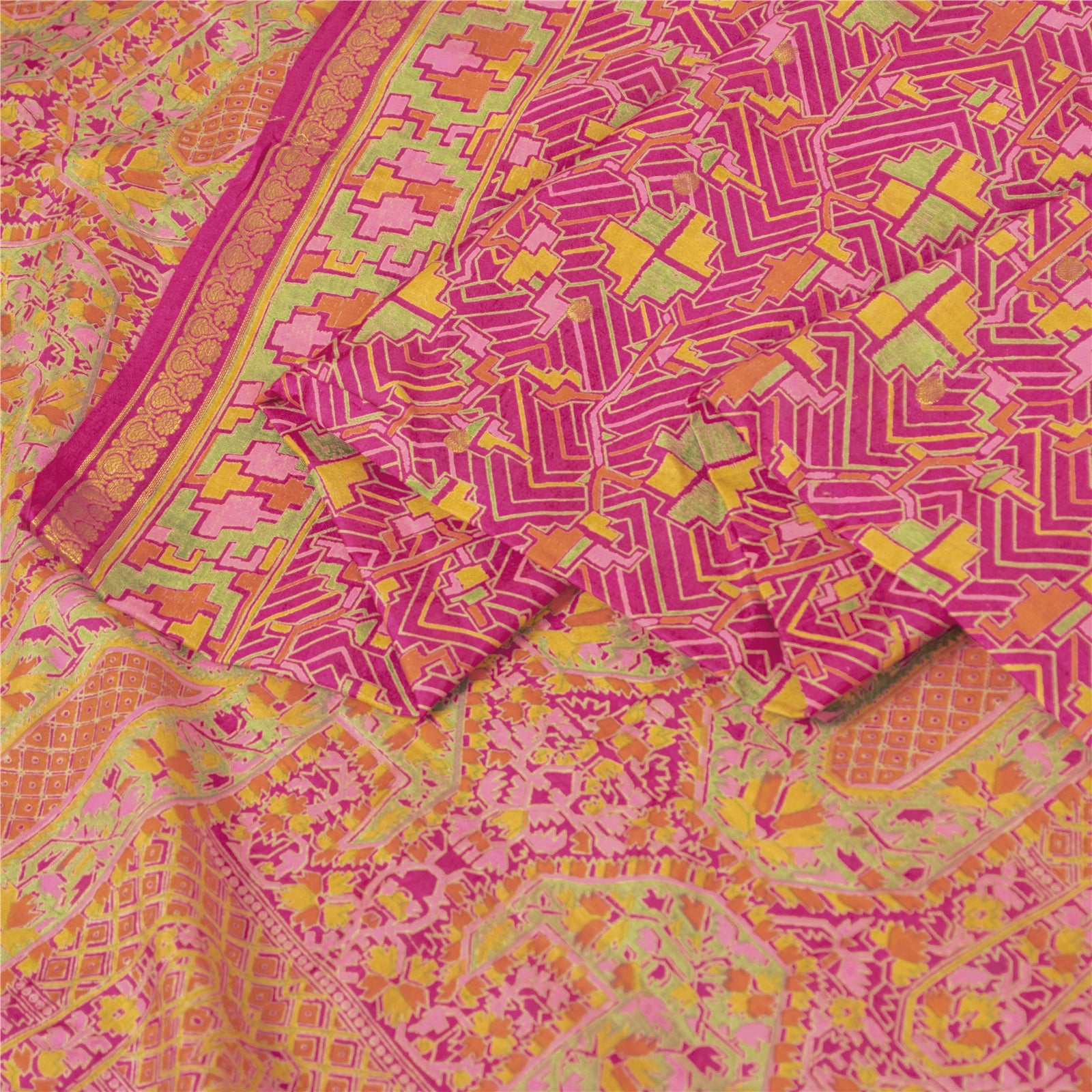 Beautiful pink colored pure silk printed saree with floral & geometric design on pallu, border & center part. Uses-Crafting, Repurpose, Creative Sewing Project, Dressmaking, Kaftans, Use It As A Sari, Window Dressing, Upcycling, Sarongs, Throw,Table Linen,Decorative Fabric, Sustainable Indian Fabric. THE ITEM COLOR OR SHADE MAY BE DARKER OR LIGHTER THAN THE PICTURE.' International buyers please note: Import duties, taxes, and charges are not included in the item price or postage cost. Buyer will pay custom duty/tax,VAT, and any applicable charges at the time of delivery. PR-65859