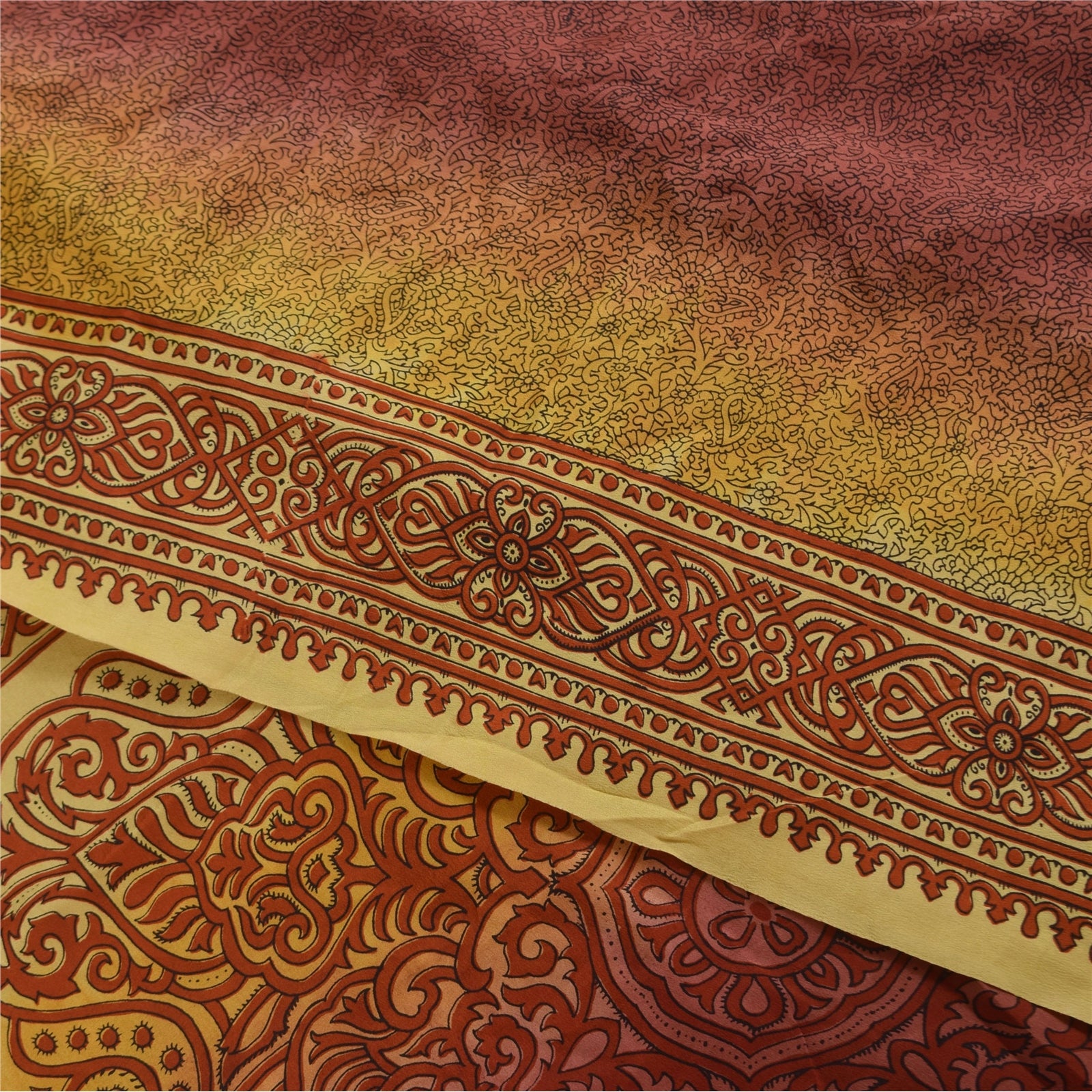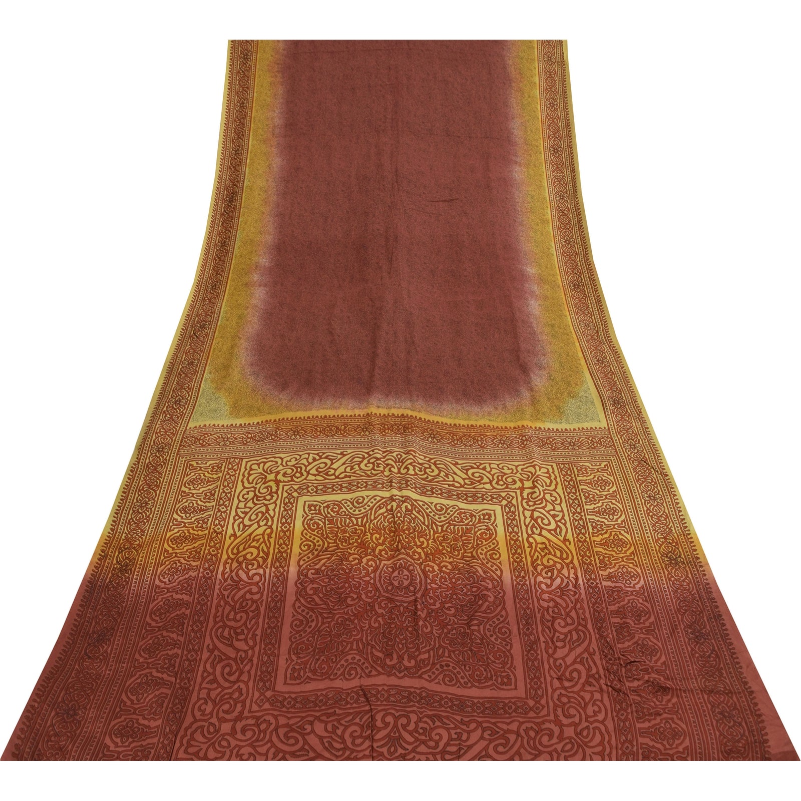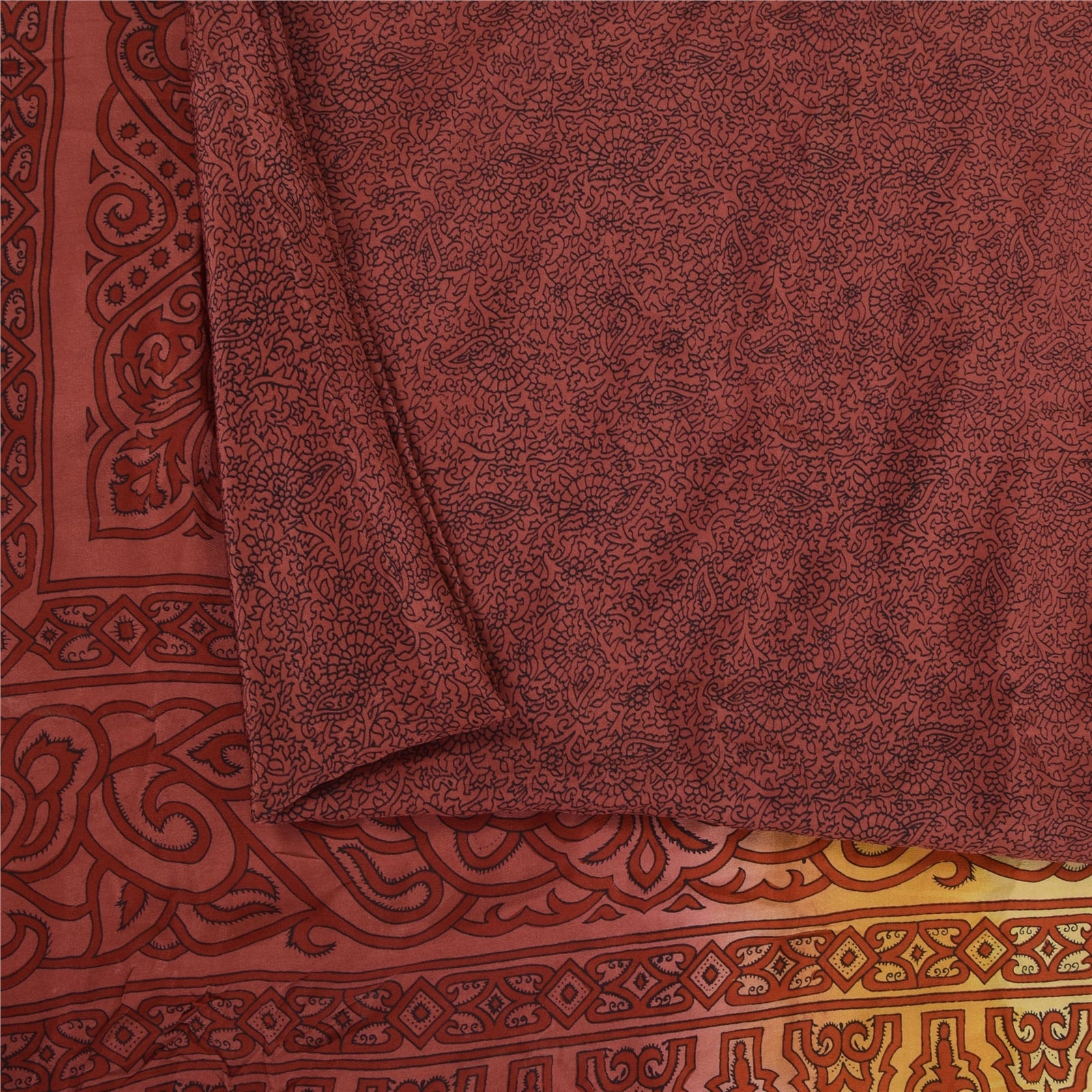 Sanskriti Vintage Sarees Plum 100%Pure Crepe Silk Printed Sari 5+yd Craft Sustainable Fabric