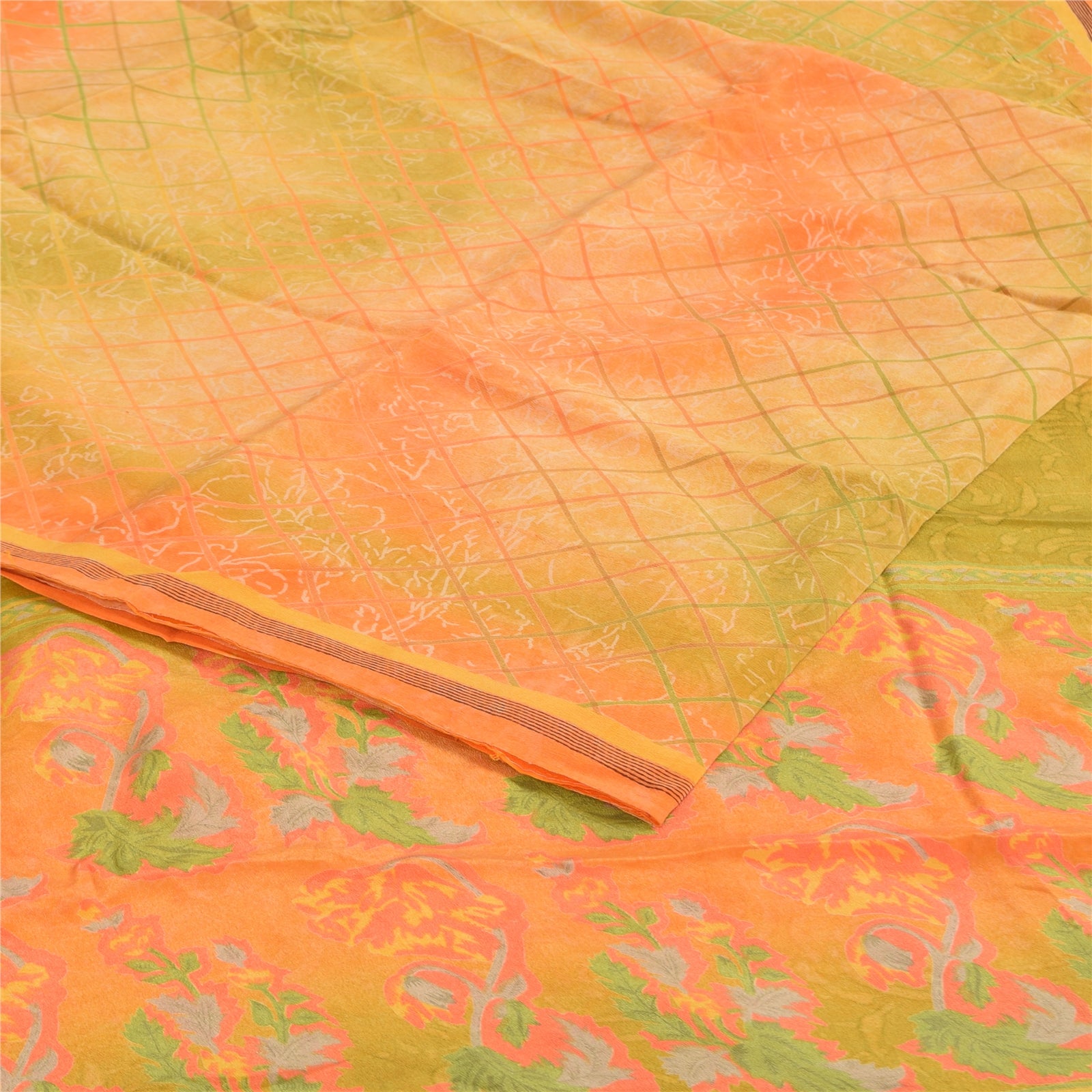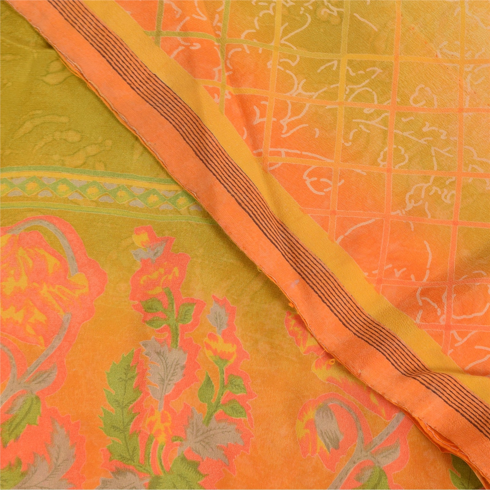 Sanskriti Vintage Sarees Pure Crepe Printed Orange/Green Sari Craft Soft Sustainable Fabric