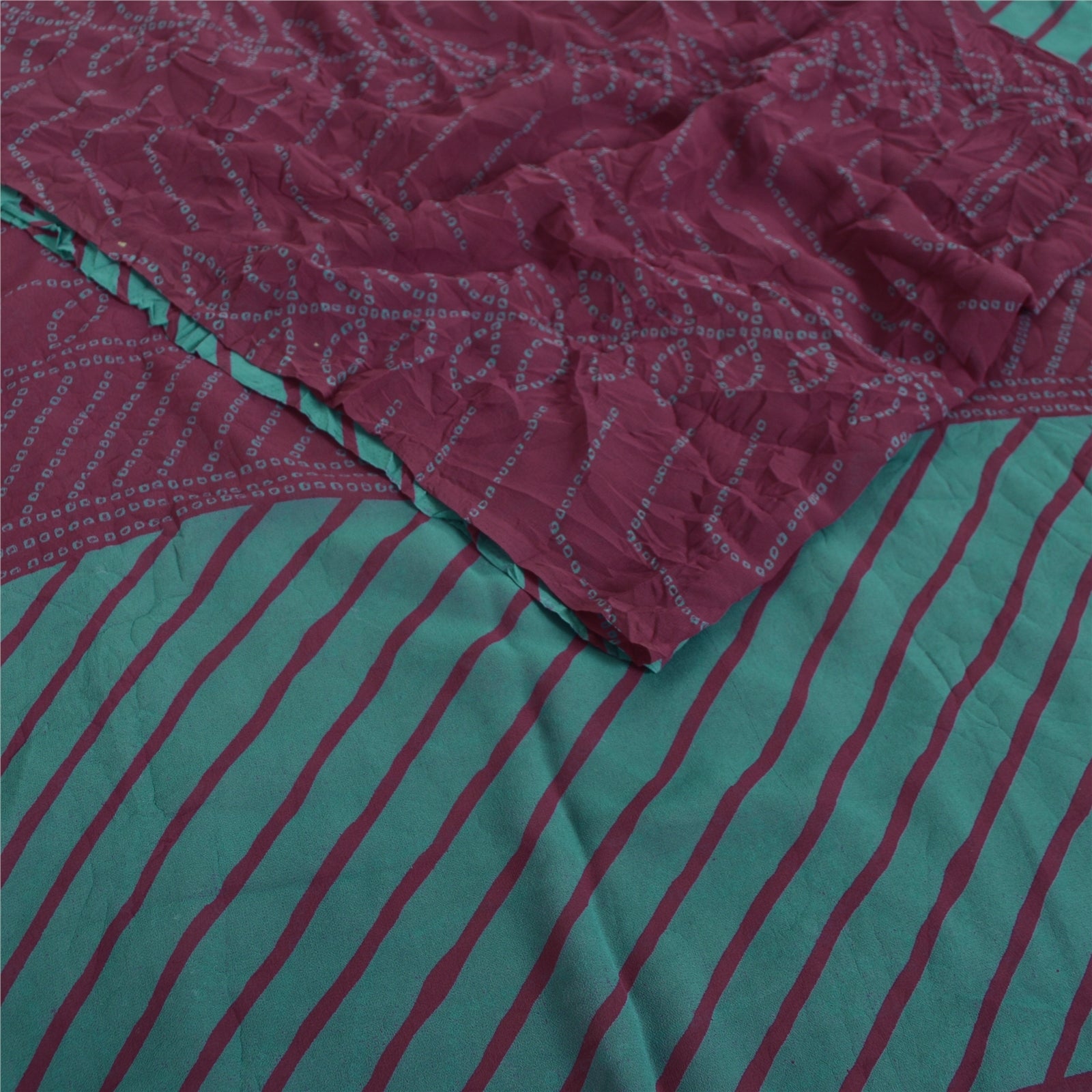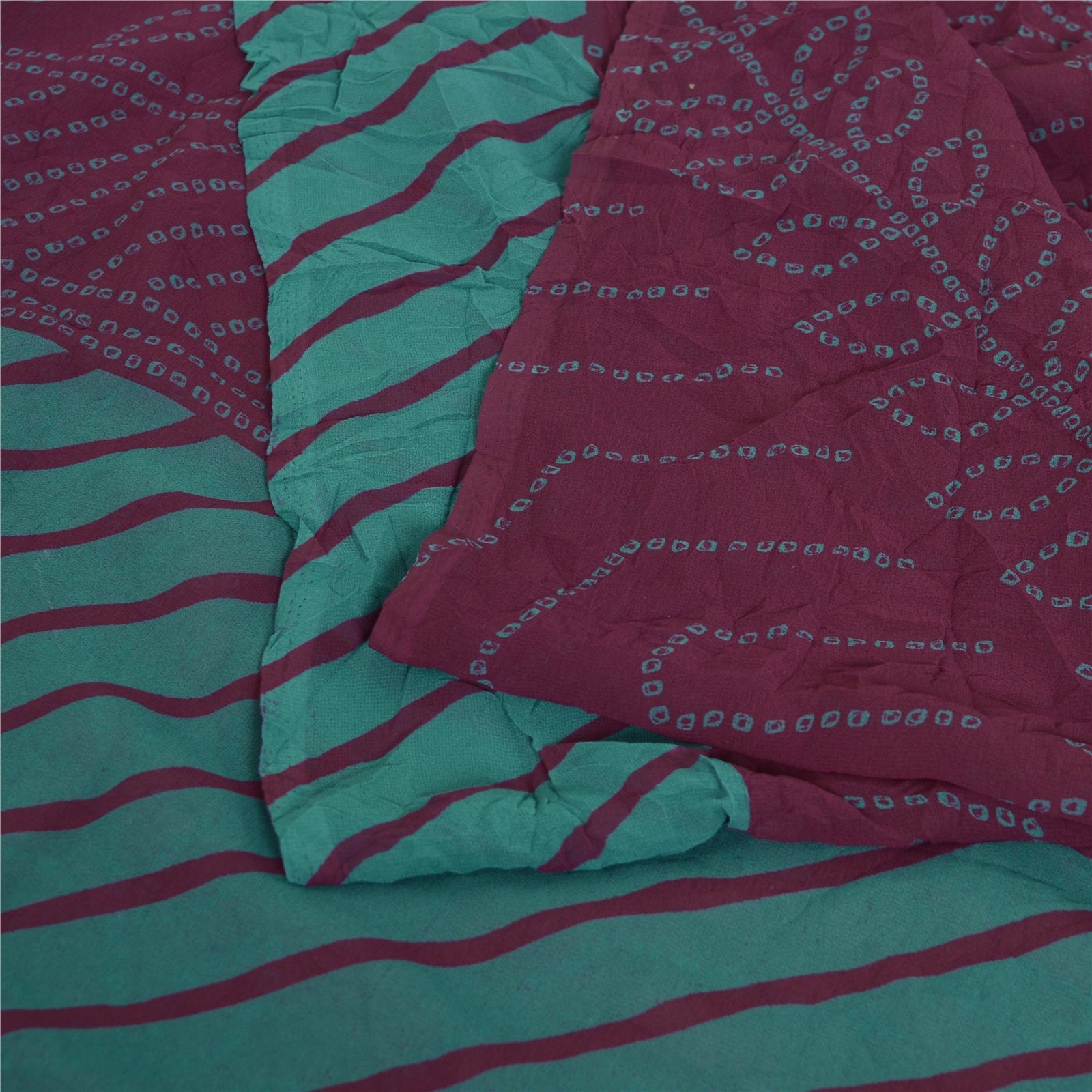 Sanskriti Vintage Sarees Pure Georgette Purple & Blue Bandhani 6Yd Gujrat Sari