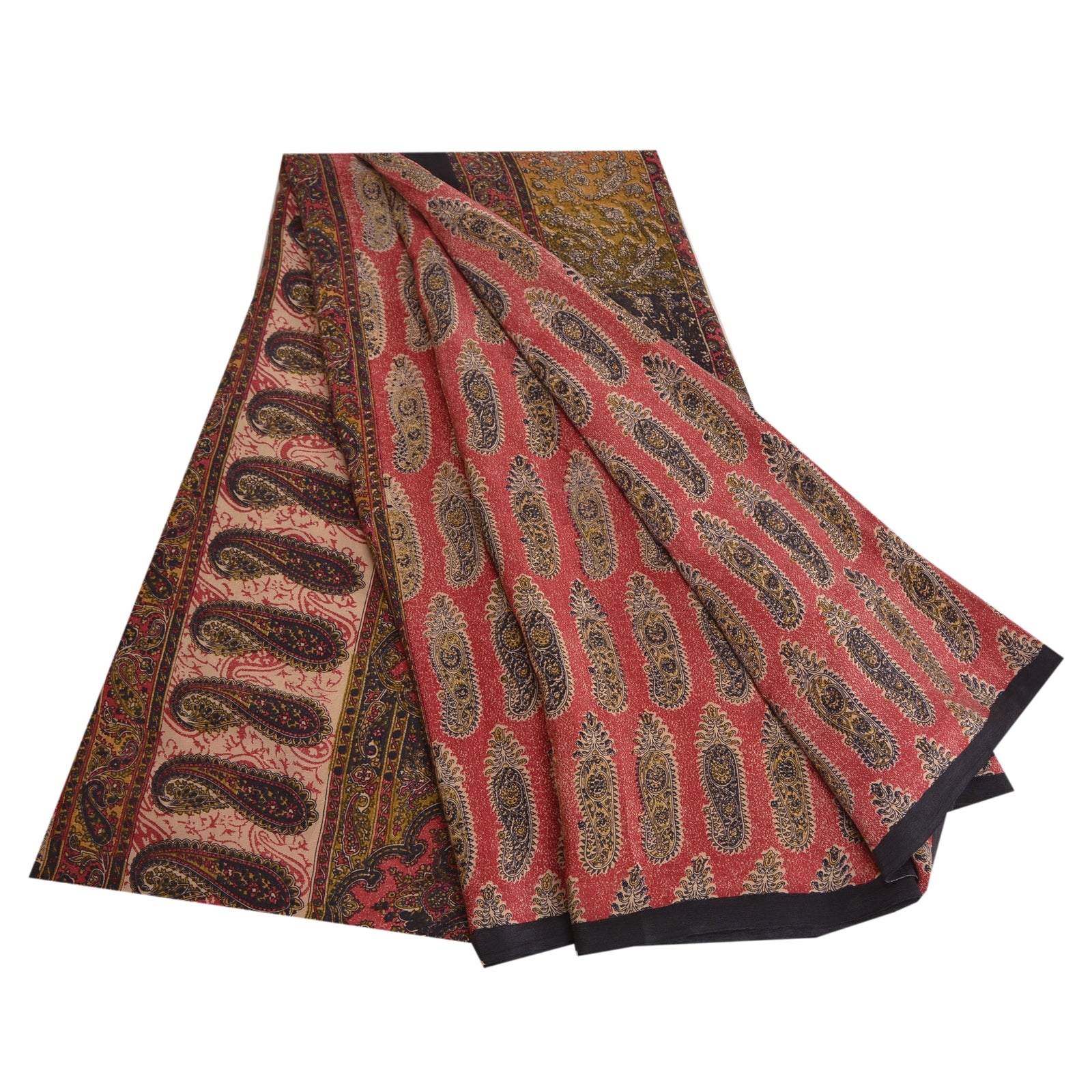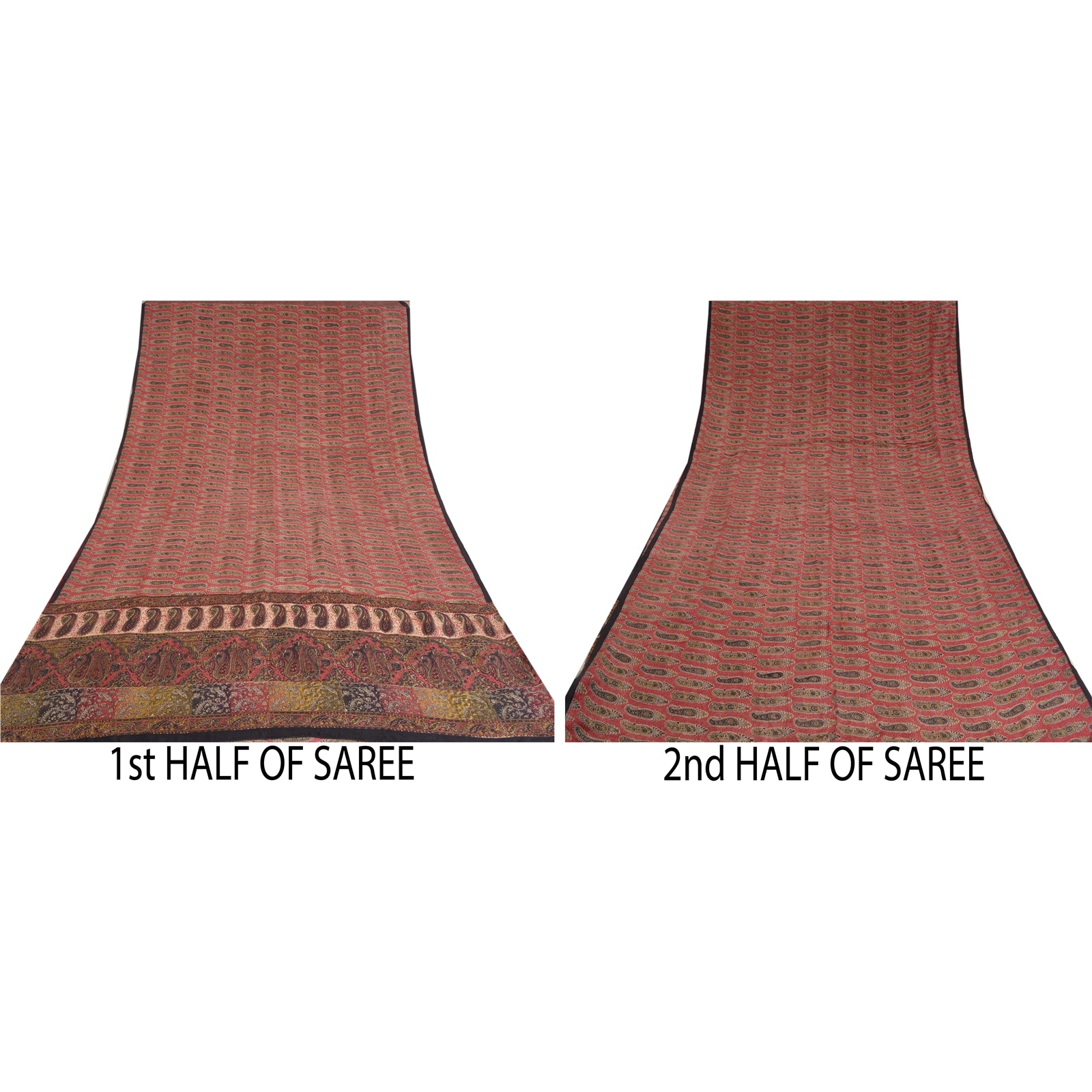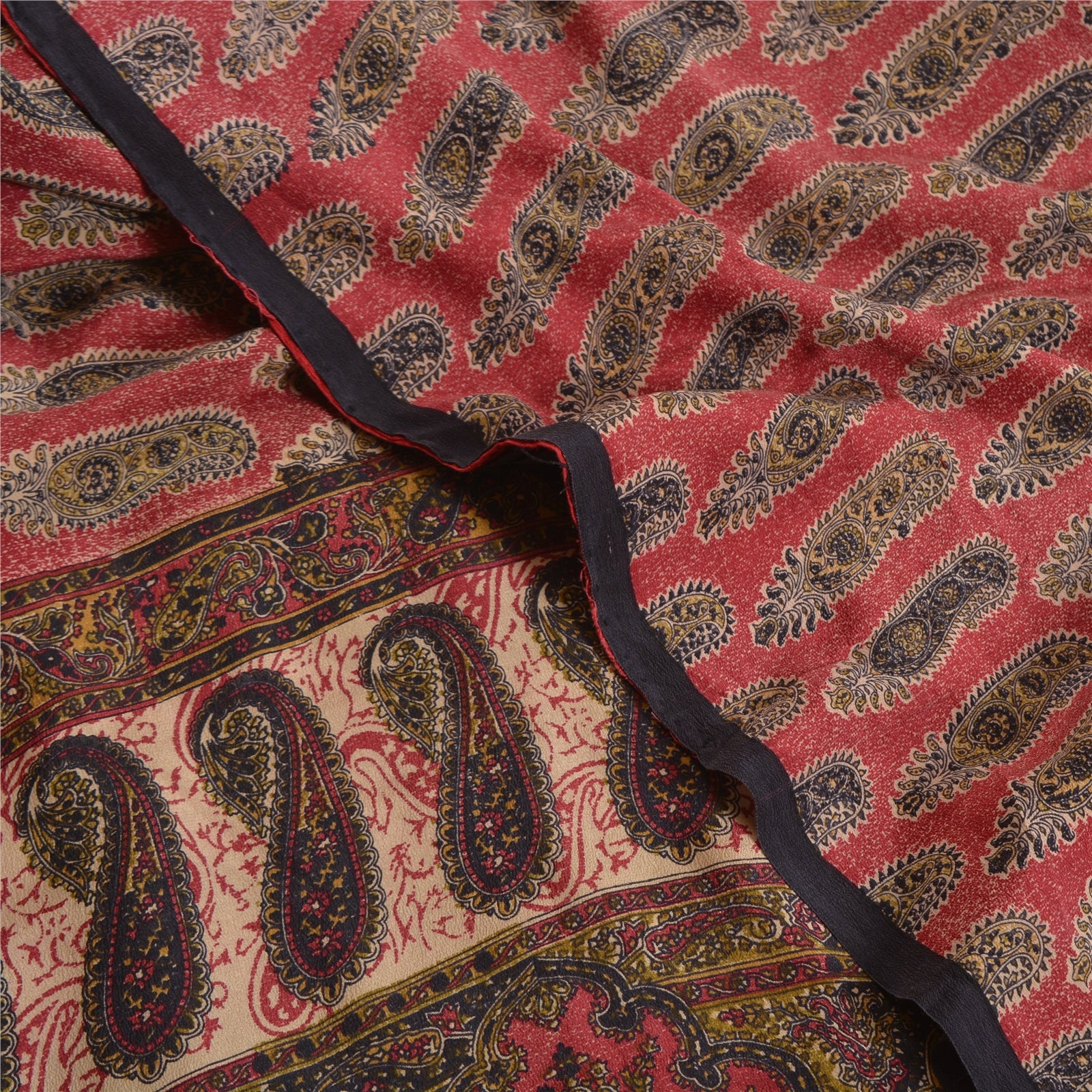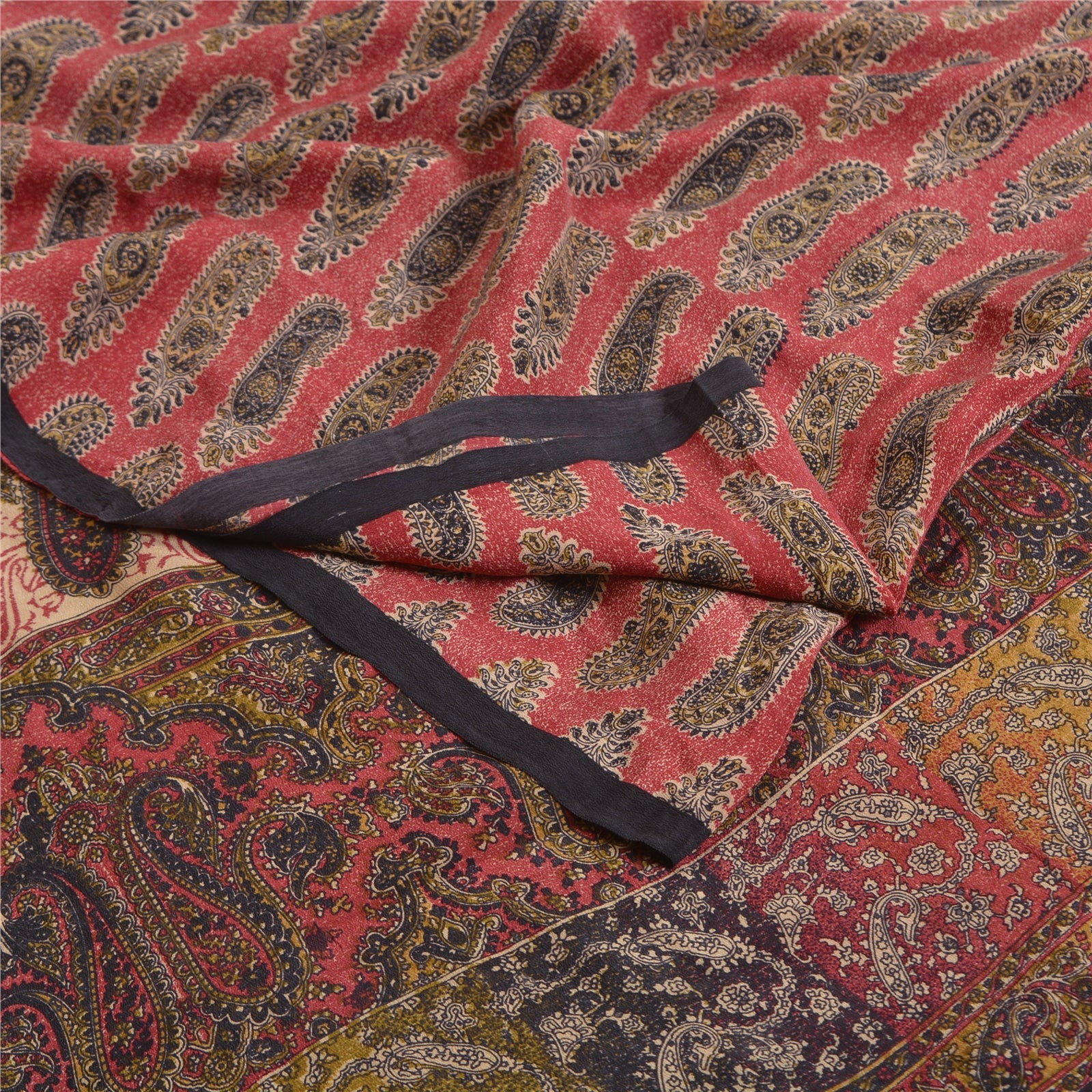 Sanskriti Vintage Sarees Purple 100% Pure Crepe Silk Printed Sari Craft Sustainable Fabric