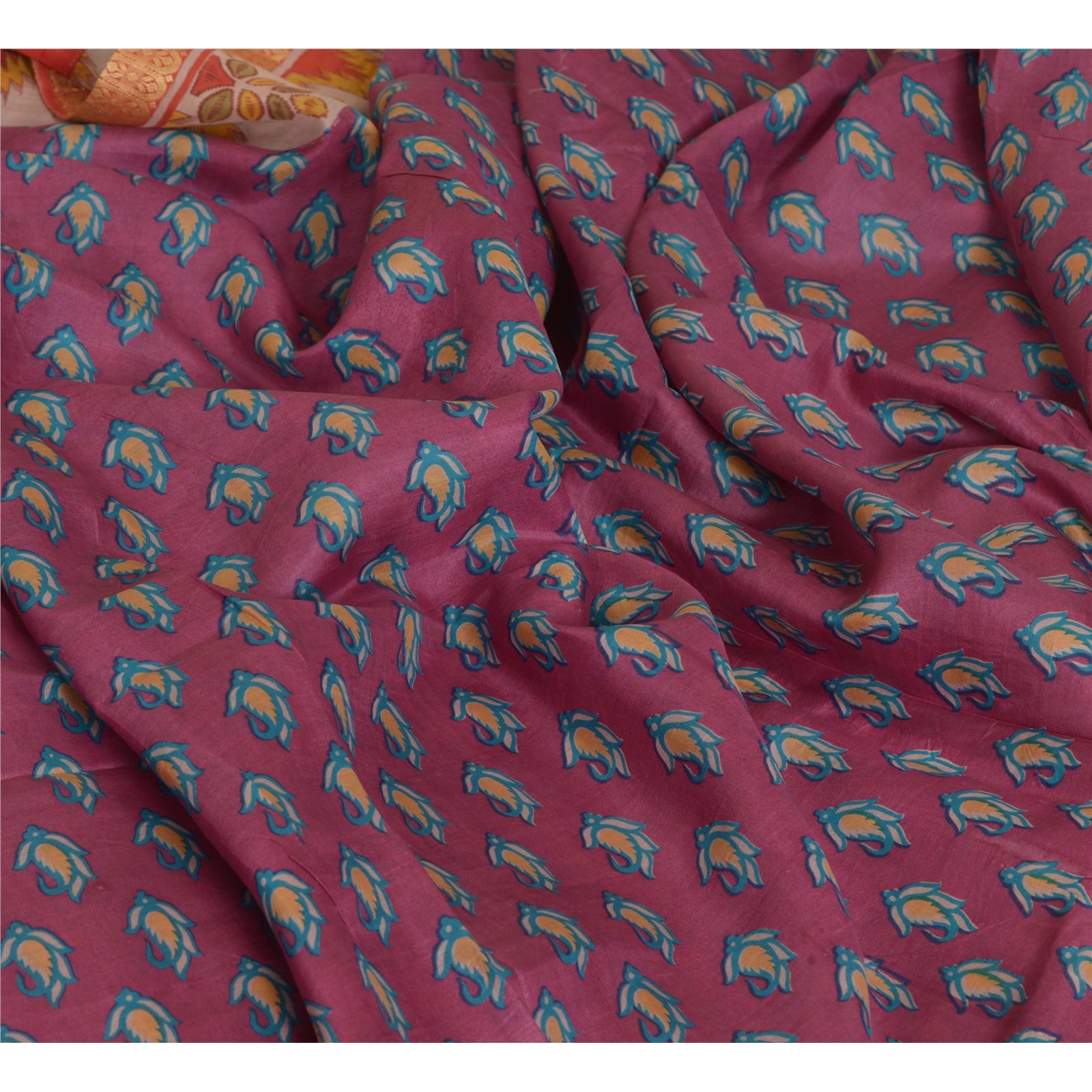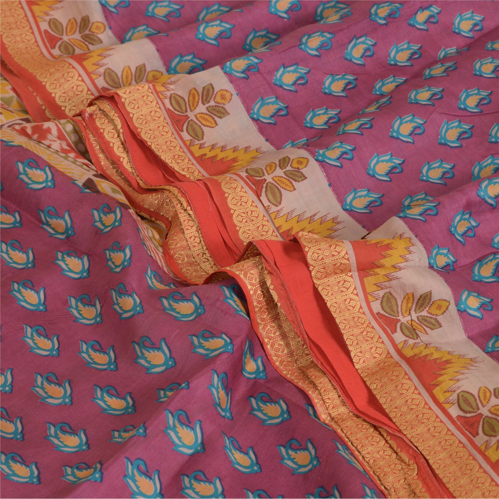 Sanskriti Vintage Sarees Purple 100% Pure Silk Printed Sari Floral Craft Sustainable Fabric