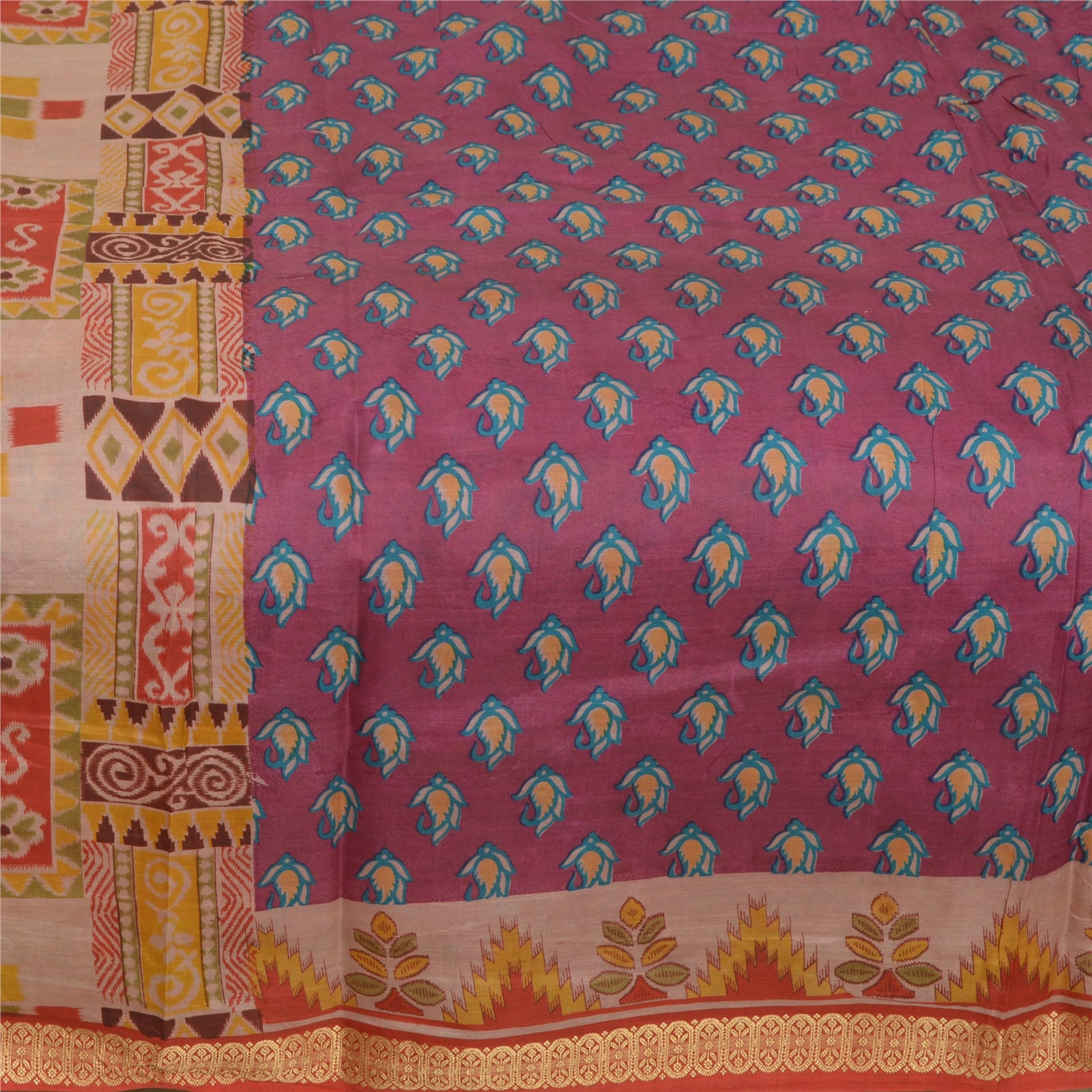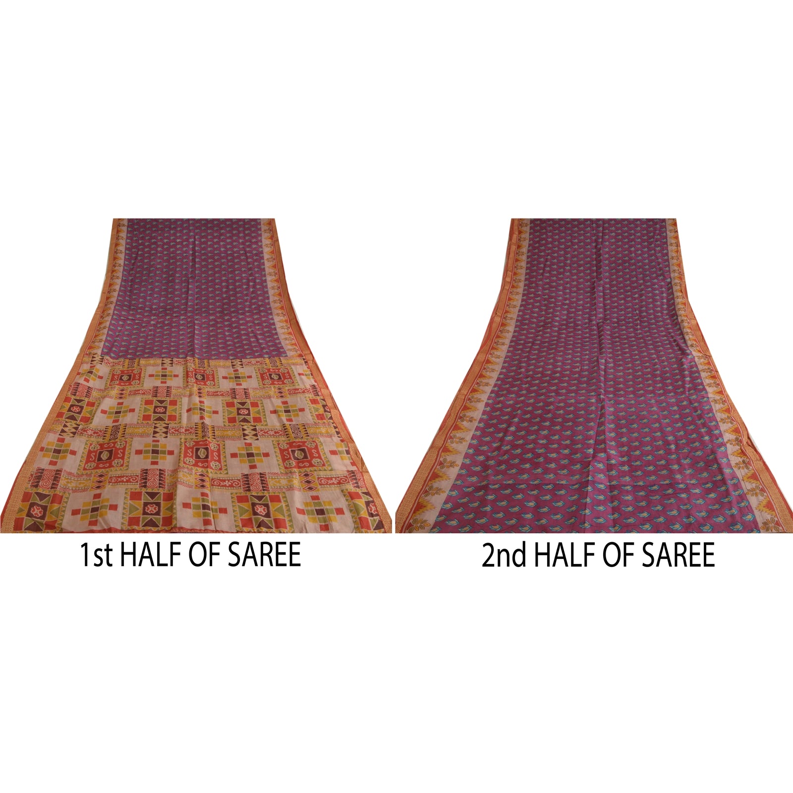 THE ITEM COLOR OR SHADE MAY BE DARKER OR LIGHTER THAN THE PICTURE.' Beautiful purple colored pure silk printed saree. Pallu & Border has ikat printed floral design & golden woven work. Floral design in center part of saree.. Saree has mild stain on it. What is special about this saree? Fabulous design is really enhancing the beauty of the saree.This unique vintage saree can be used for various crafting ideas even if you don't want to use it as a sari. Design a dress, use it as window, dressing, upholstery, sarongs, throw, dress making and table linen much more. Let your creative juices flow and use this decorated Sustainable Fabric in multiple fashion. International buyers please note: Import duties, taxes, and charges are not included in the item price or postage cost. These charges are the buyer's responsibility. Please check with your country's customs office to determine what these additional costs will be prior to bidding or buying. Buyer will pay custom duty/tax. It is calculated and charged differently by every country. As a seller I do not have any control over it. VAT or sales tax is calculated by the platform at the time of checkout. Customs charge is payable at the time of delivery.'