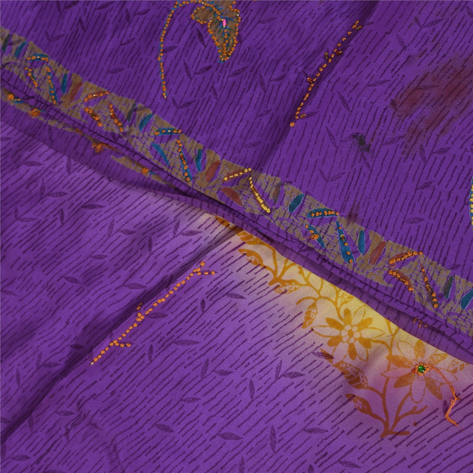 THE ITEM COLOR OR SHADE MAY BE DARKER OR LIGHTER THAN THE PICTURE.' • Beautiful purple & yellow colored printed & hand embroidered pure crepe silk saree . • Pallu & Border has printed floral design with thread knot, sequins, yellow glass beads, rhinestone work. • Similar work in center part of sari . This unique vintage saree can be used for various crafting ideas even if you don't want to use it as a sari. Design a dress, use it as a as window dressing, upholstery, sarongs, throw, dress making and table linen much more. Let your creative juices flow and use this decorated fabric in multiple fashion. International buyers please note: Import duties, taxes, and charges are not included in the item price or postage cost. These charges are the buyer's responsibility. Please check with your country's customs office to determine what these additional costs will be prior to bidding or buying.Buyer will pay custom duty/tax. It is calculated and charged differently by every country. As a seller I do not have any control over it. VAT or sales tax is calculated by the platform at the time of checkout. Customs charge is payable at the time of delivery. PRC-23512
