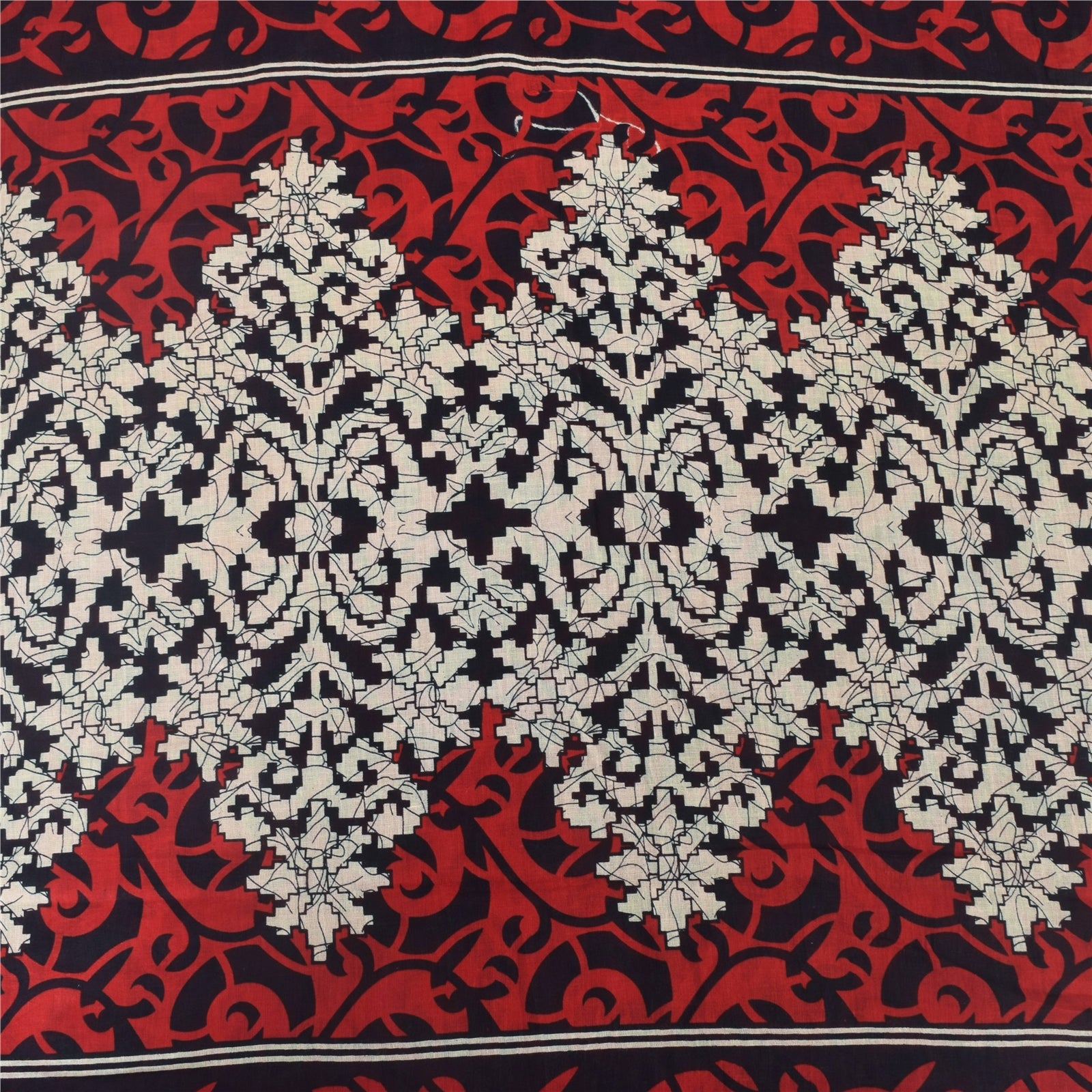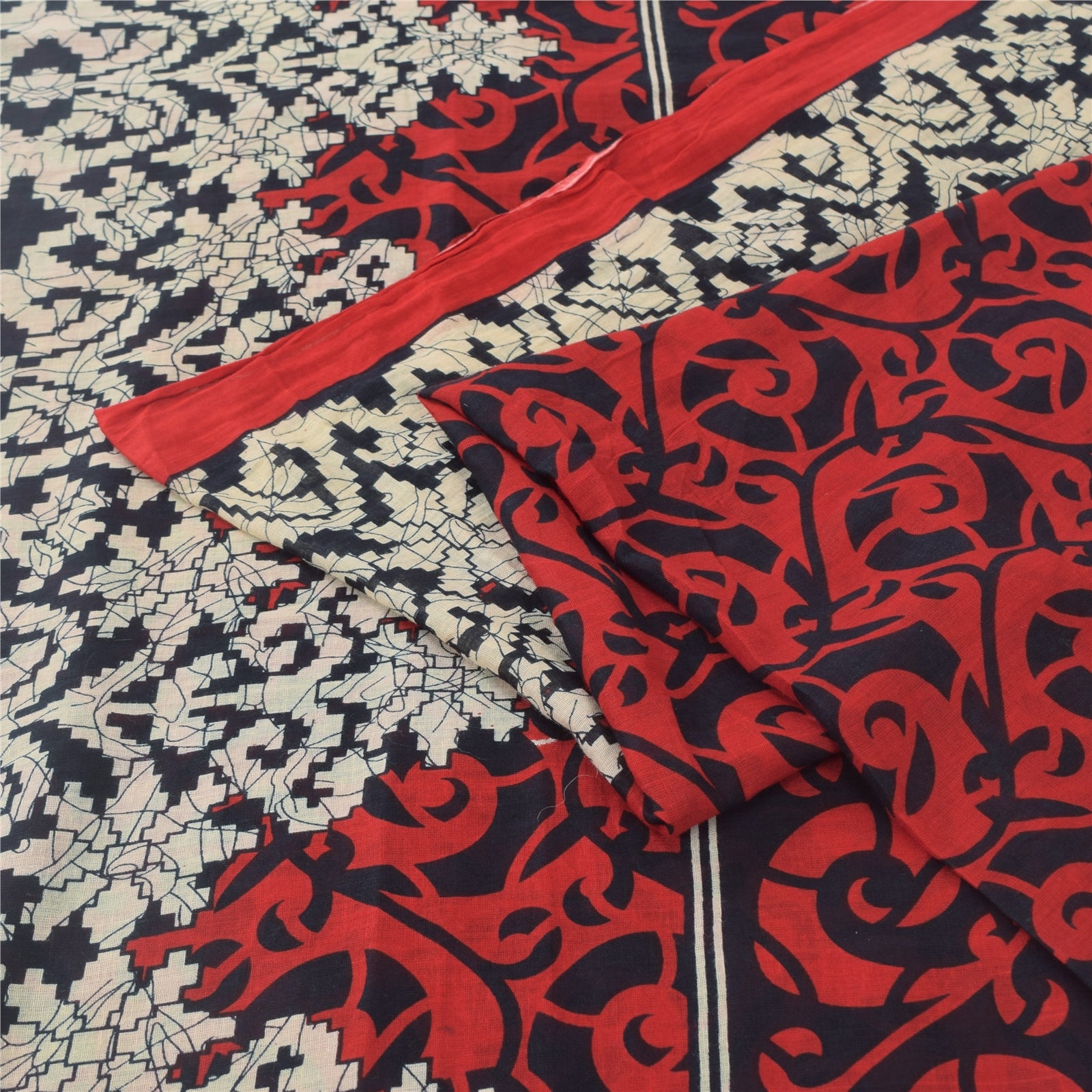 Sanskriti Vintage Sarees Red/Black Pure Cotton Printed Sari 5yd Craft Sustainable Fabric