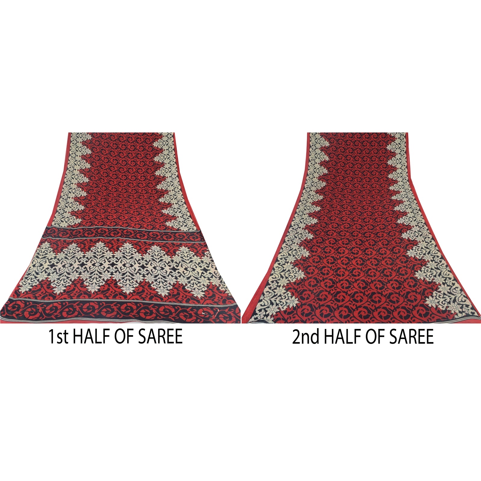 THE ITEM COLOR OR SHADE MAY BE DARKER OR LIGHTER THAN THE PICTURE. Attractive red & black colored pure cotton printed sari. Pallu & Border has printed floral design. Similar design in center part of saree.. This unique vintage saree can be used for various crafting ideas even if you don't want to use it as a sari. Design a dress, use it as a as window dressing, upholstery, sarongs, throw, dress making and table linen much more. Let your creative juices flow and use this decorated Sustainable Fabric in multiple fashion. Shipping Note: 'International buyers please note: Import duties, taxes, and charges are not included in the item price or postage cost. These charges are the buyer's responsibility. Please check with your country's customs office to determine what these additional costs will be prior to bidding or buying. Buyer will pay custom duty/tax. It is calculated and charged differently by every country. As a seller I do not have any control over it. VAT or sales tax is calculated by the platform at the time of checkout. Customs charge is payable at the time of delivery.'