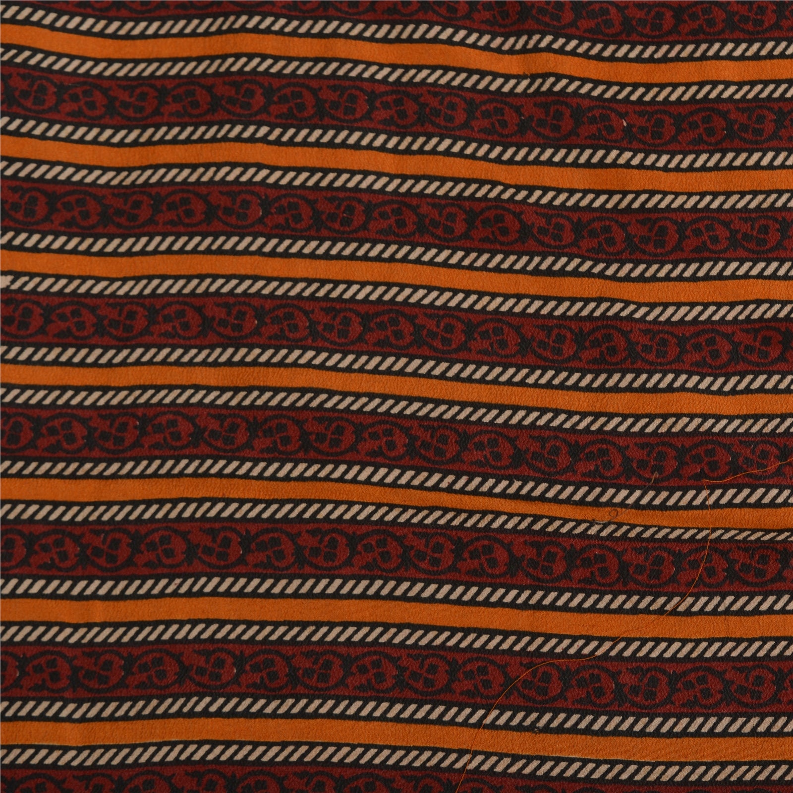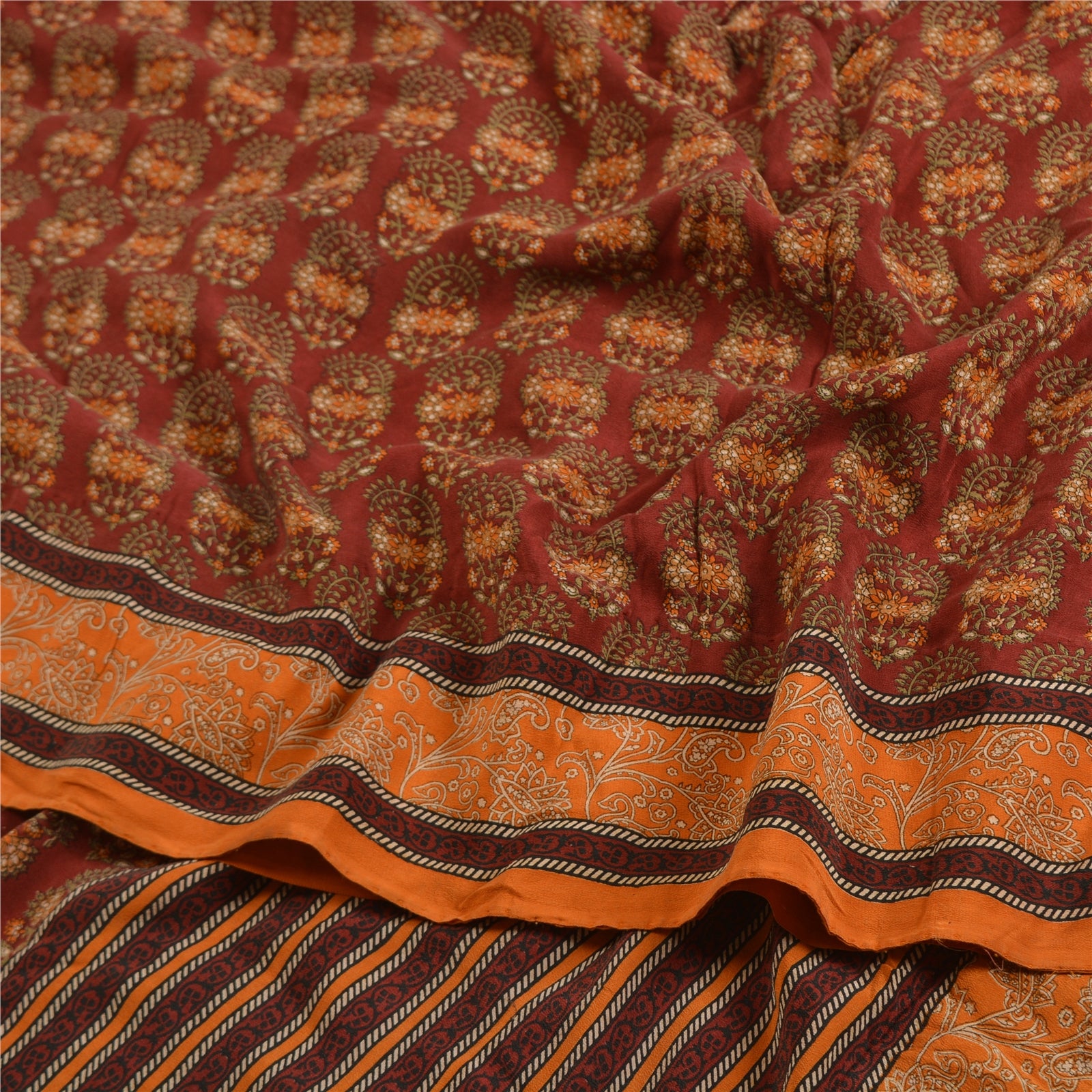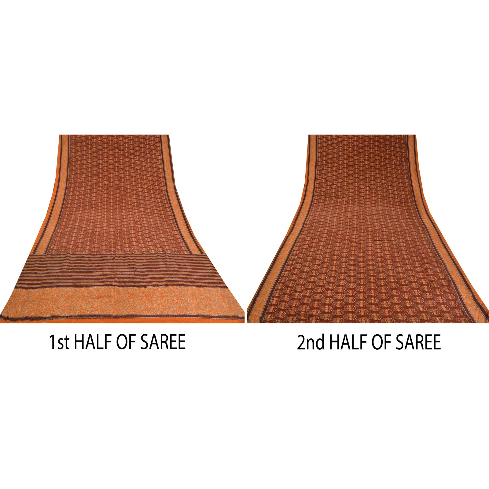 Sanskriti Vintage Sarees Red/Orange Pure Crepe Silk Printed Sari Craft Sustainable Fabric
