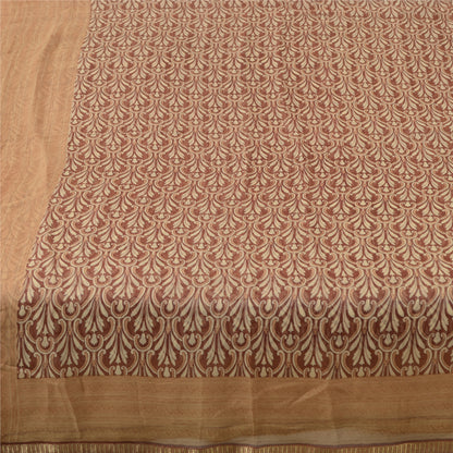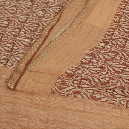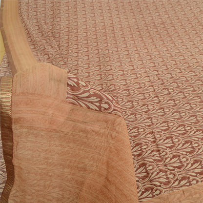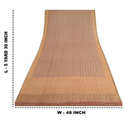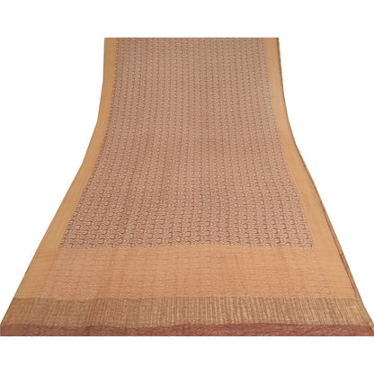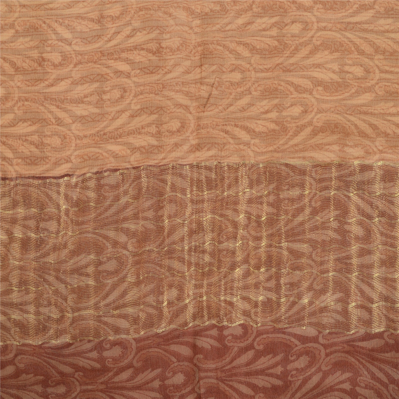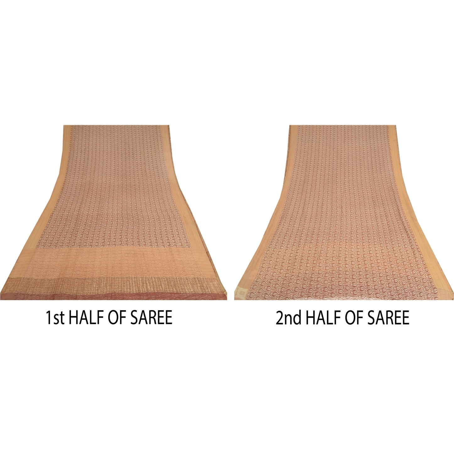 Sanskriti Vintage Sarees Red Pure Chiffon Silk Printed Zari Sari Craft Sustainable Fabric