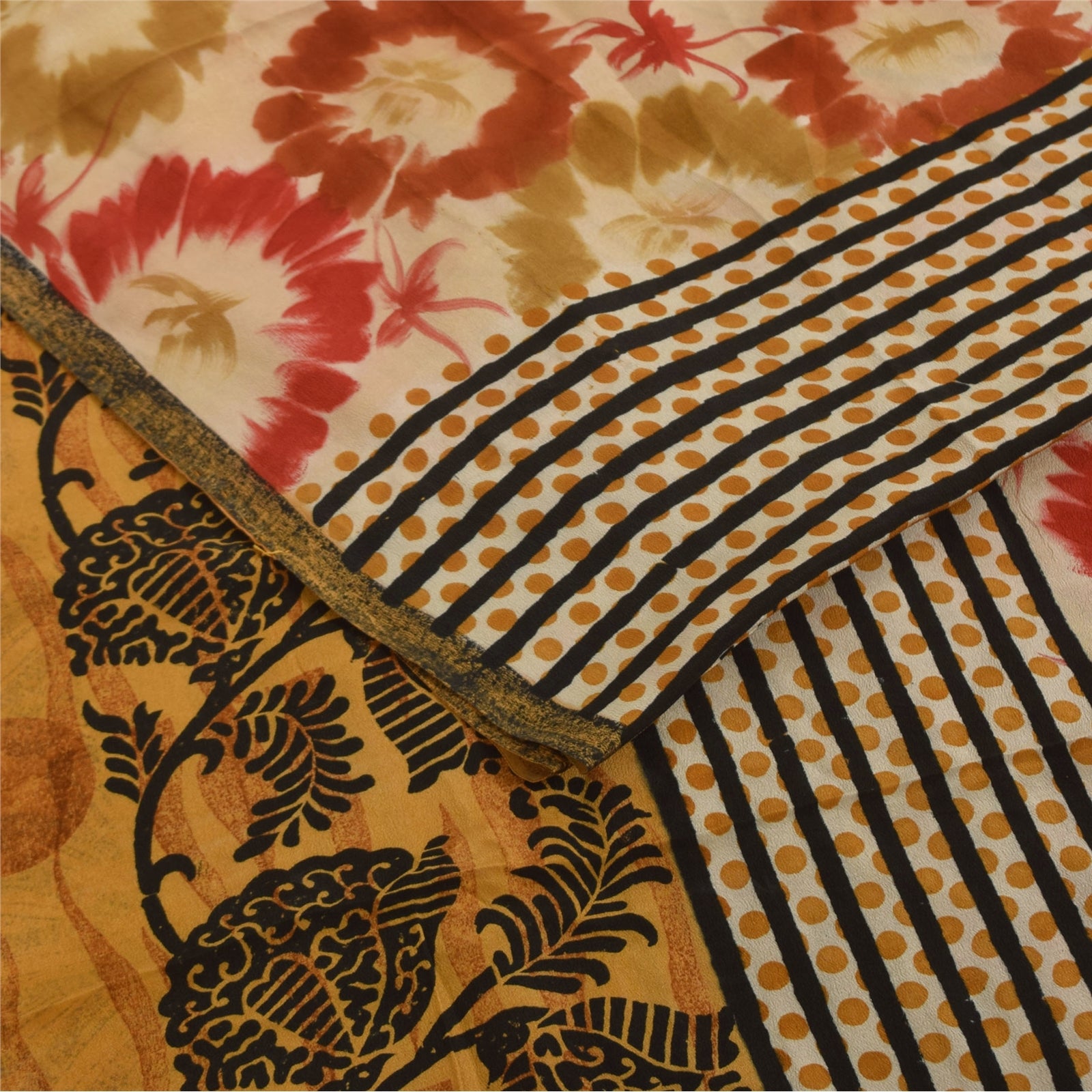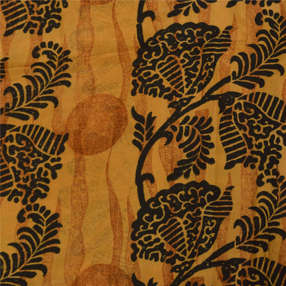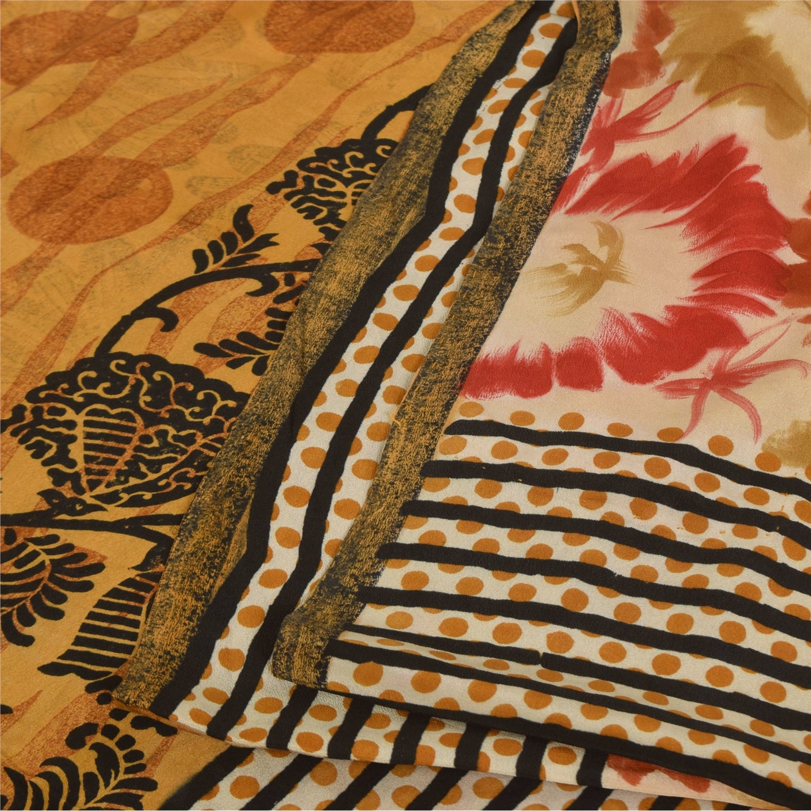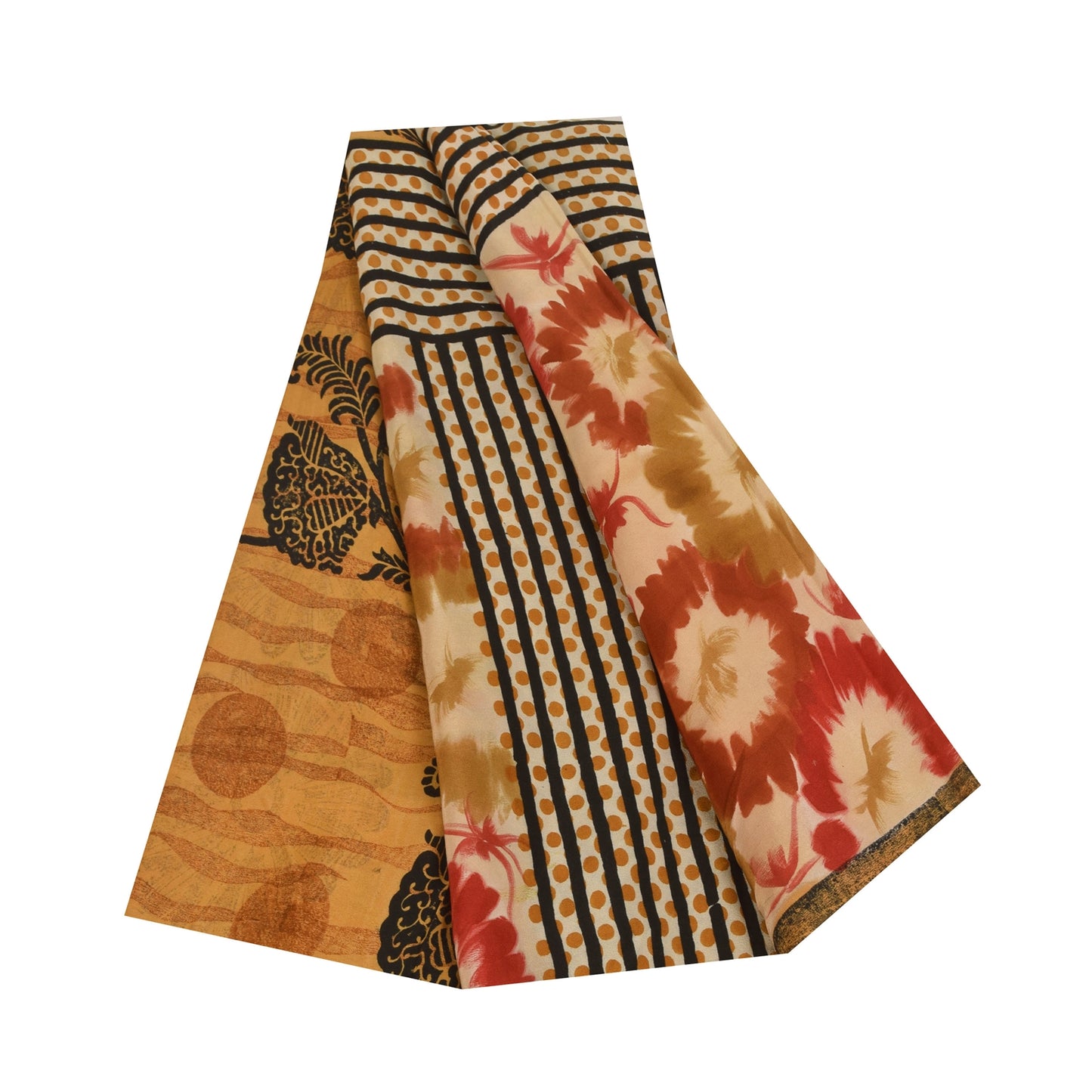 Sanskriti Vintage Sarees Saffron Pure Crepe Silk Printed Sari 5+yd Craft Sustainable Fabric