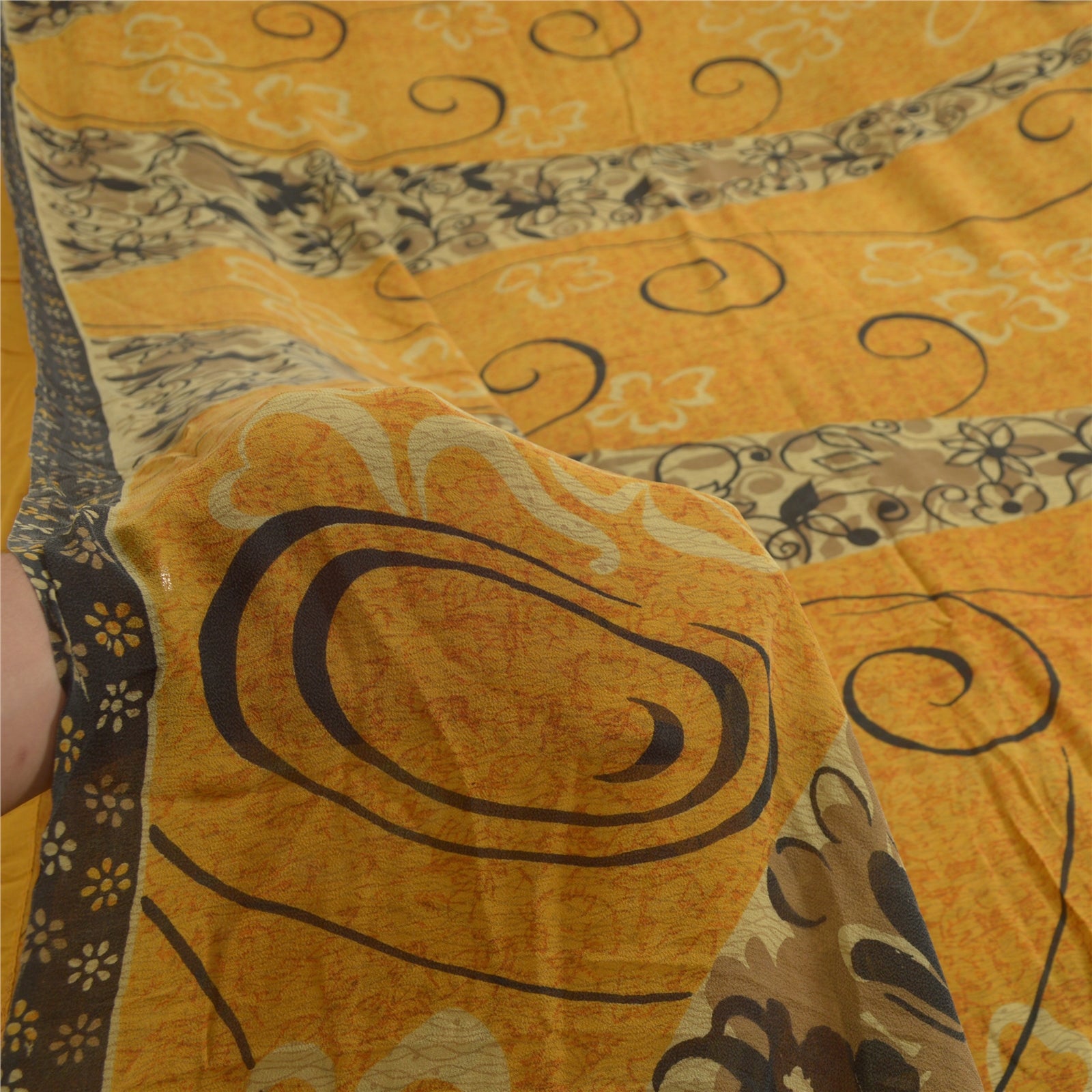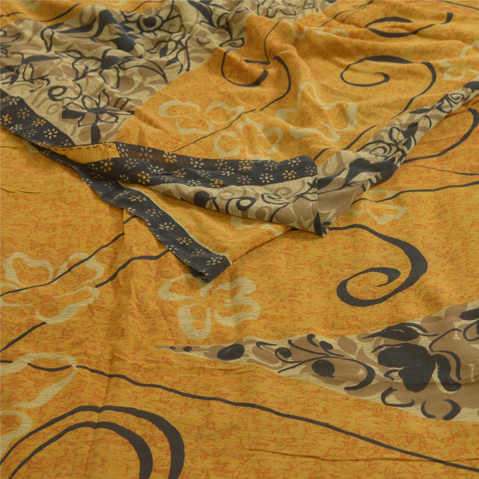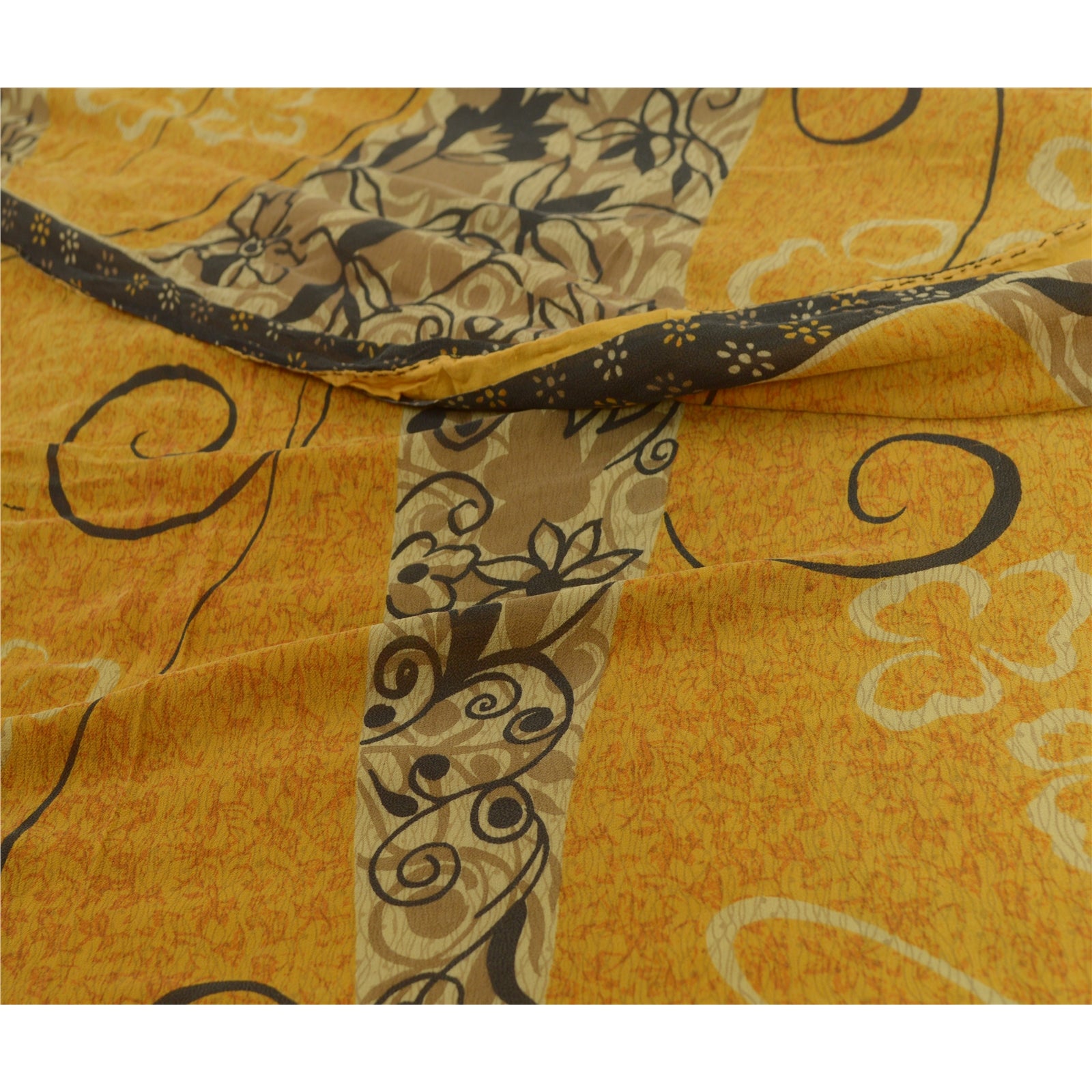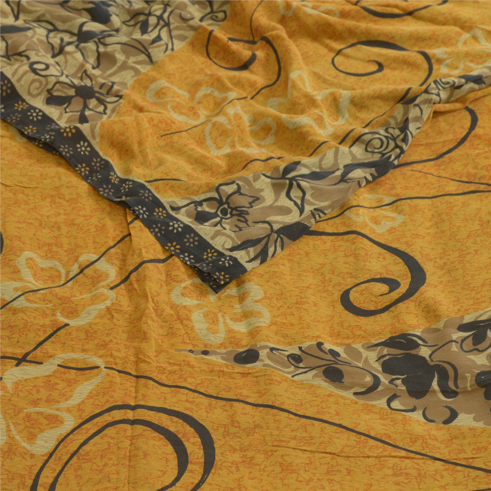 TITLE: PRG-13342 KreatvKraft Sarees Saffron Pure Georgette Silk Printed Sari Craft Fabric