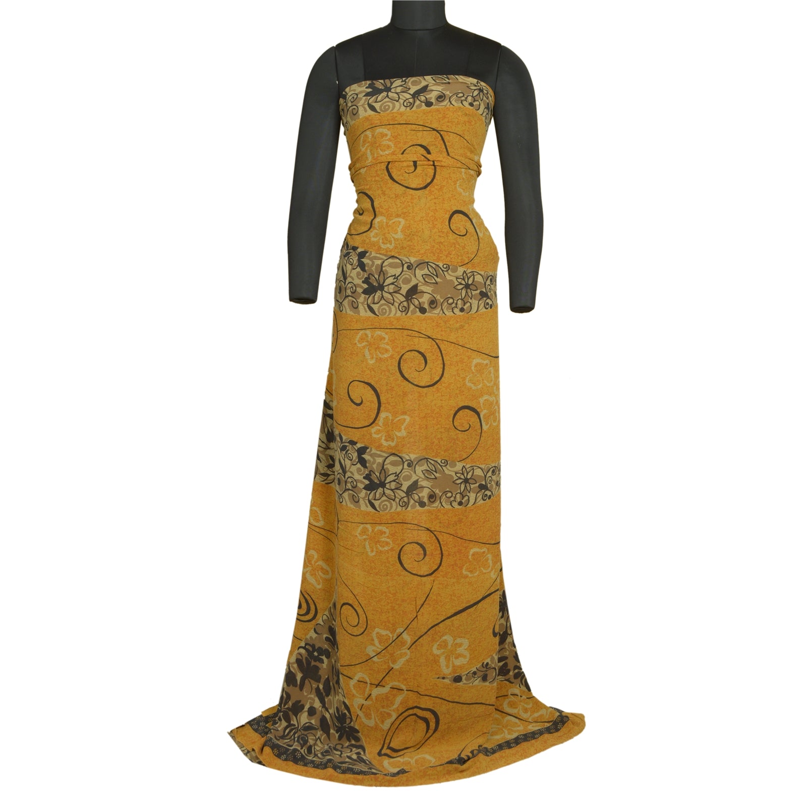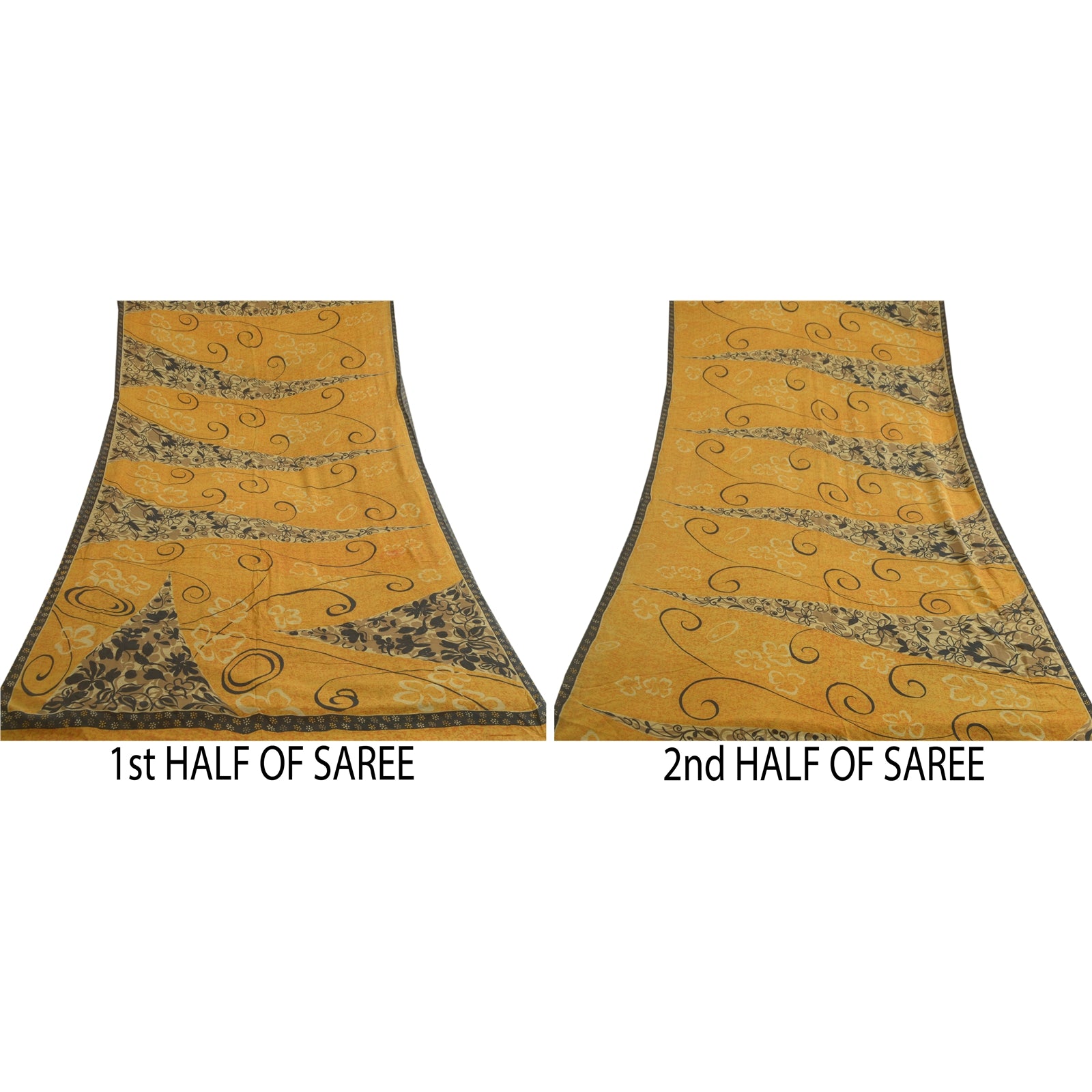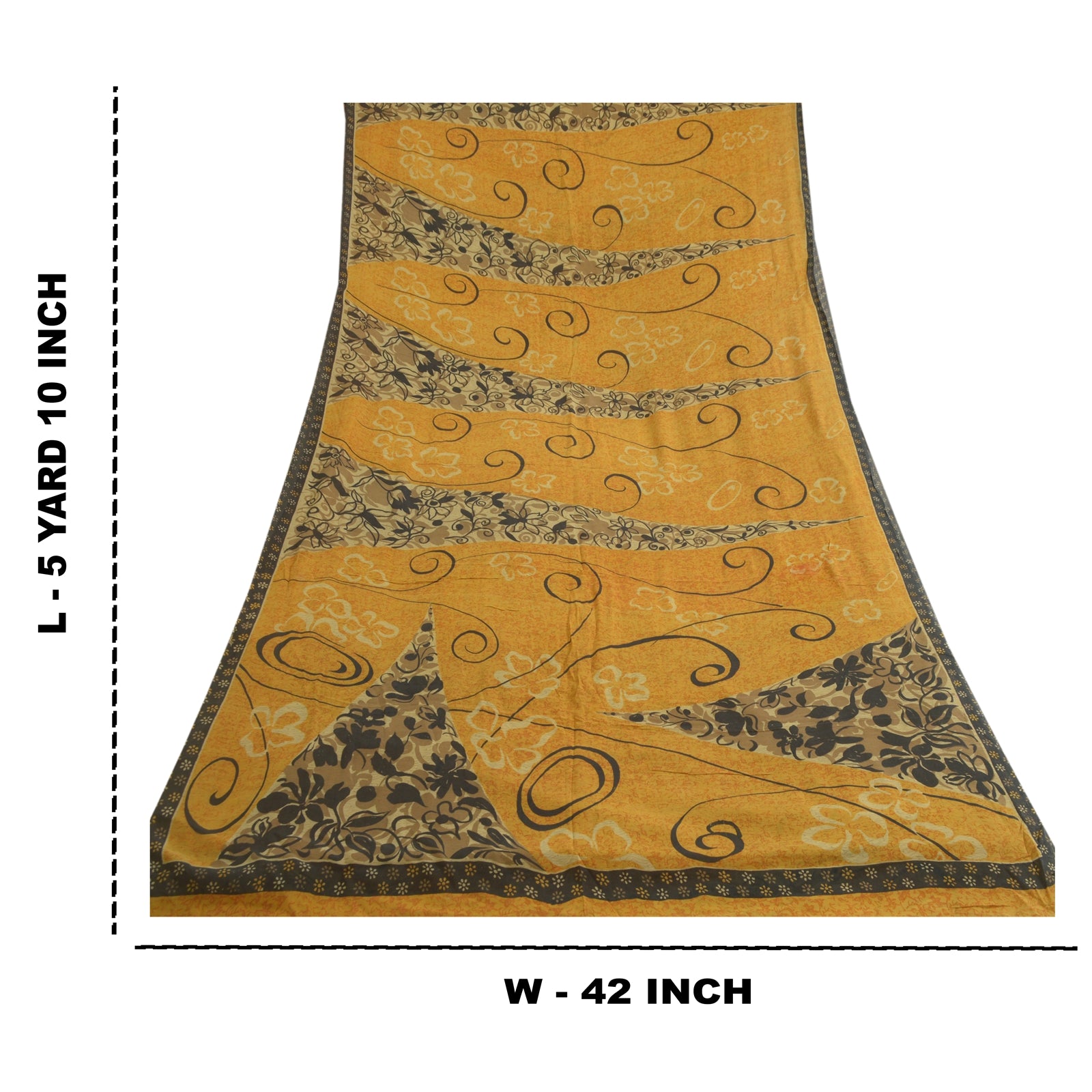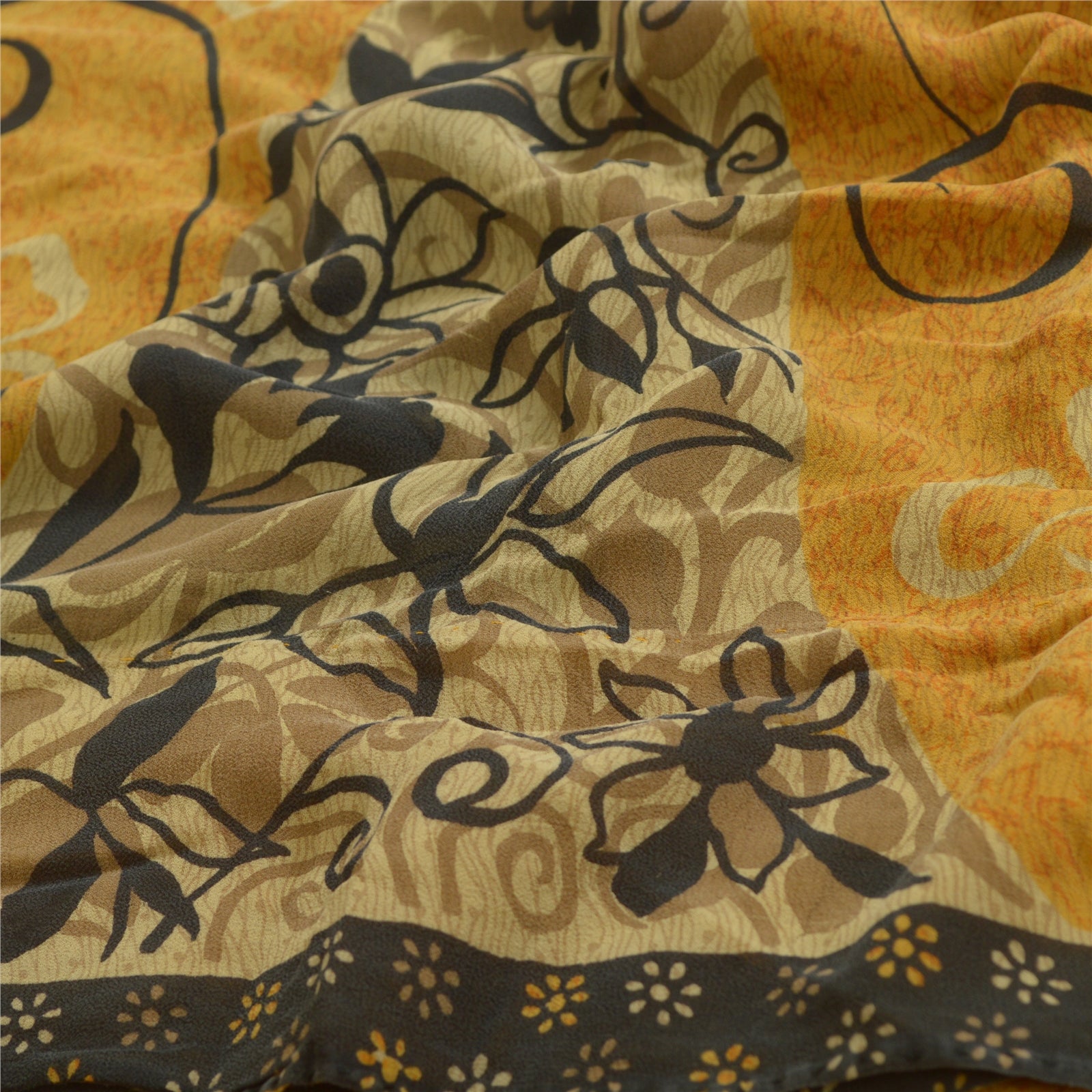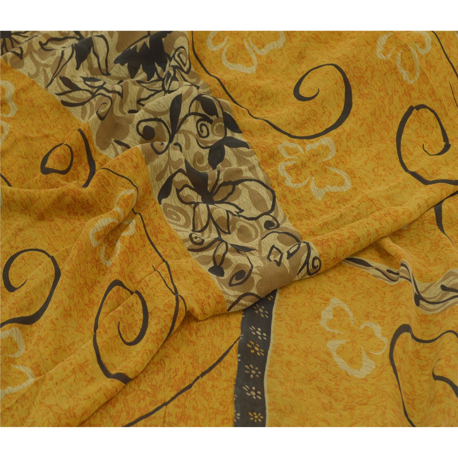 TITLE: PRG-13342 KreatvKraft Sarees Saffron Pure Georgette Silk Printed Sari Craft Fabric