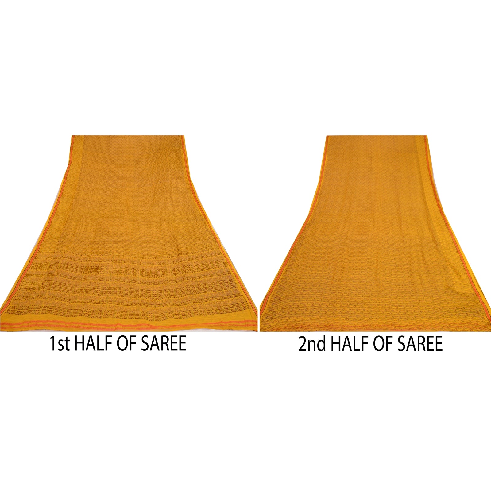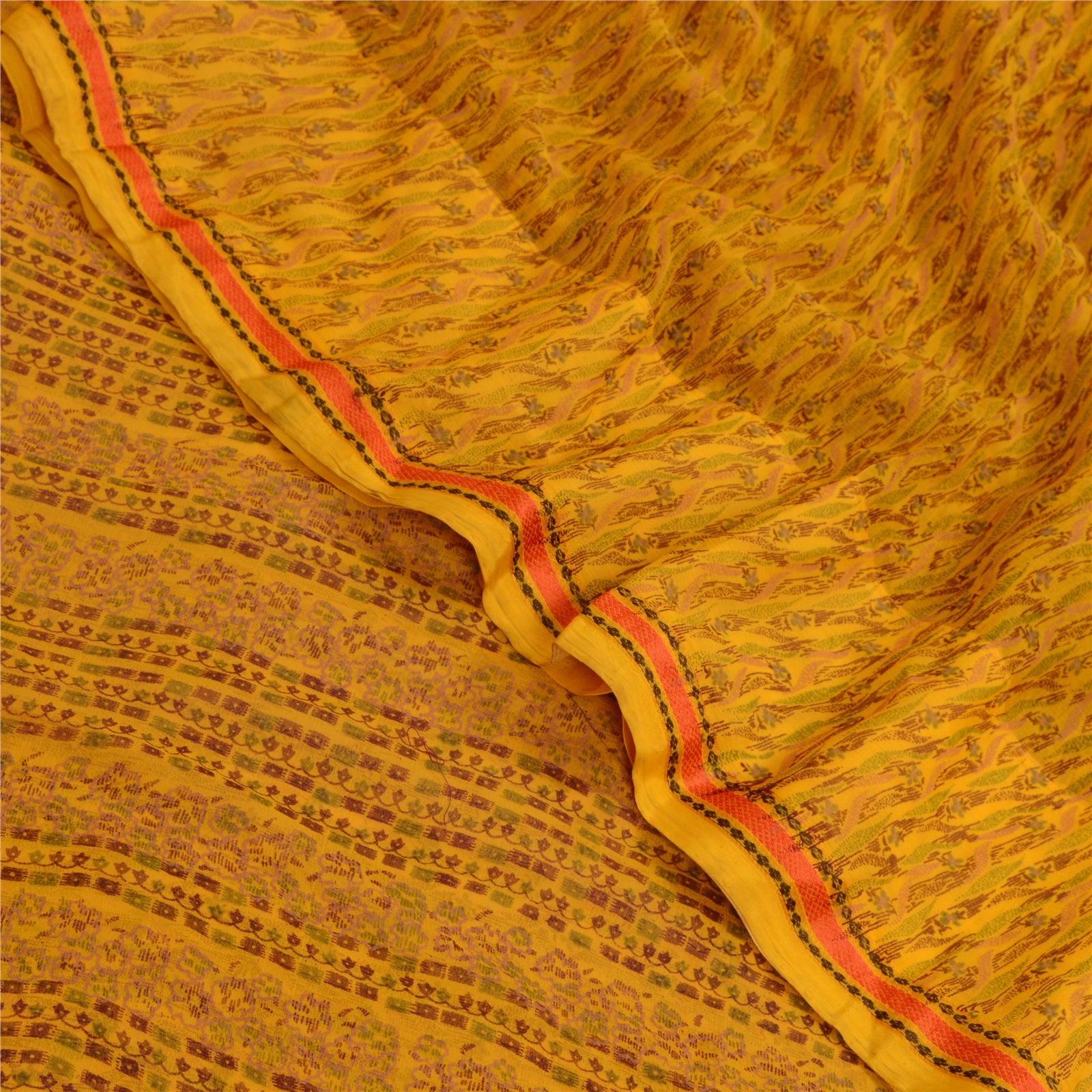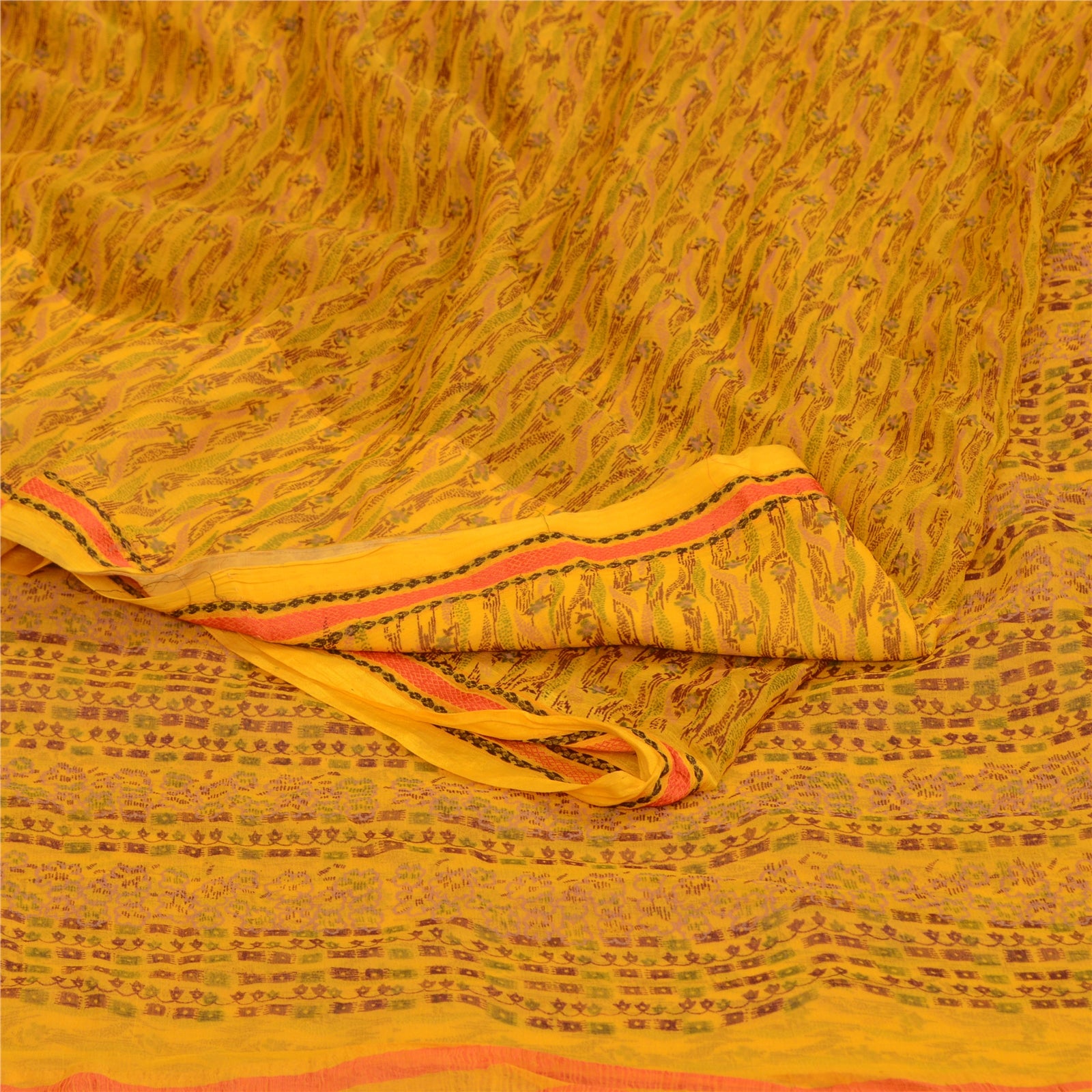 Sanskriti Vintage Sarees Yellow Pure Chiffon Silk Printed Sari 5yd Craft Sustainable Fabric