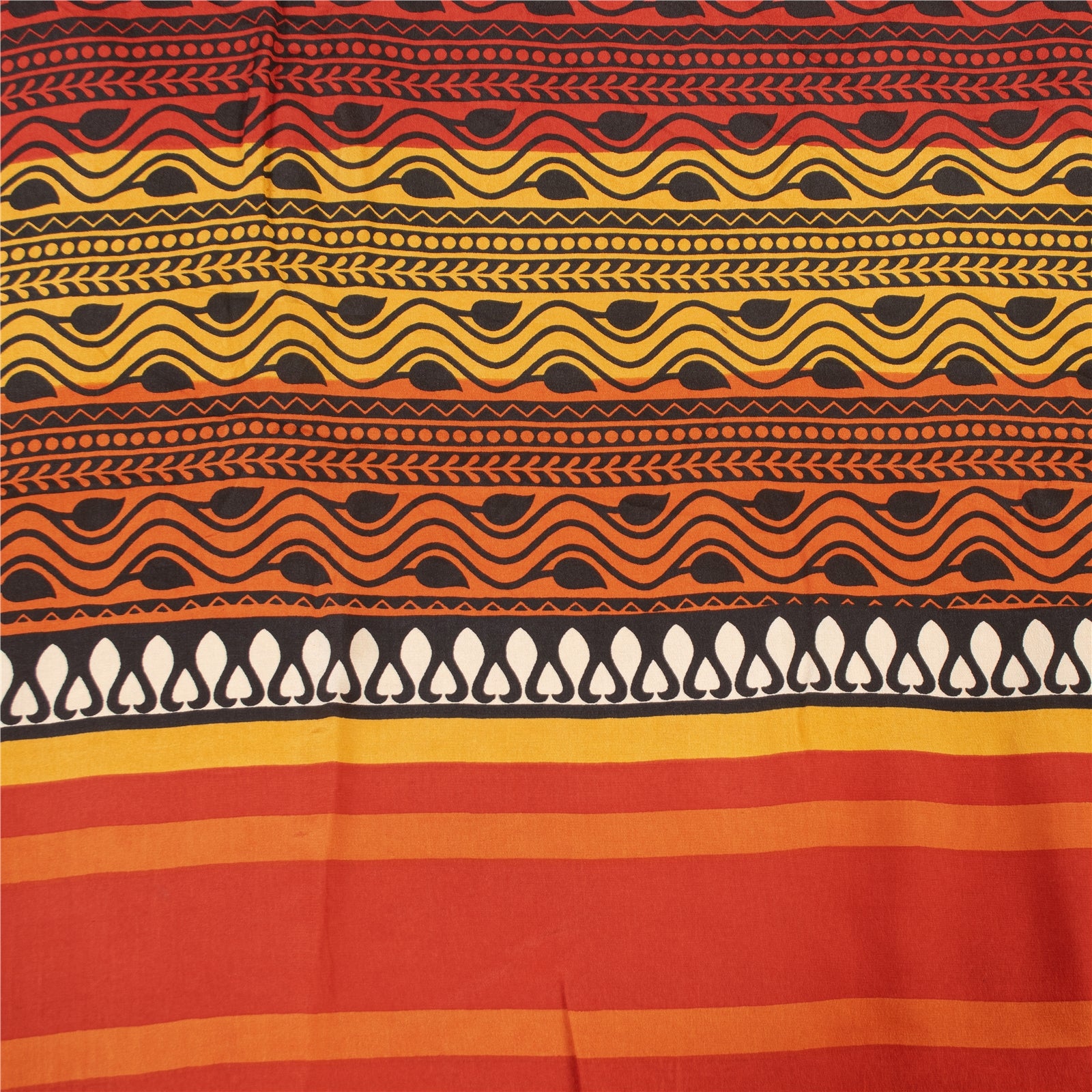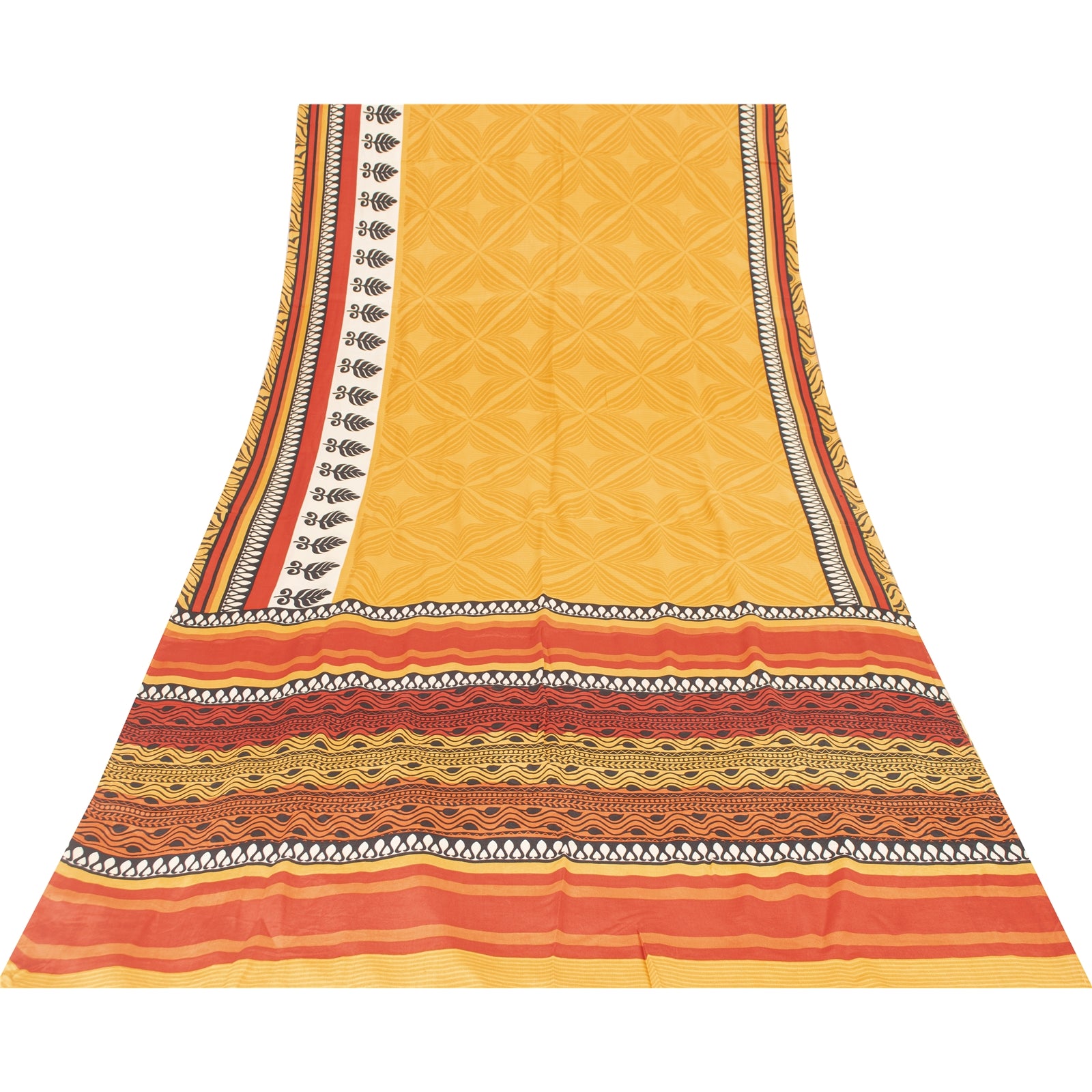 Sanskriti Vintage Sarees Yellow Pure Crepe Silk Printed Sari 5+yd Craft Fabric