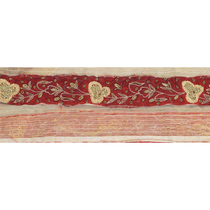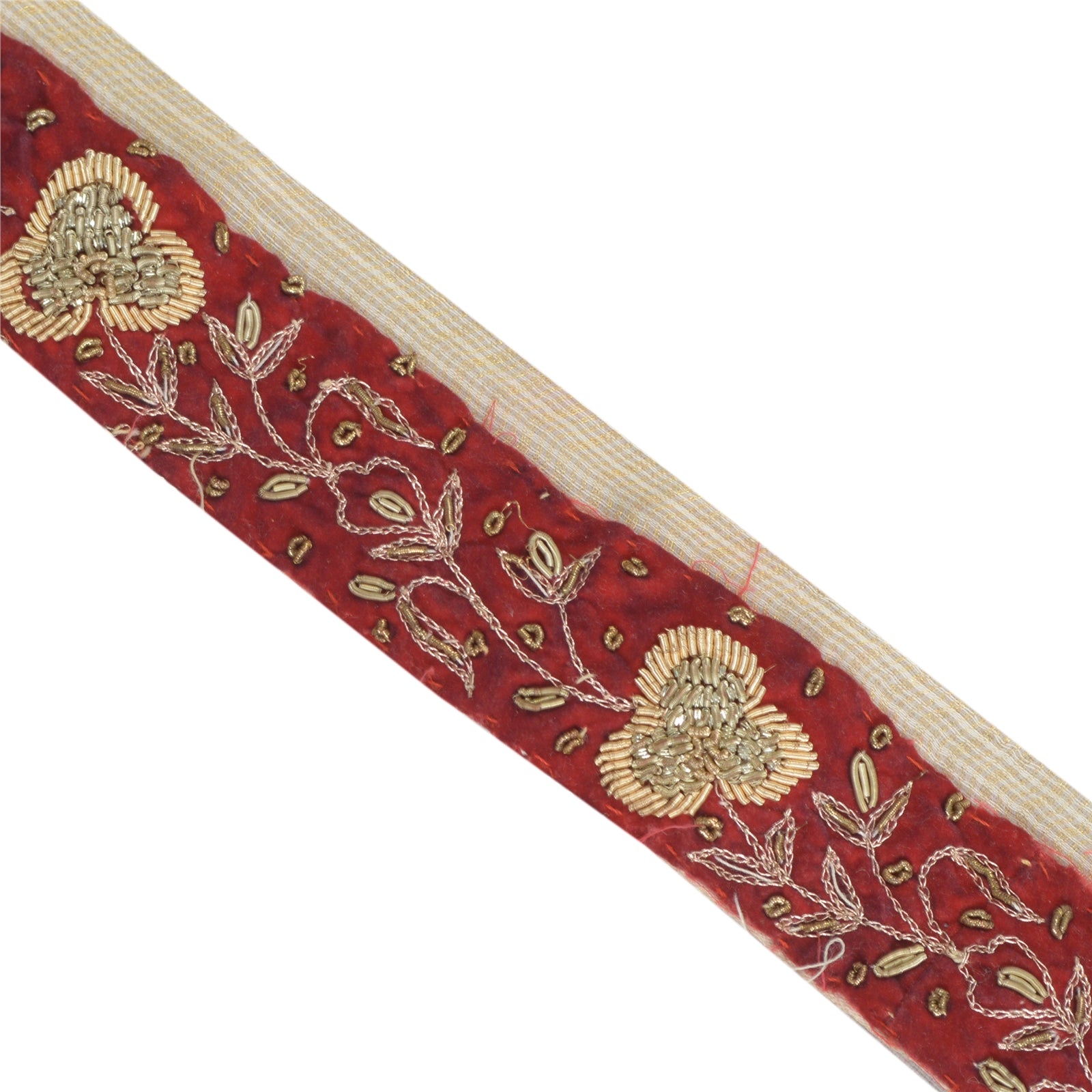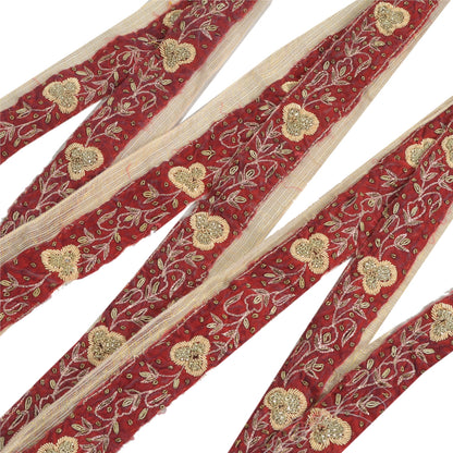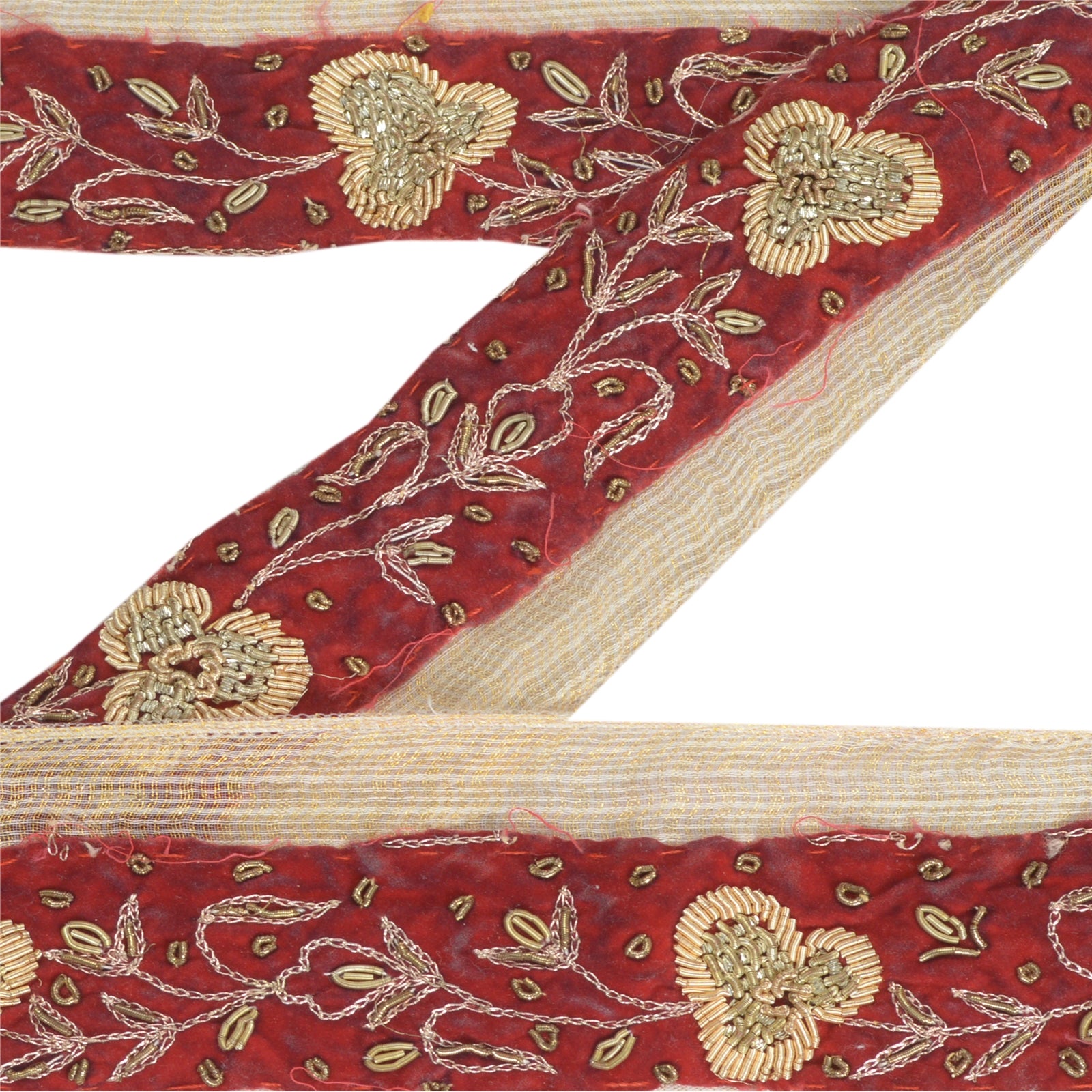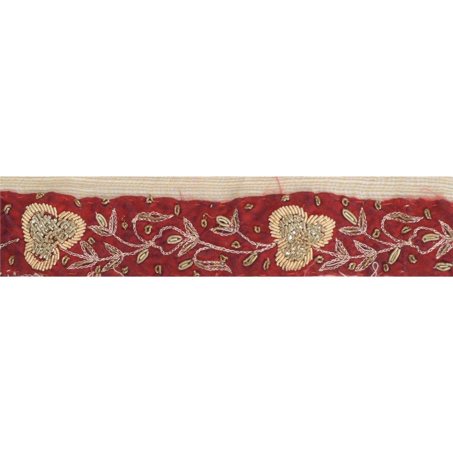 Sanskriti Vintage Sari Border Hand Beaded 1 Yd Indian Trim Sewing Dark Red Lace