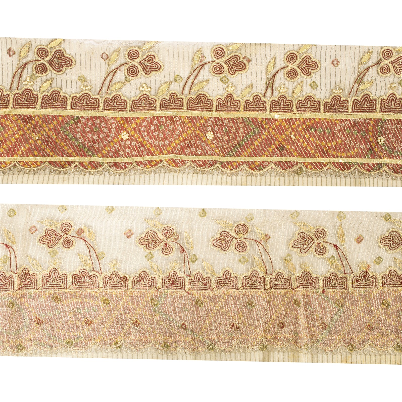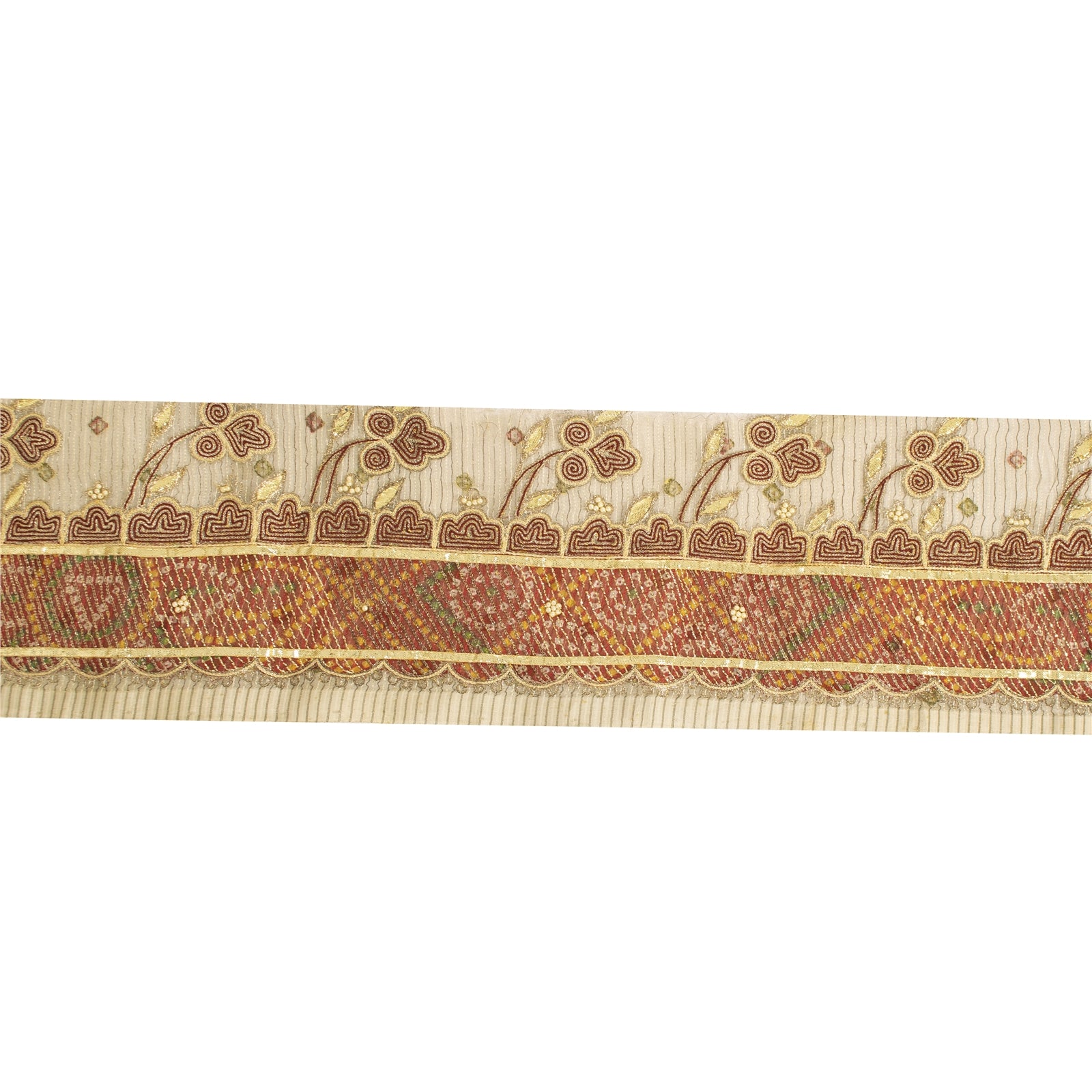 Sanskriti Vintage Sari Border Hand Beaded 1 YD Trim Cream Zari Gotta Patti Lace