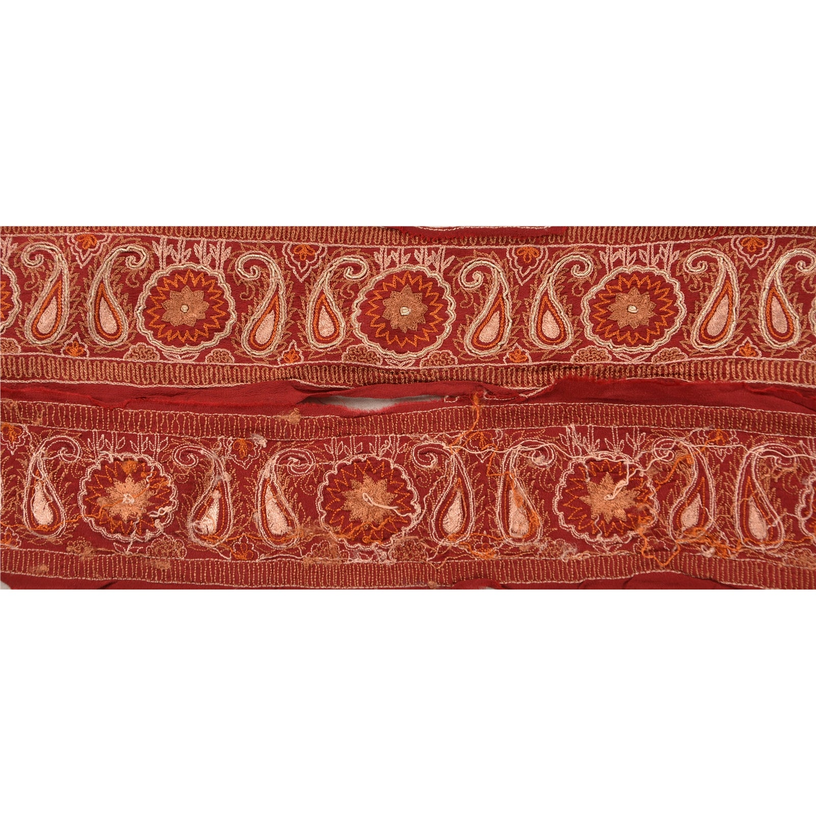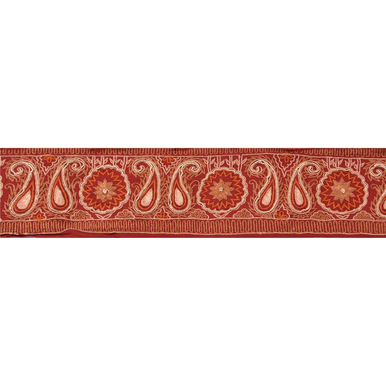 Sanskriti Vintage Sari Border Hand Embroided 1Yd Trim Sewing Dark Red Craft Lace