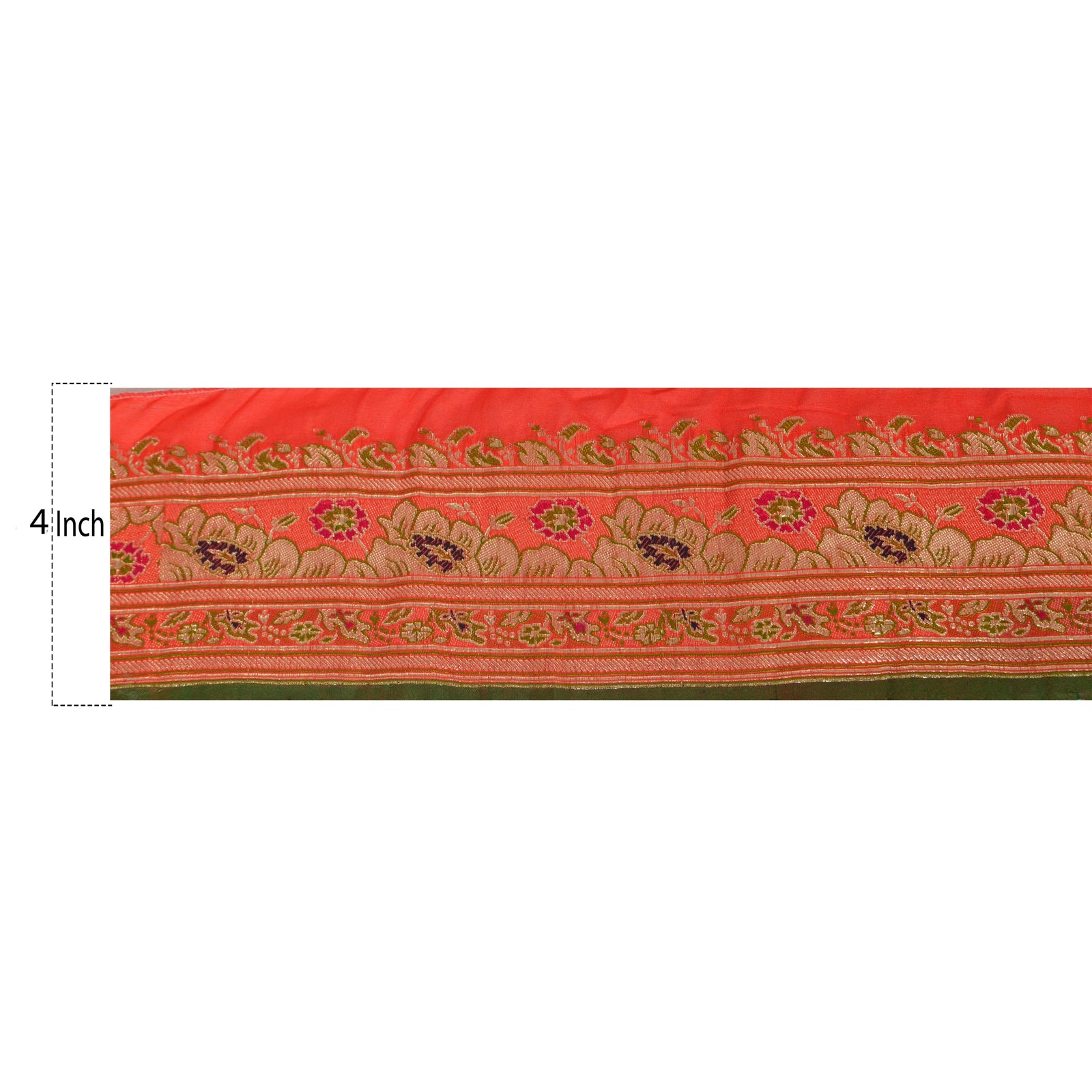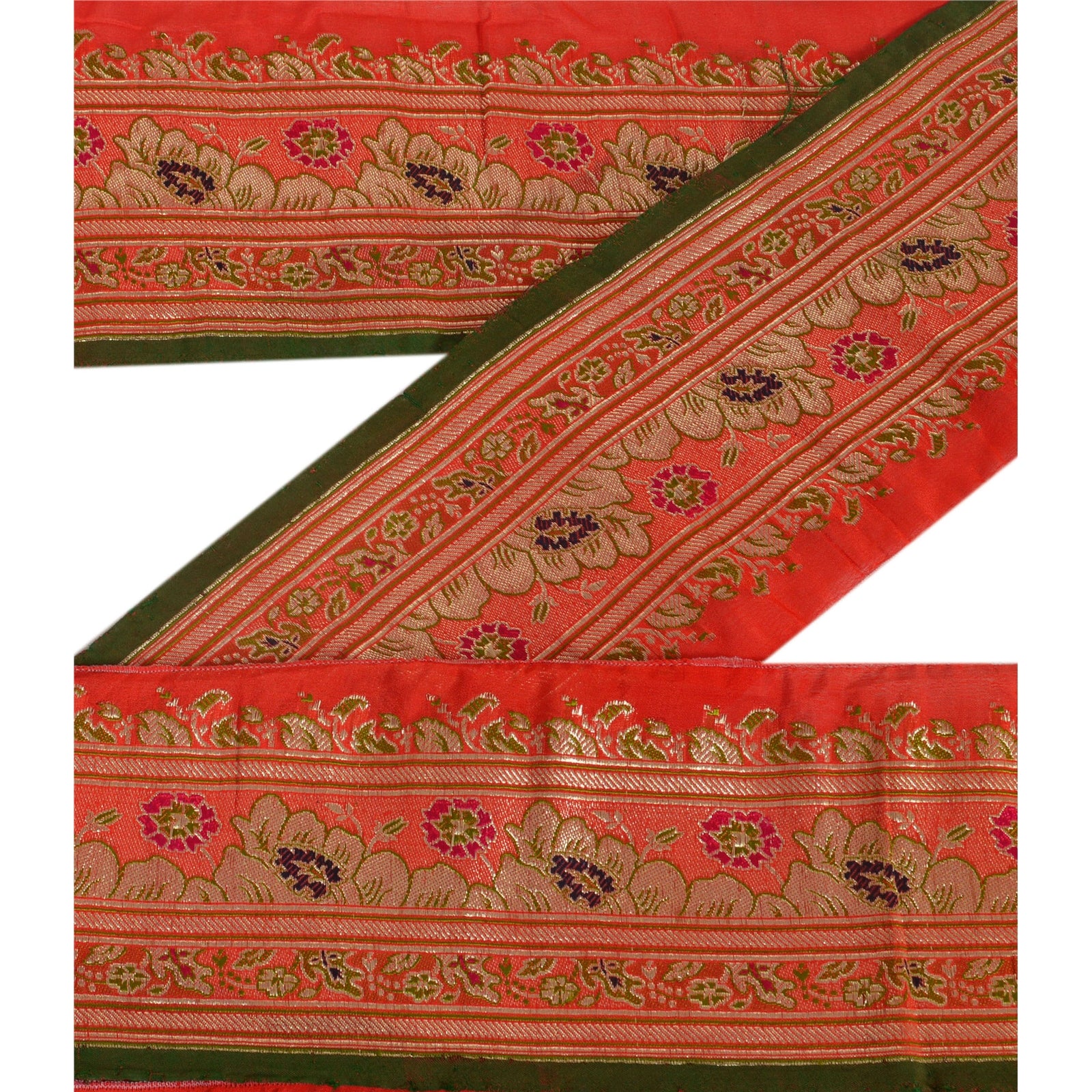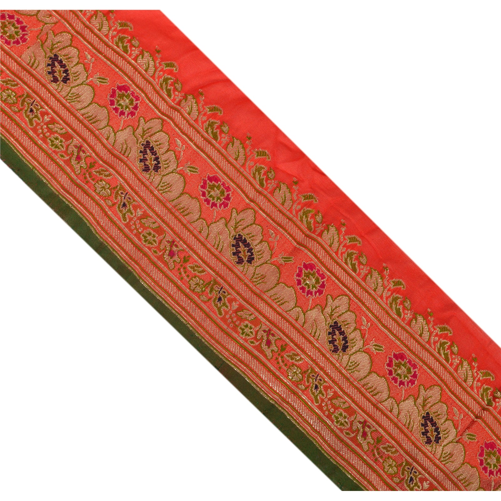 Sanskriti Vintage Sari Border Woven Brocade 1 YD Trim Sewing Red Zari Lace