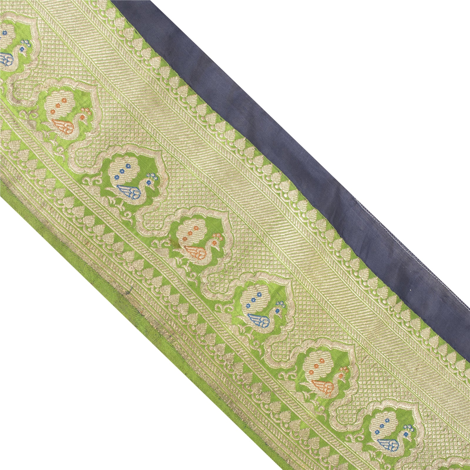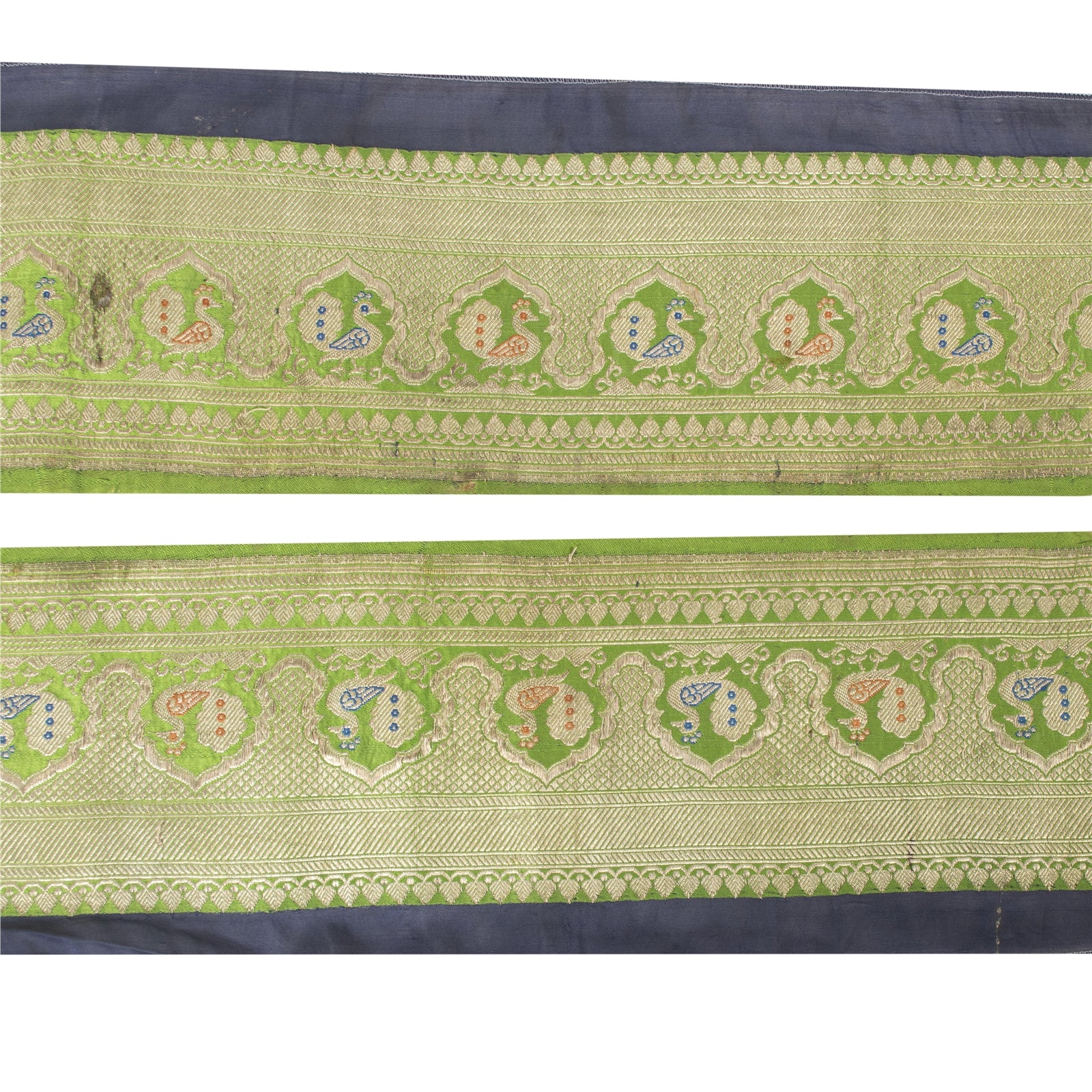 THE ITEM COLOR OR SHADE MAY BE DARKER OR LIGHTER THAN THE PICTURE.' Amazing satin silk woven brocade sari border in blue color highlighting zari work. Border has beautiful floral & peacock patterns painstakingly gold zari work (electroplated copper metallic thread) work, orange/blue thread work. WOW!! an awesome one of a kind versatile border. 1 Quantity = 1 Yard International buyers please note: Import duties, taxes, and charges are not included in the item price or postage cost. These charges are the buyer's responsibility. Please check with your country's customs office to determine what these additional costs will be prior to bidding or buying. Buyer will pay custom duty/tax. It is calculated and charged differently by every country. As a seller I do not have any control over it.VAT or sales tax is calculated by the platform at the time of checkout. Customs charge is payable at the time of delivery. B-12556