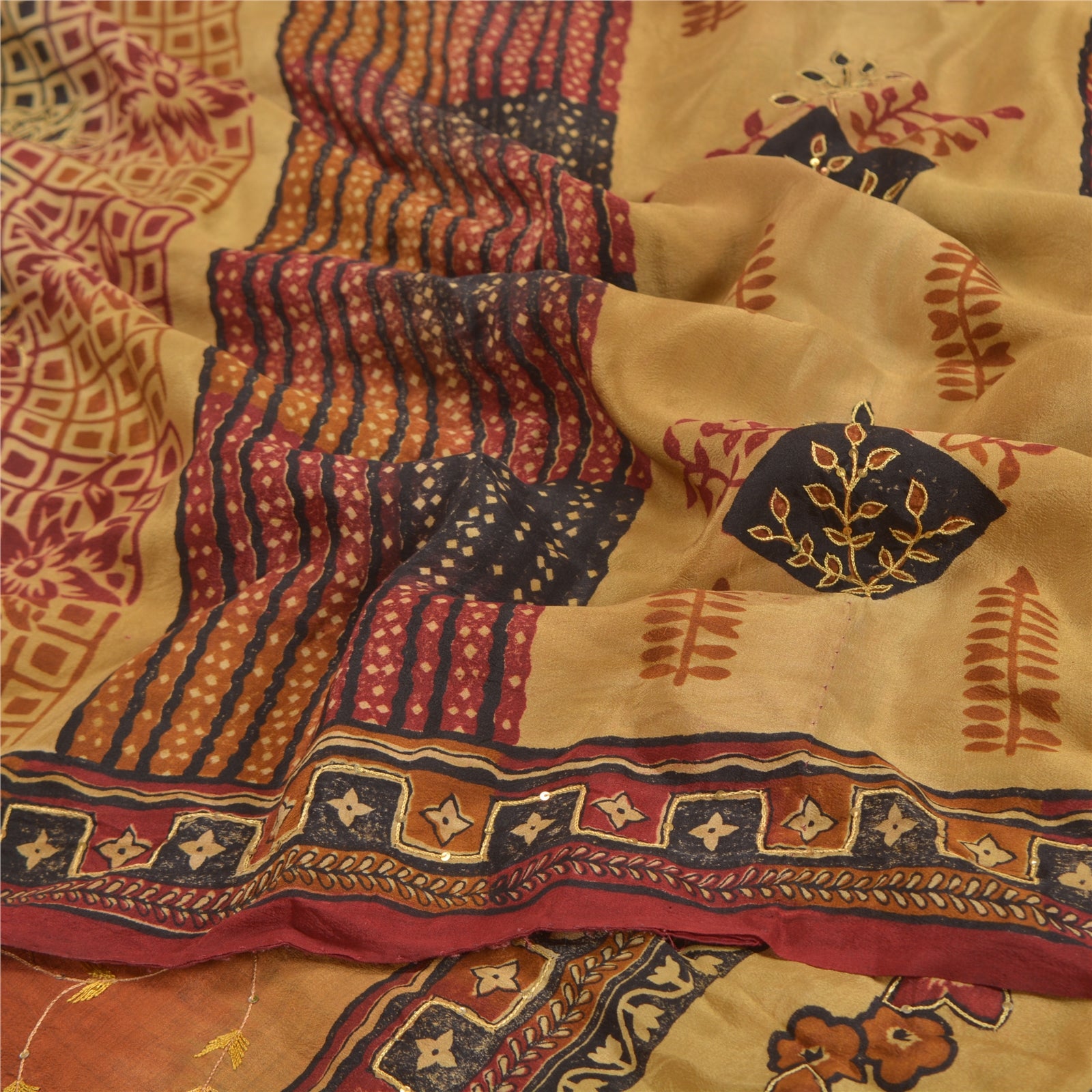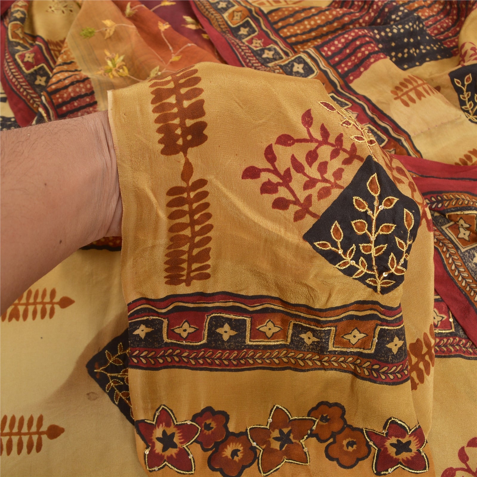 Sanskriti Vintage Suzani Hand Made Sarees Pure Crepe Silk Printed Sari Sustainable Fabric