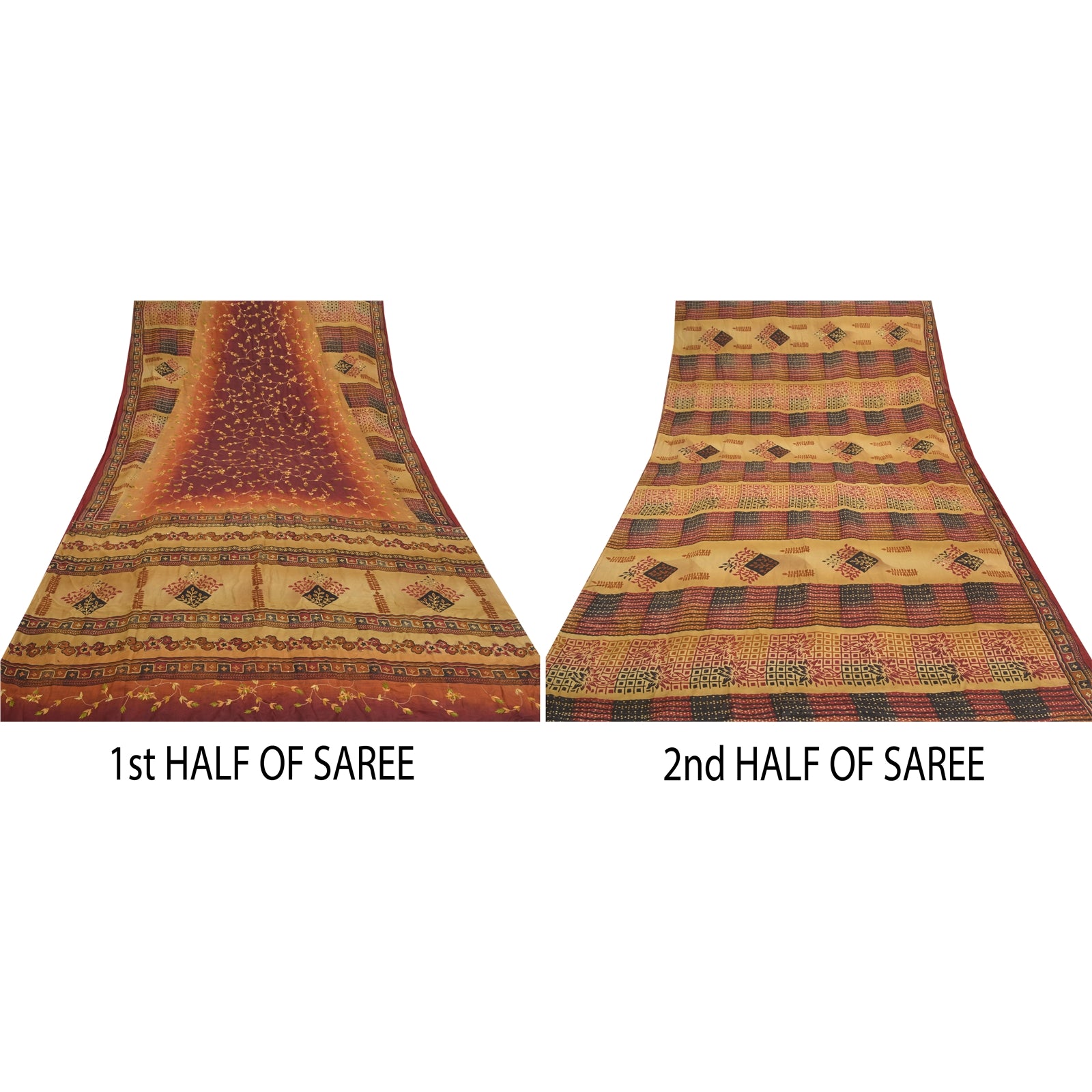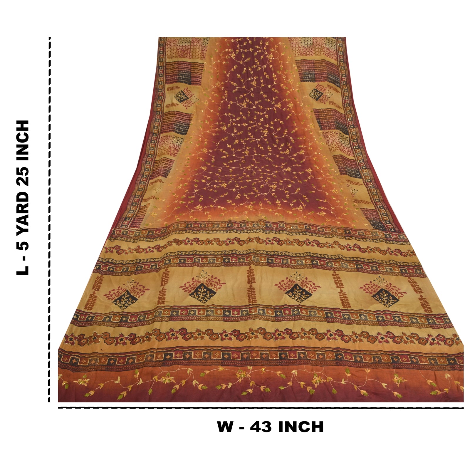 • Traditional dark red & brown colored 100% pure crepe silk printed & hand embroidered suzani sari.