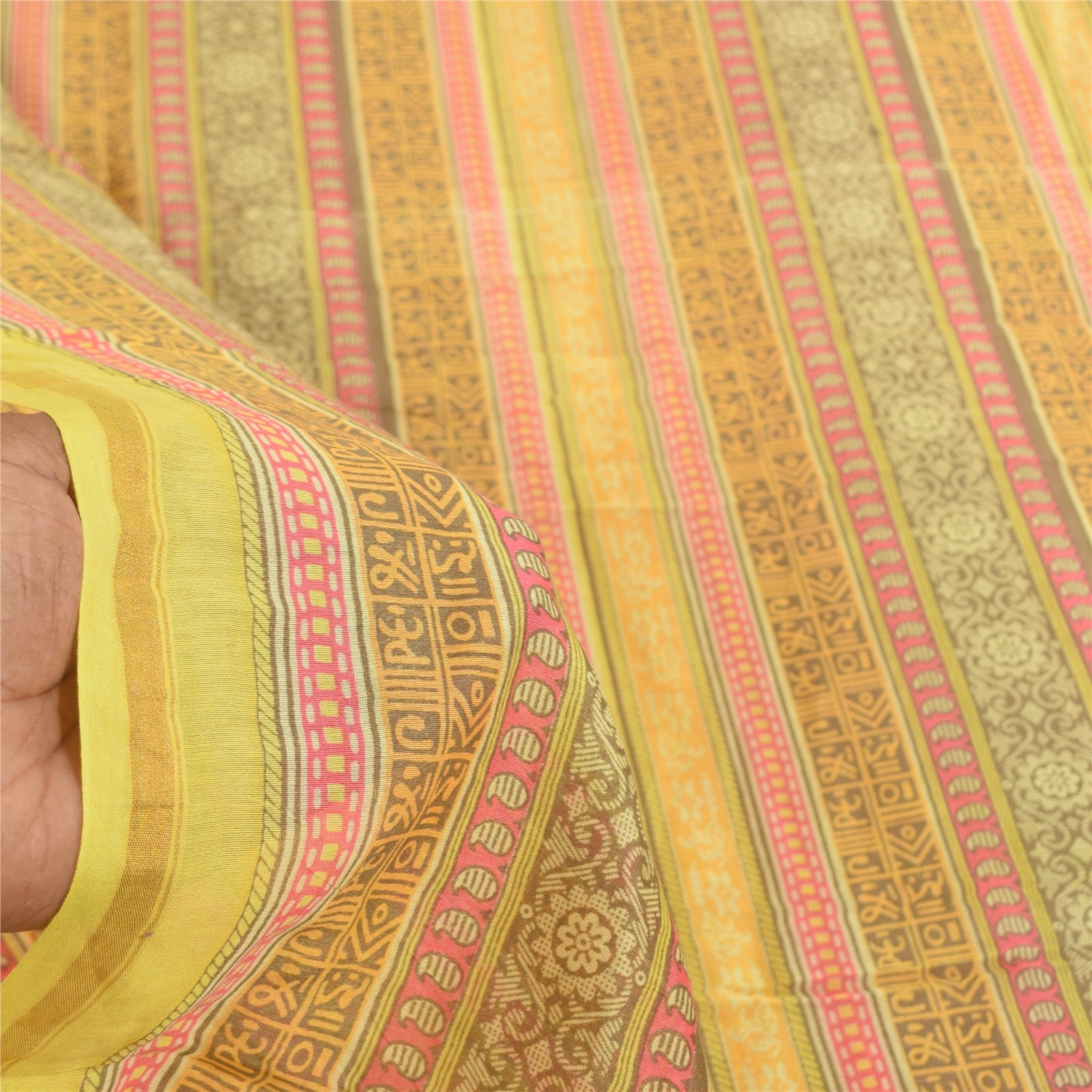 Sanskriti Vintage Yellow Dupatta Long Stole Pure Cotton Printed Premium Scarves