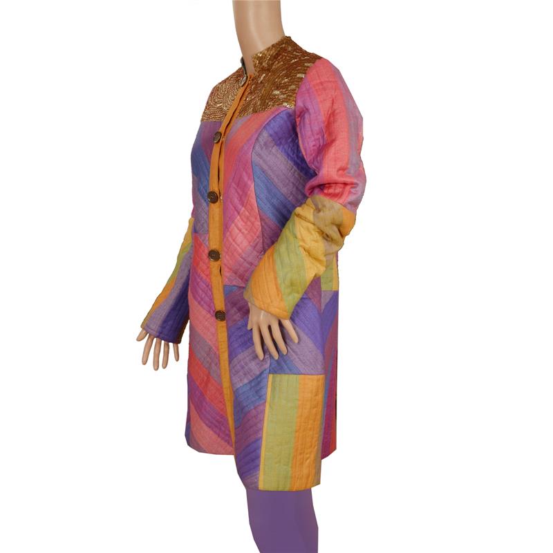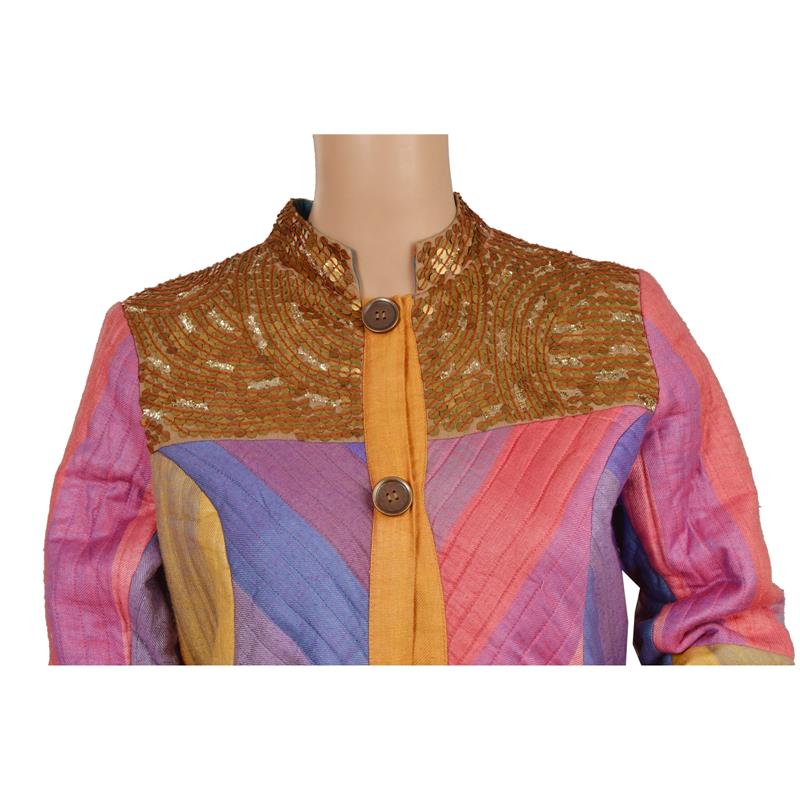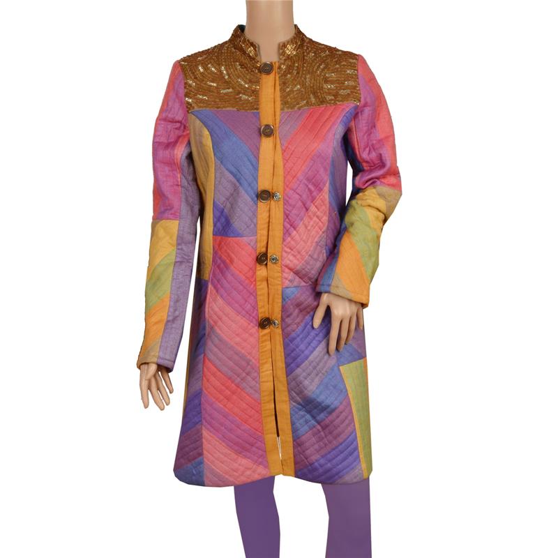 Awesome multi color Color Woolen hand embroidered Designer Long Top/Kurta. Floral Design embellished With awesome golden sequins and mukesh Work with Quilted Work Which Is Making The Top Look Special .