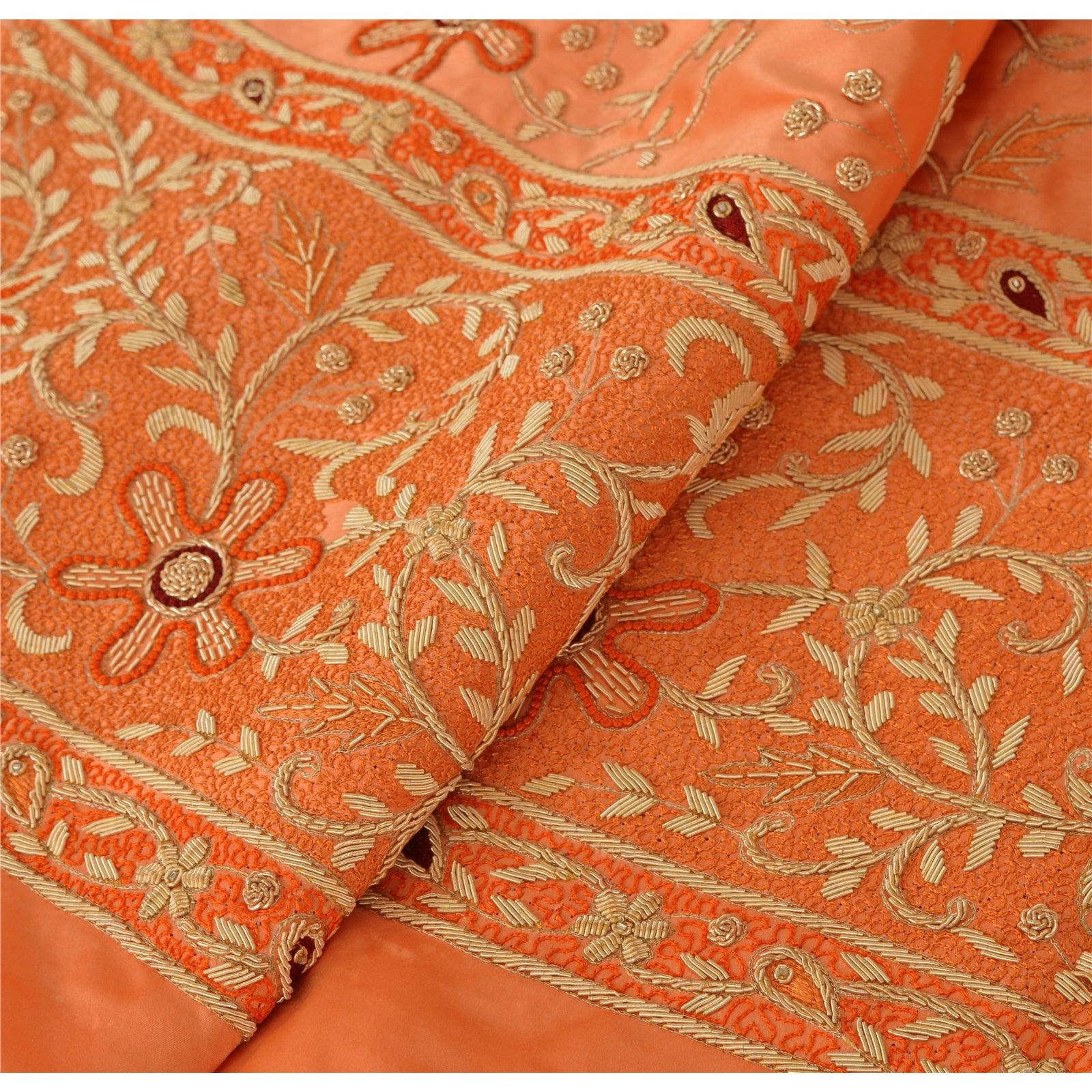 Sanskriti Vintage Unstitched Long Skirt Lehenga Heavy Wedding Peach Zardozi