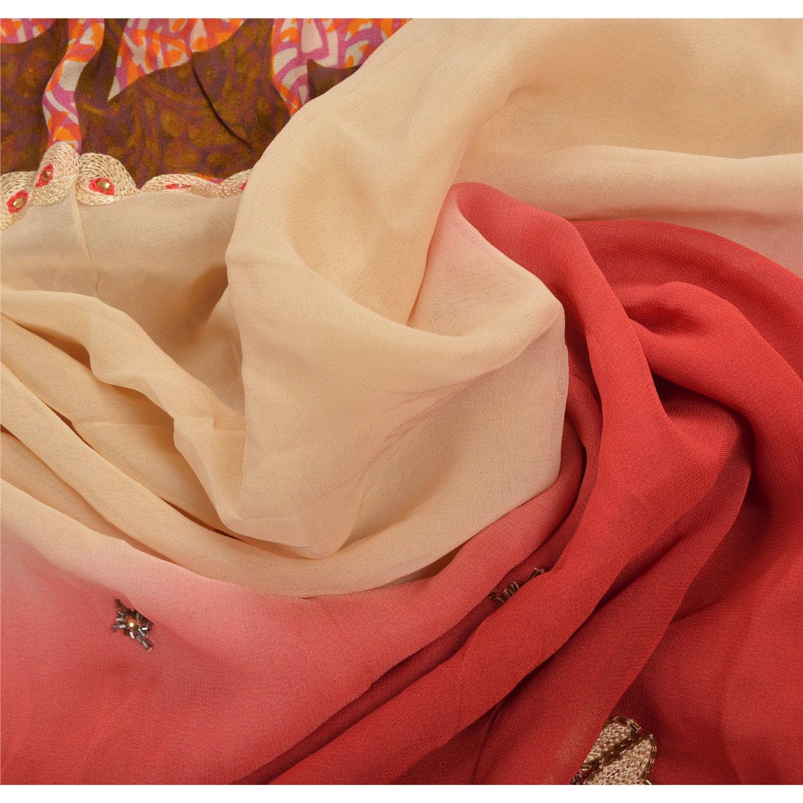 Sanskriti Vintage Indian Saree Blend Georgette Hand Beaded Sustainable Fabric Cultural Premium Sari