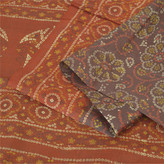 Sanskriti Vintage Sarees Brown Bandhani Printed Pure Silk Sari Soft Craft Sustainable Fabric
