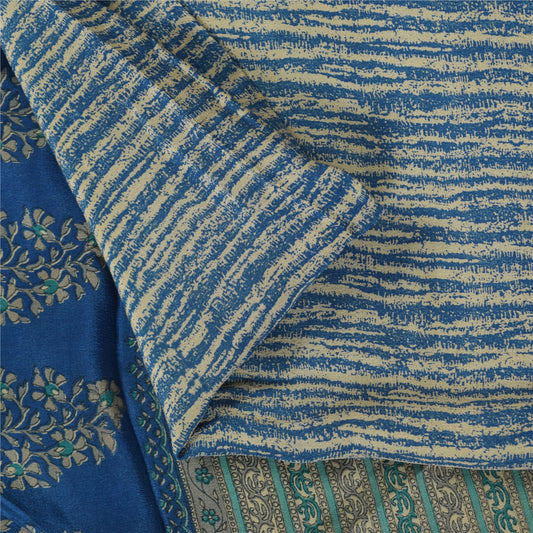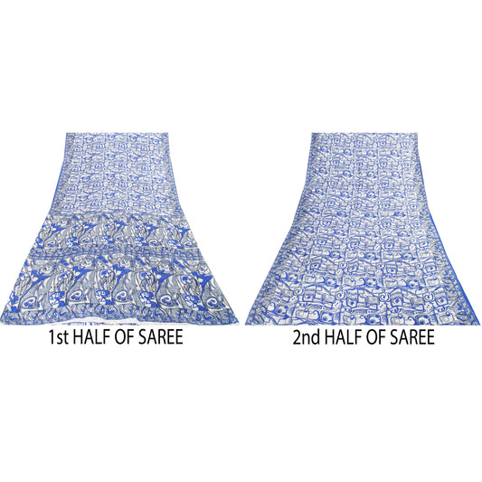 Sanskriti Vintage Sarees Blue Blend Georgette Printed Sari Soft 5YD Craft Sustainable Fabric