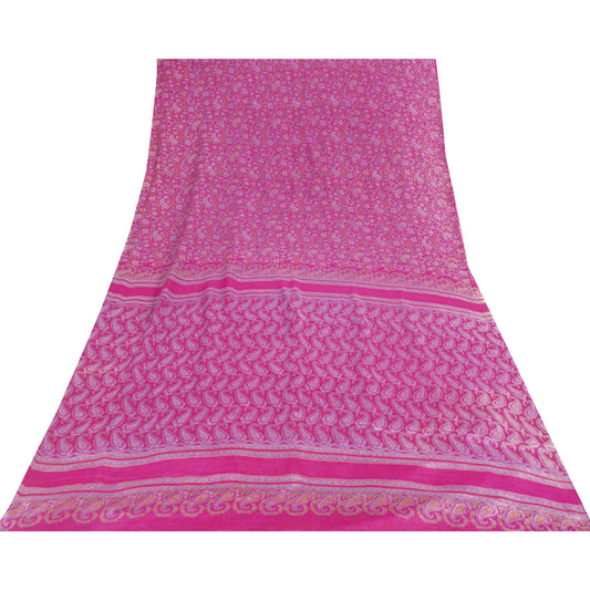 Sanskriti Vintage Sarees Hot Pink Pure Georgette Printed Sari 6yd Craft Sustainable Fabric