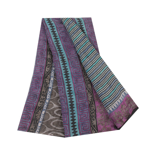 Sanskriti Vintage Sarees Multicolor 100% Pure Silk Printed Sari 5yd Craft Sustainable Fabric