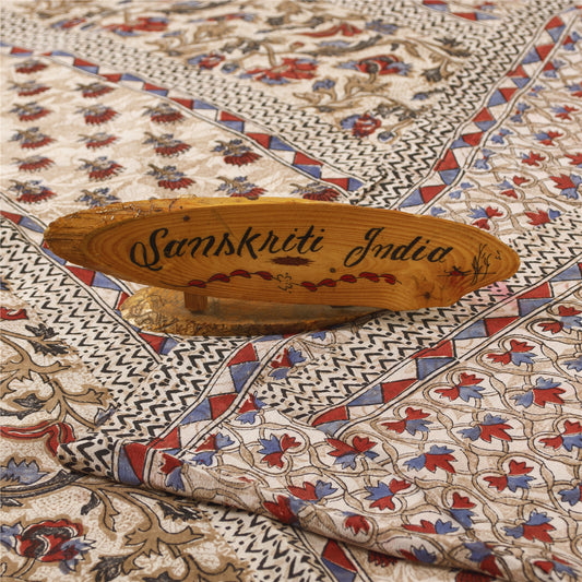 Sanskriti Vintage Sarees Cream 100% Pure Silk Printed Sari Floral Craft Sustainable Fabric