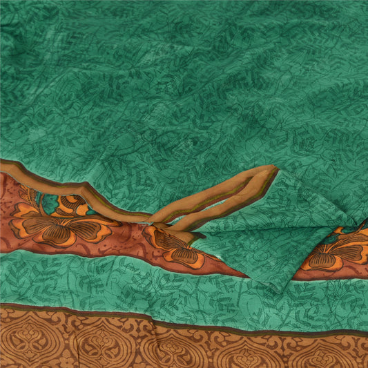 Sanskriti Vintage Sarees Green Pure Crepe Silk Printed Sari 5+yd Craft Sustainable Fabric