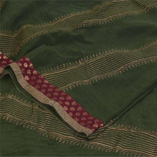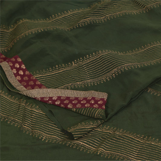 Sanskriti Vintage Sarees Olive Green Pure Crepe Printed Sari 6+yd Craft Sustainable Fabric
