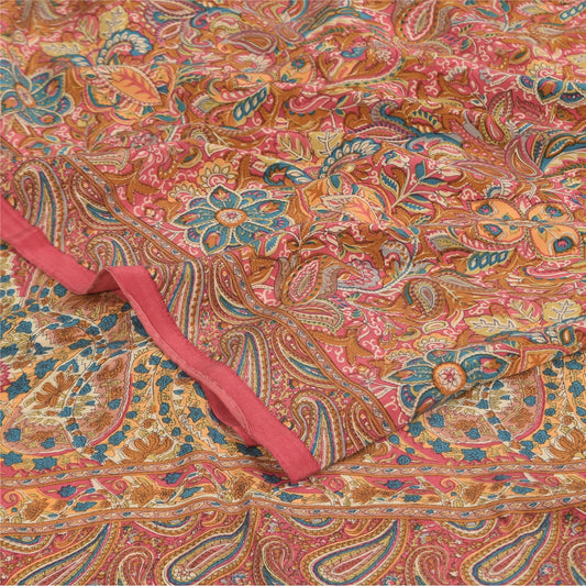 Sanskriti Vintage Sarees Coral Pure Crepe Silk Printed Sari 5+yd Craft Sustainable Fabric