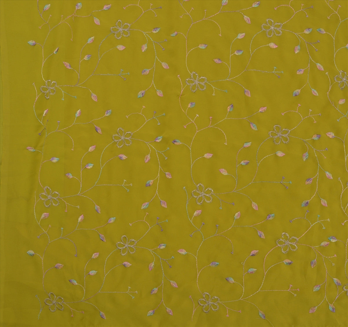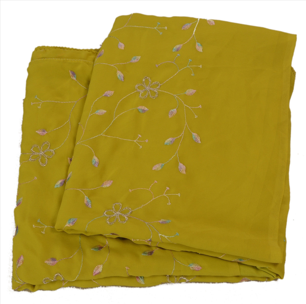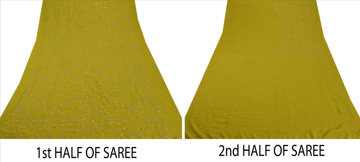 Sanskriti Vintage Antique Indian Saree Georgette Embroidery Green Craft Sustainable Fabric Sari