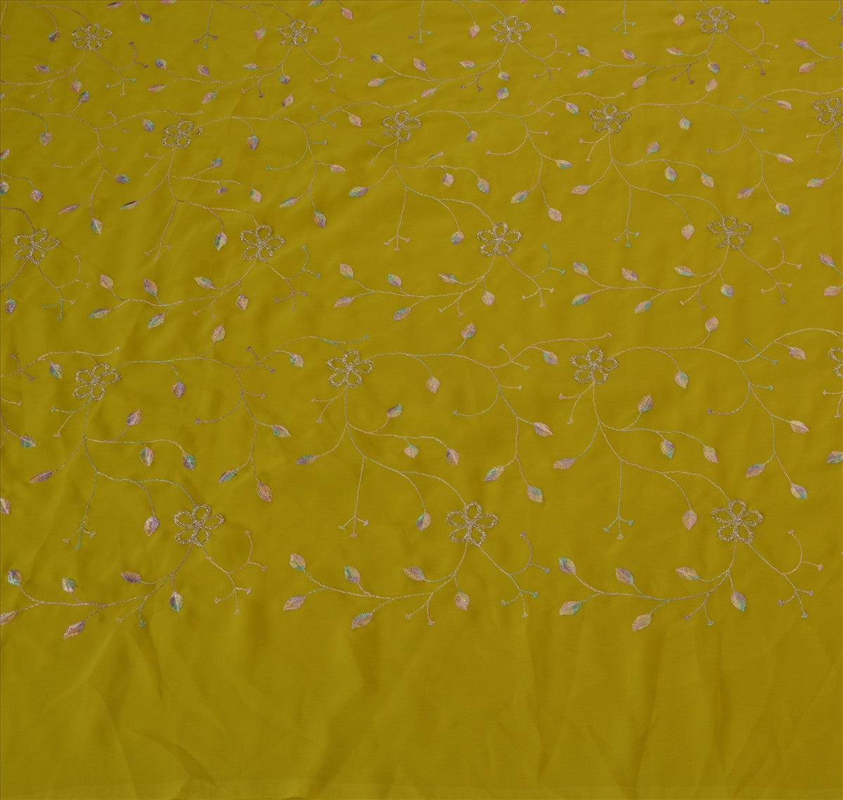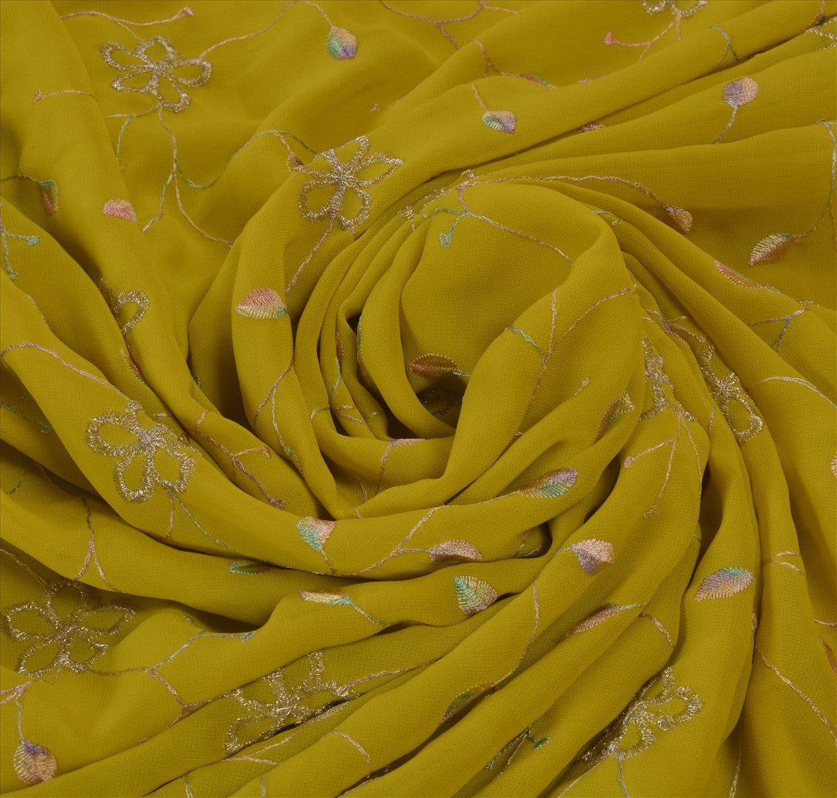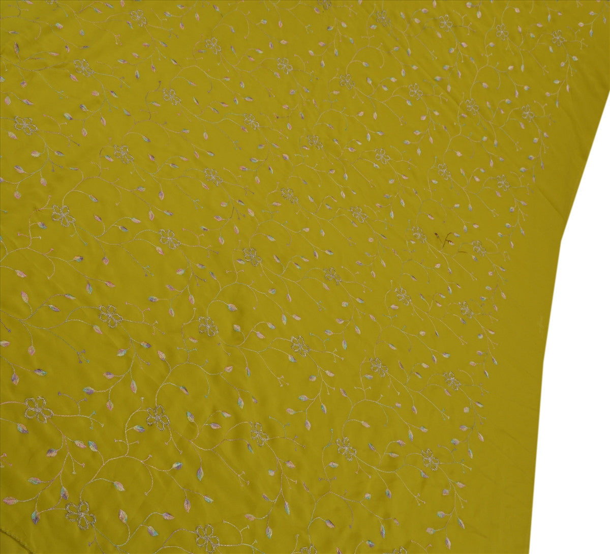 Sanskriti Vintage Antique Indian Saree Georgette Embroidery Green Craft Sustainable Fabric Sari
