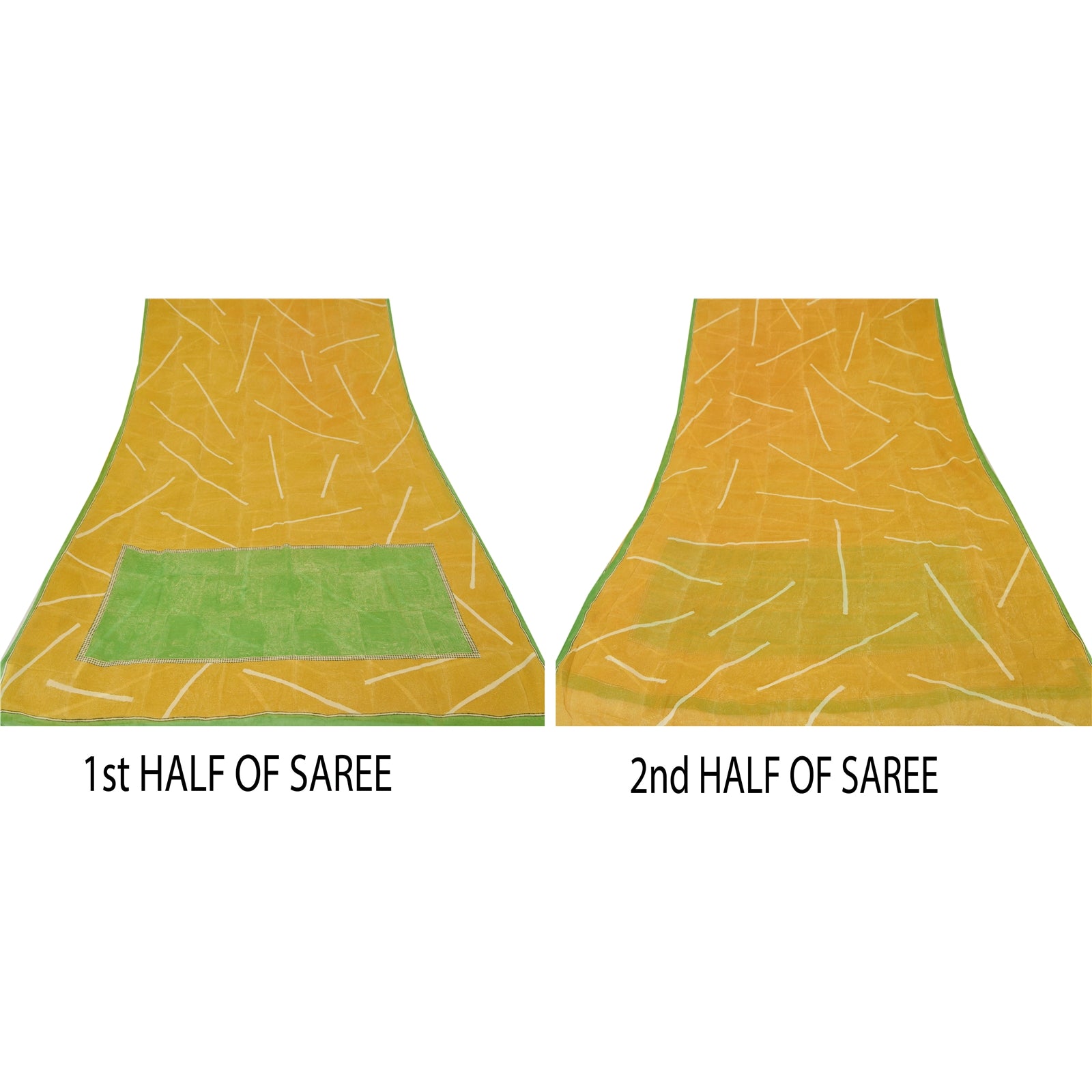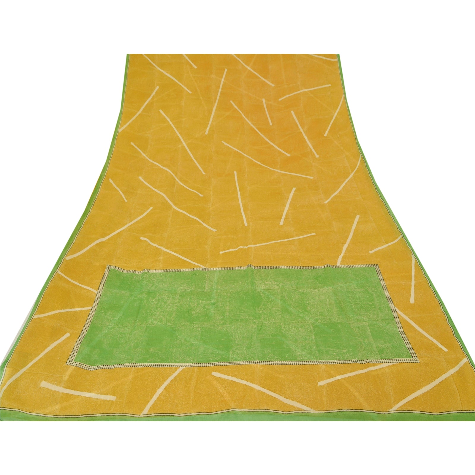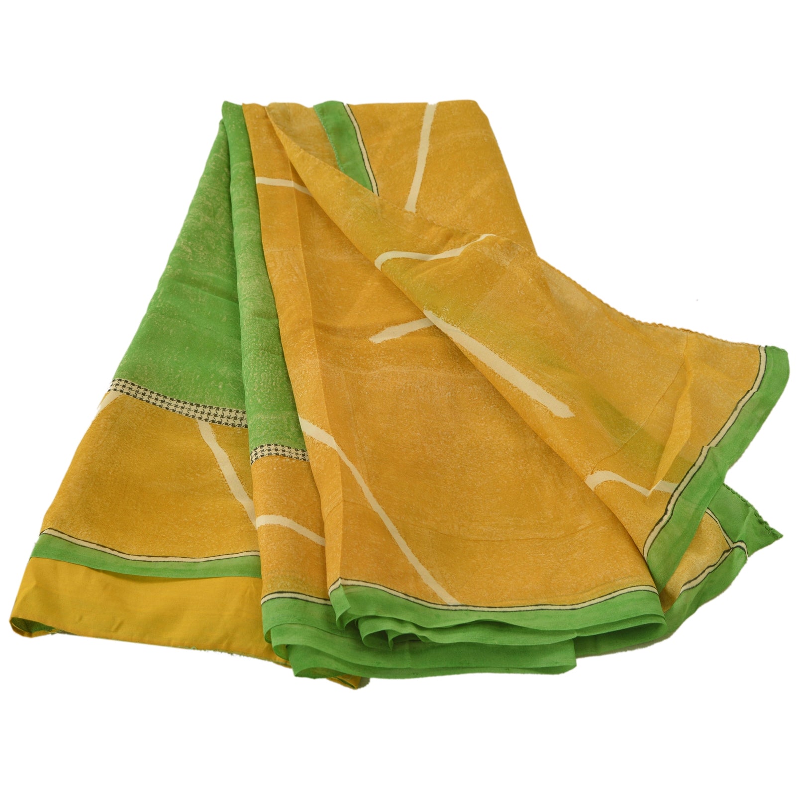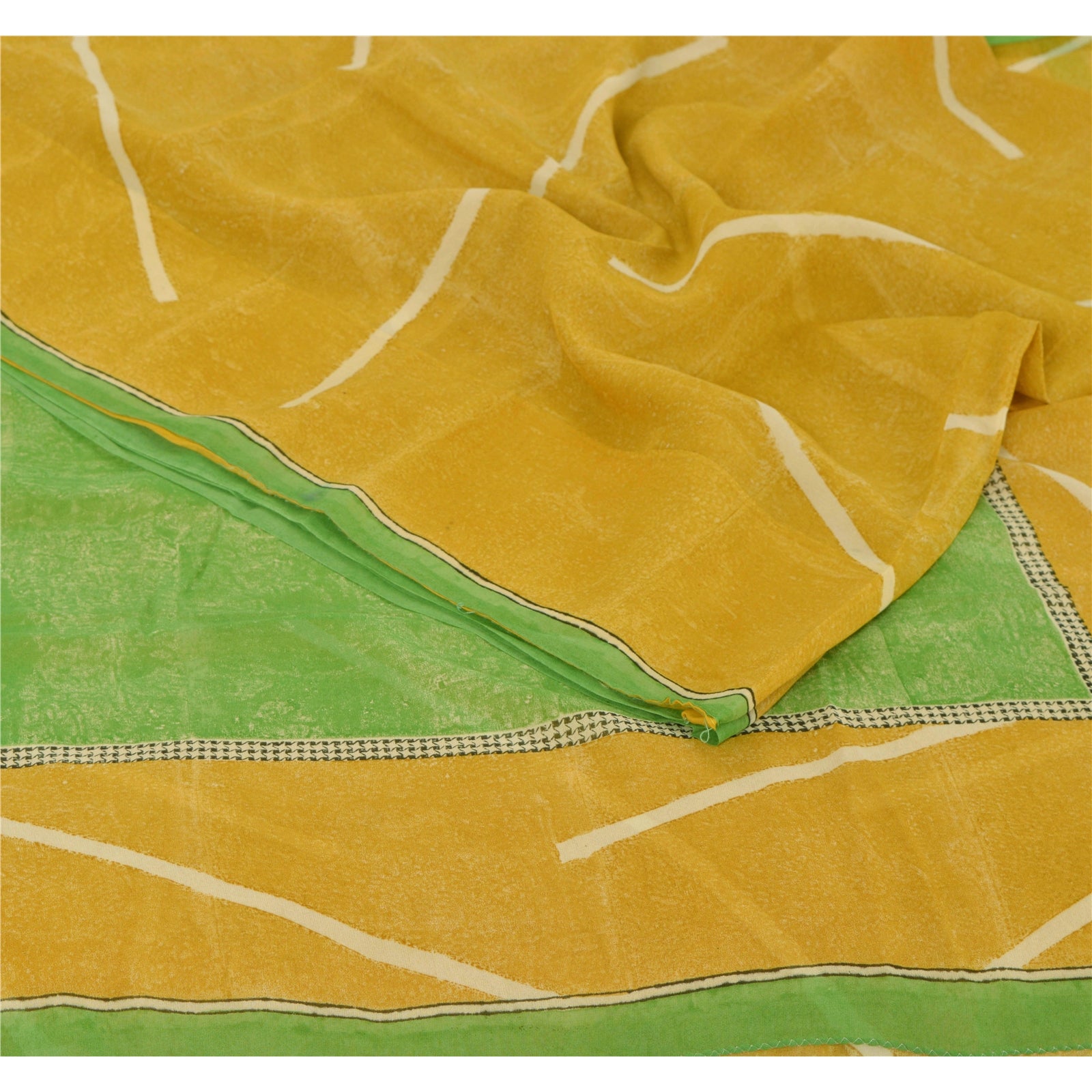 • Beautiful shades of green colored printed pure georgette silk saree . • Pallu & Border has printed abstract design . • Abstract design in center part of sari . This unique vintage saree can be used for various crafting ideas even if you don't want to use it as a sari. Design a dress, use it as a throw, as window dressing, beachwear, sarongs, table linen and much more. Let your creative juices flow and use this decorated Sustainable Fabric in multiple fashion.
